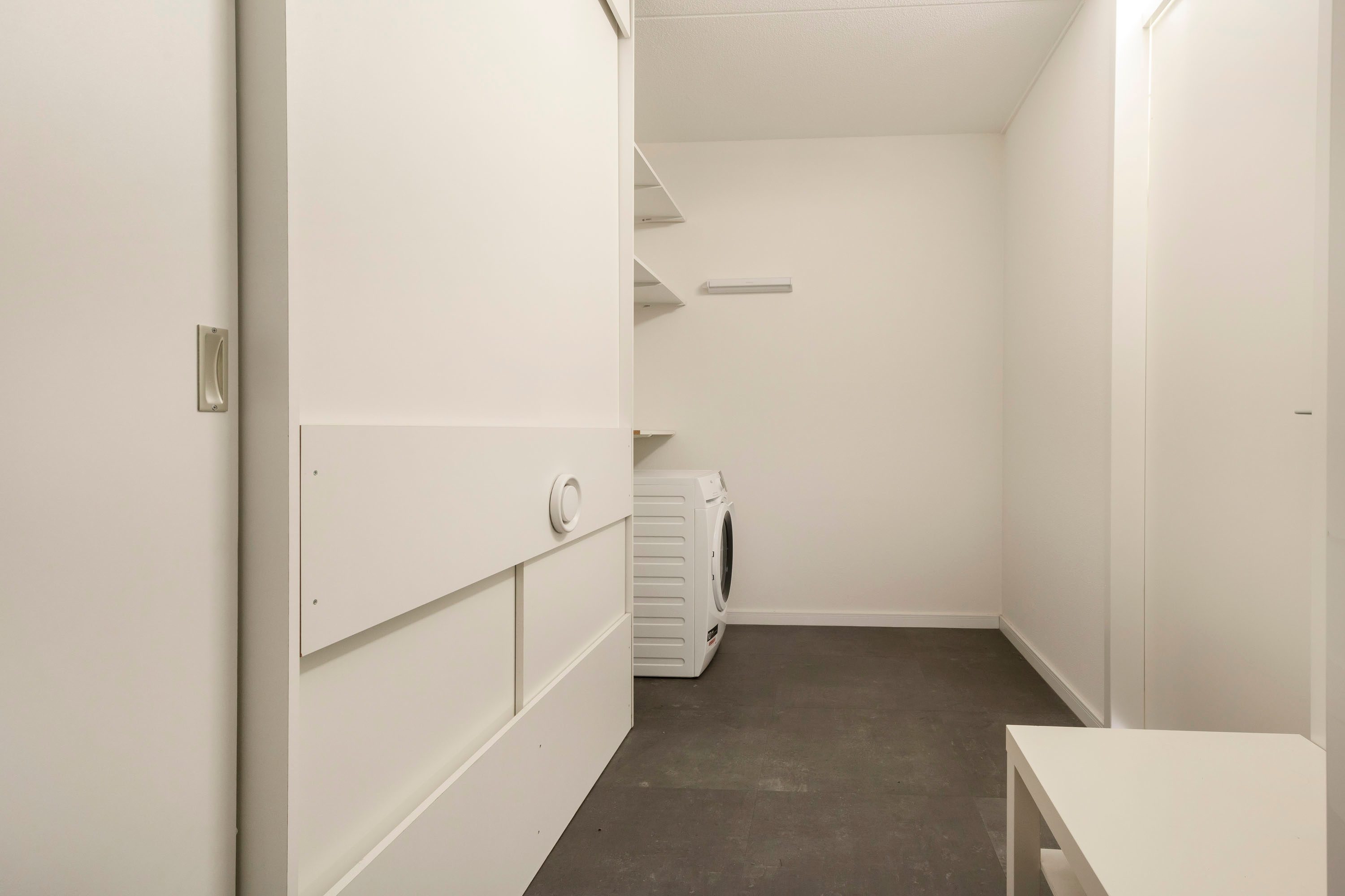 Grenzend aan deze fijne ruimte is het ruime dakterras over de volle breedte van de woning te bereiken. Bereikbaar middels een praktische schuifpui.