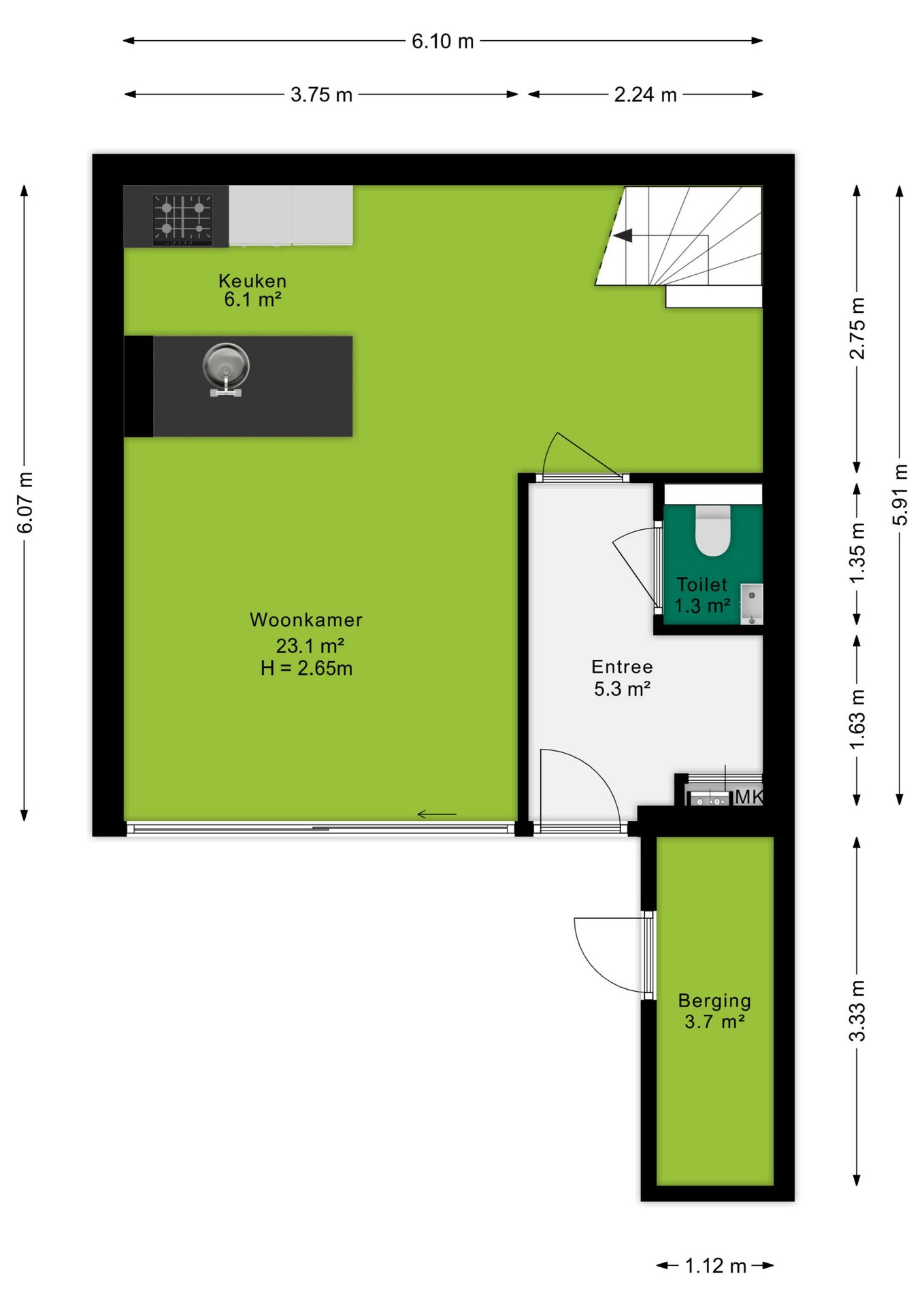 Deze informatie is door ons met de nodige zorgvuldigheid samengesteld. Onzerzijds wordt echter geen enkele aansprakelijkheid aanvaard voor enige onvolledigheid, onjuistheid of anderszins, dan wel de gevolgen daarvan. Alle opgegeven maten en oppervlakten zijn indicatief.