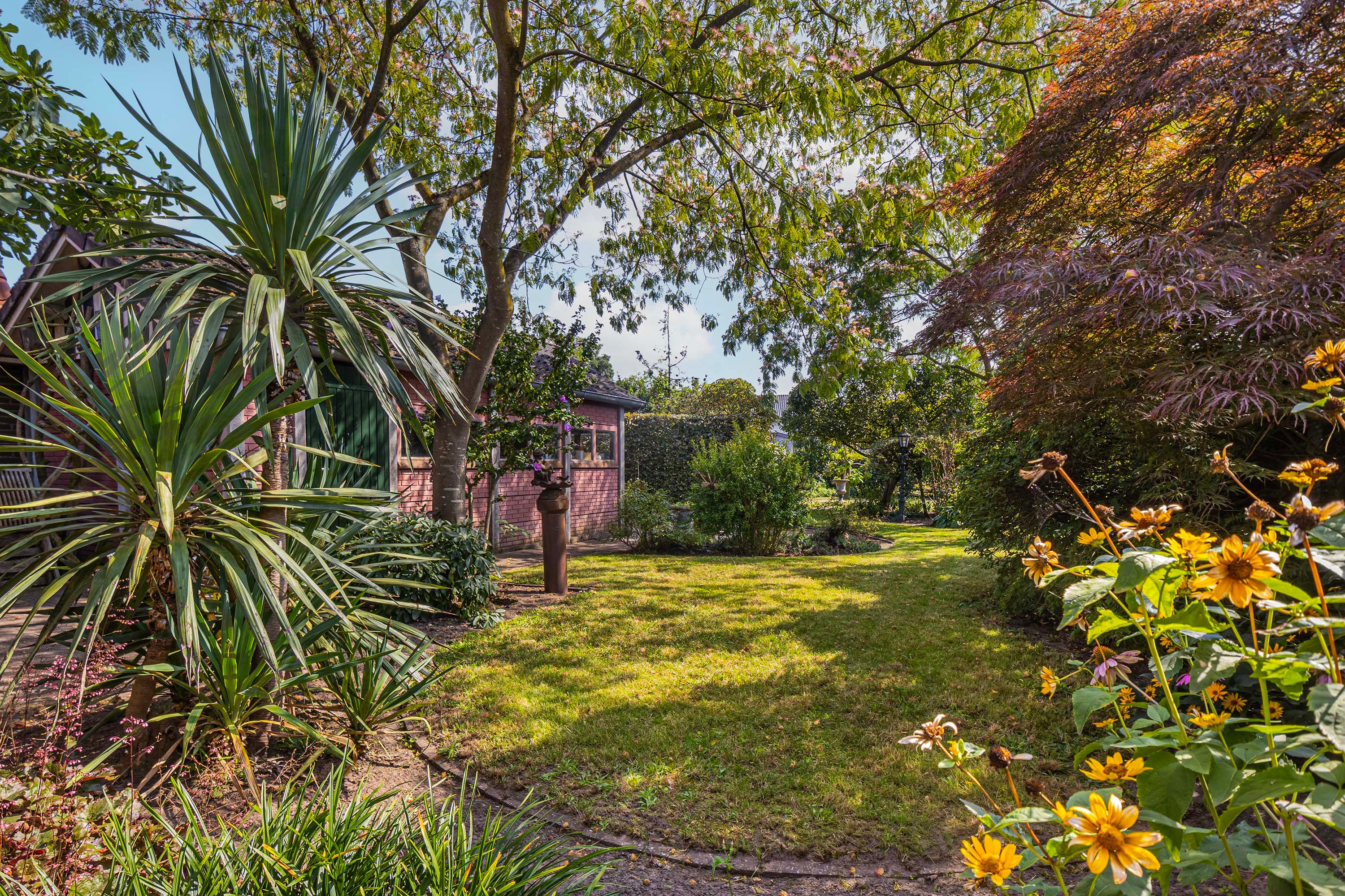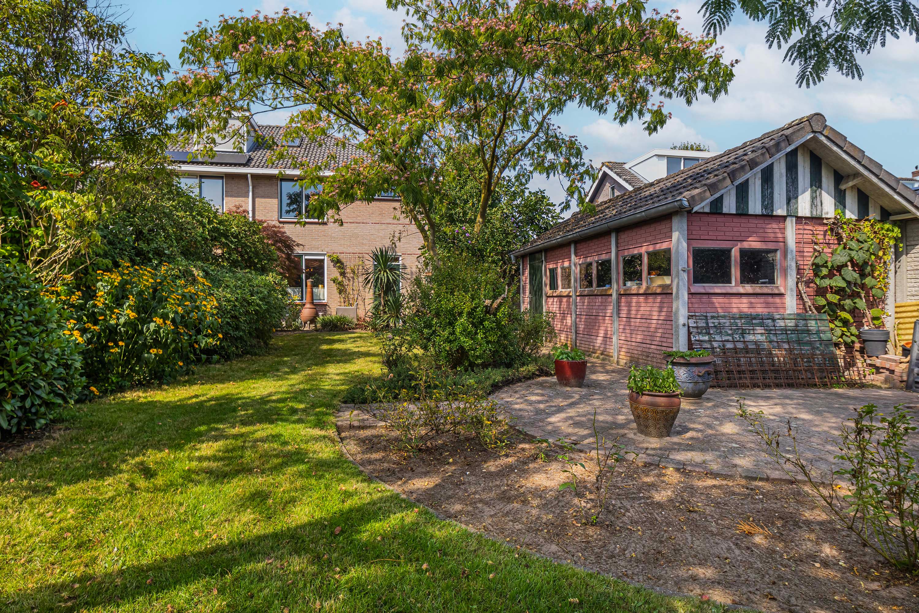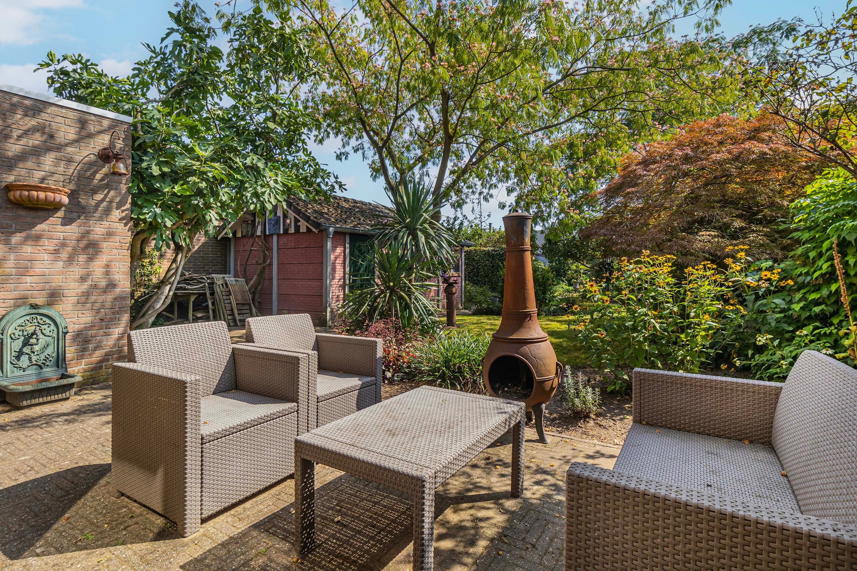 De achtertuin, met een indrukwekkende diepte van meer dan 32 meter, ligt op het zuiden en is bereikbaar via de keuken, de garage en een achterom. Deze ruime tuin biedt tal van mogelijkheden om gezellige zithoeken te realiseren en tegelijkertijd een fijne speelplek te creëren voor kinderen. Verder is er een praktische berging aanwezig, perfect voor extra opslag.