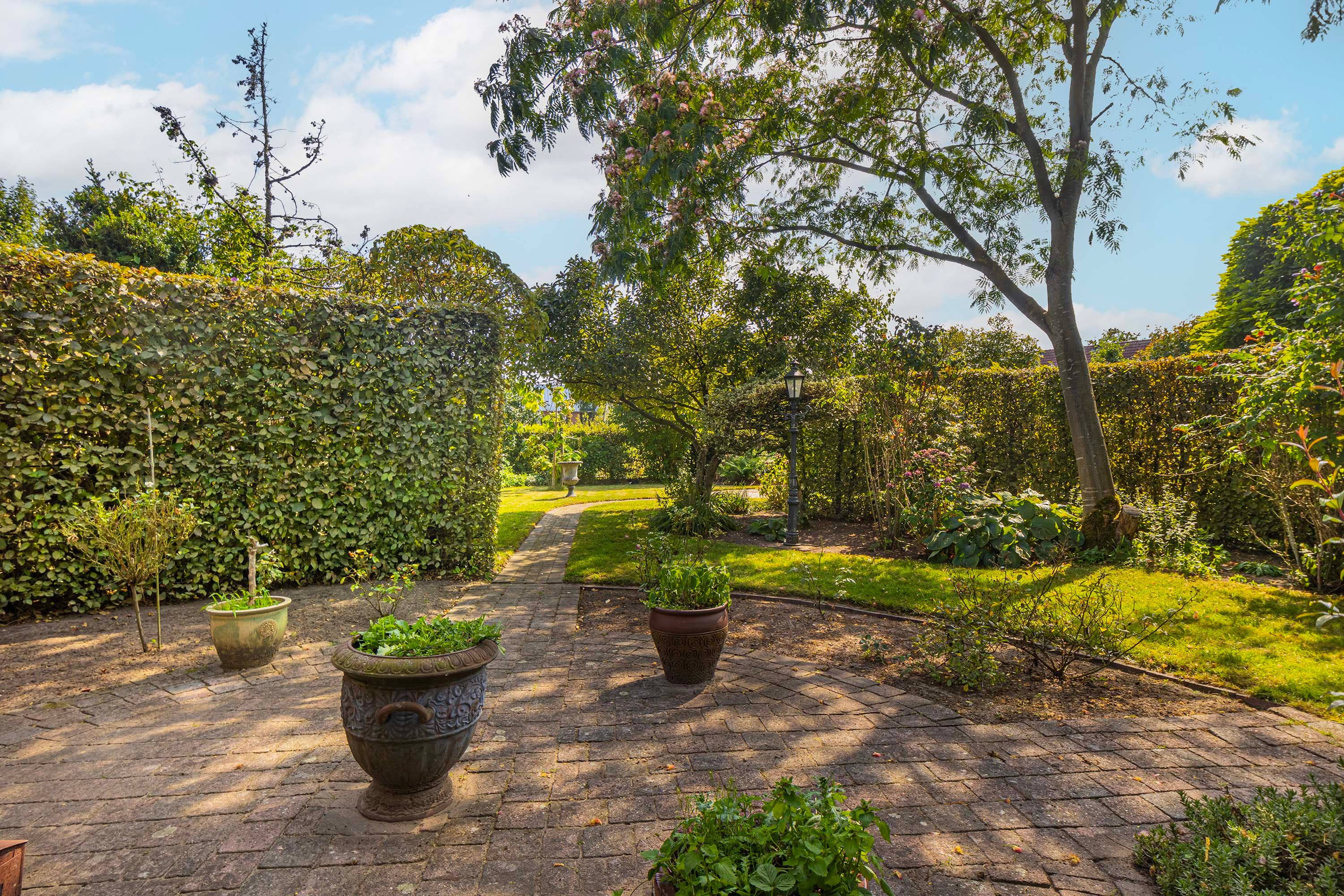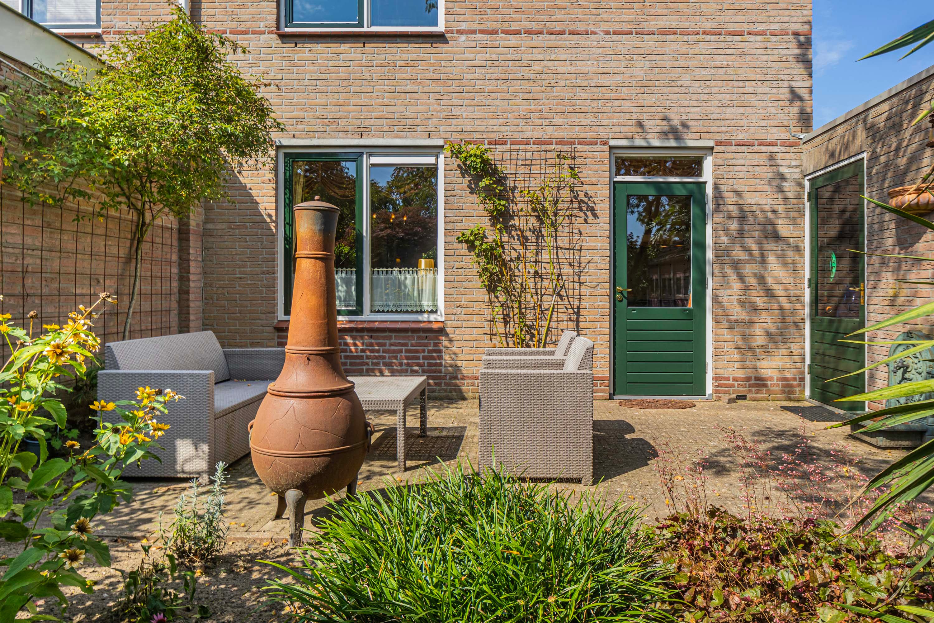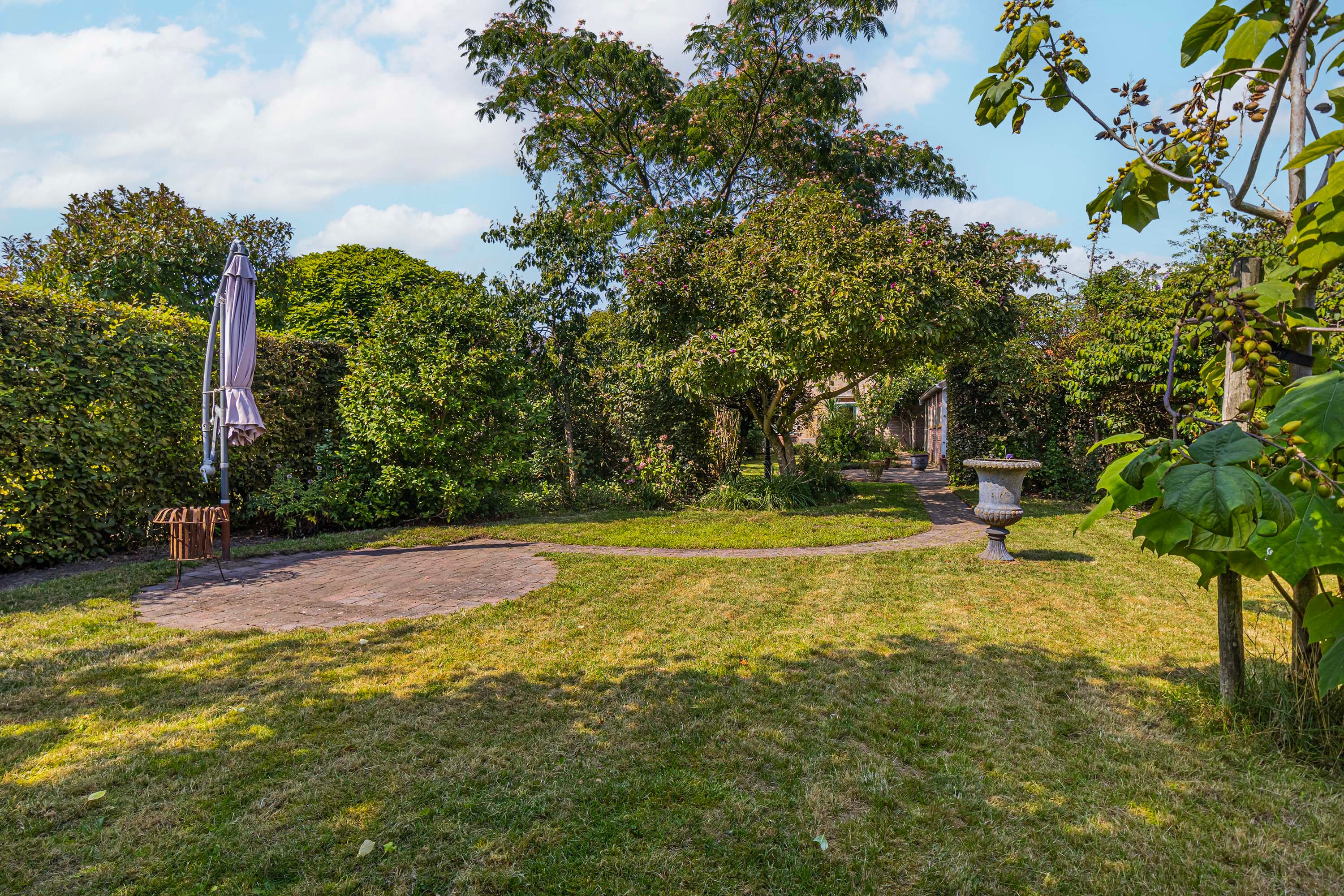De achtertuin, met een indrukwekkende diepte van meer dan 32 meter, ligt op het zuiden en is bereikbaar via de keuken, de garage en een achterom. Deze ruime tuin biedt tal van mogelijkheden om gezellige zithoeken te realiseren en tegelijkertijd een fijne speelplek te creëren voor kinderen. Verder is er een praktische berging aanwezig, perfect voor extra opslag.