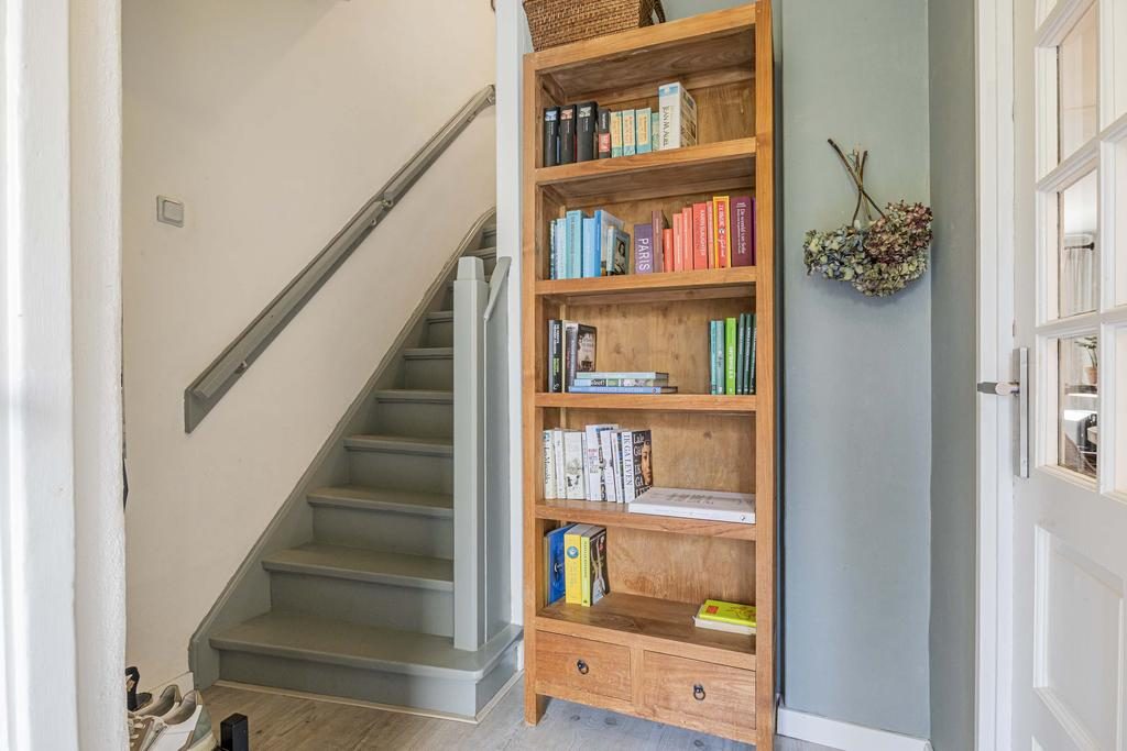 De entree van het appartement bevindt zich op de begane grond aan de zijkant van het complex. Je komt binnen in de hal met direct links de opstelplaats voor de wasmachine-aansluiting. Rechts vind je de meterkast, verderop het toilet, trapopgang naar de eerste verdieping en toegang tot de woonkamer.