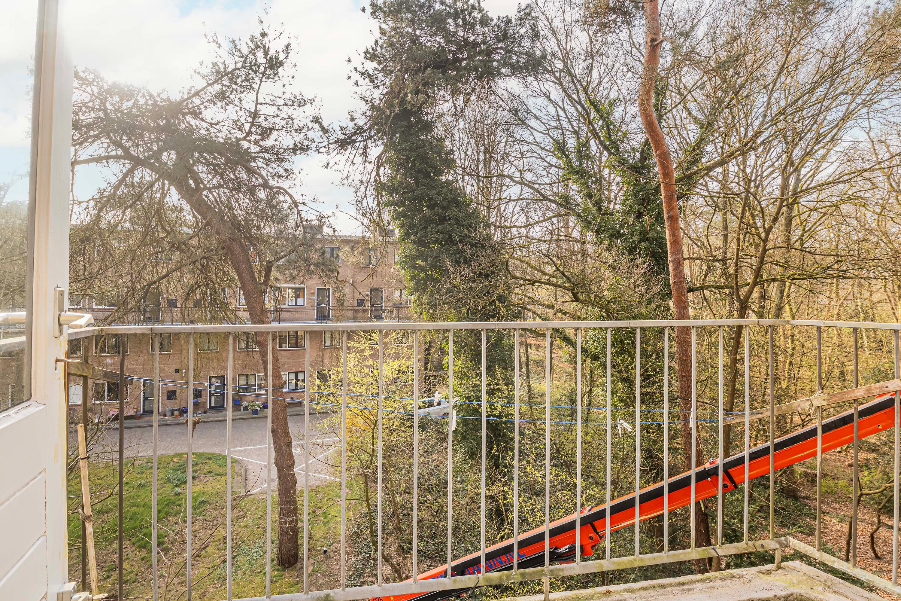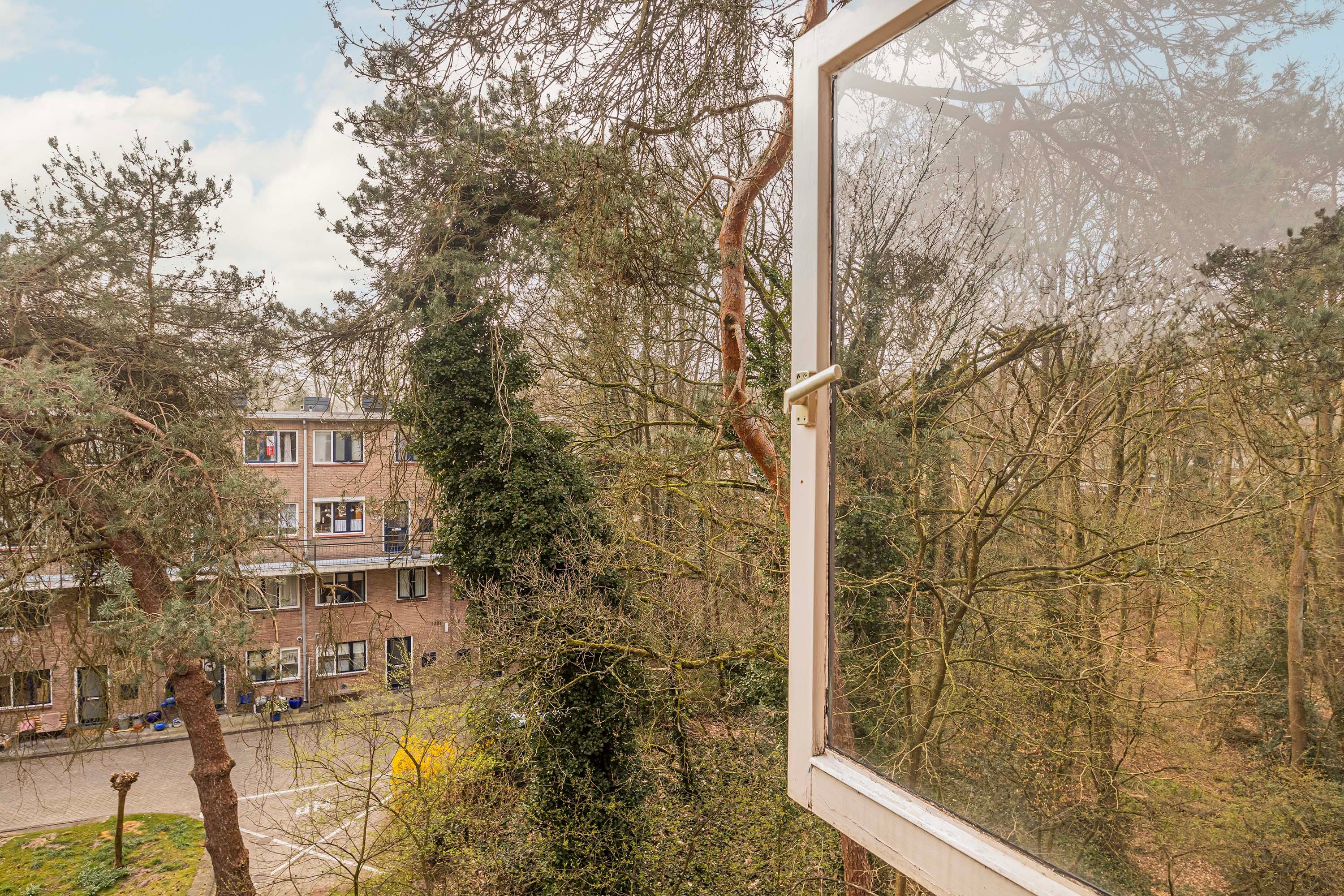 Deze maisonnette met berging bevindt zich aan de gewilde Van Heutszlaan. De groene omgeving, nabijheid van bossen en heide, en de fietsafstand tot het centrum maken dit een aantrekkelijke woonlocatie. Aan de zijkant van het complex zijn er verschillende parkeermogelijkheden en in de onderbouw is een berging beschikbaar. De woning ligt op de 2e en 3e verdieping. Het balkon met vrij uitzicht op de bosrijke omgeving is gelegen op het oosten waar je kunt genieten van de ochtend- en middagzon.