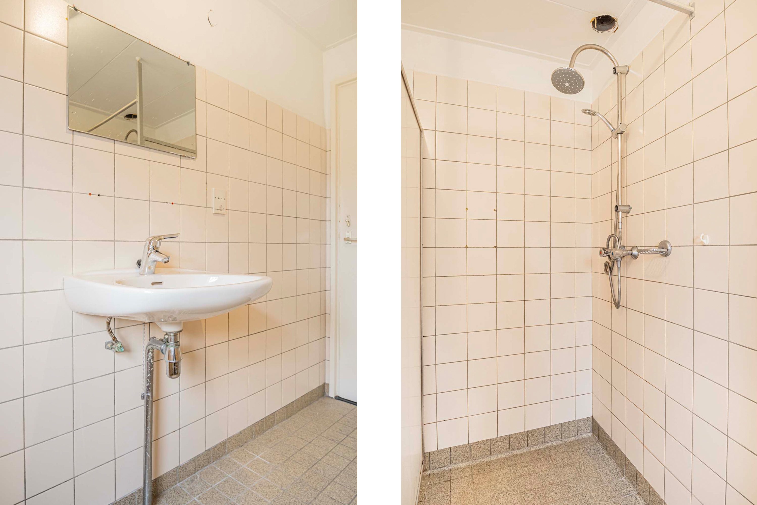 De eenvoudige badkamer is voorzien van een wastafel, douchehoek, 2e toilet en wasmachine aansluiting.