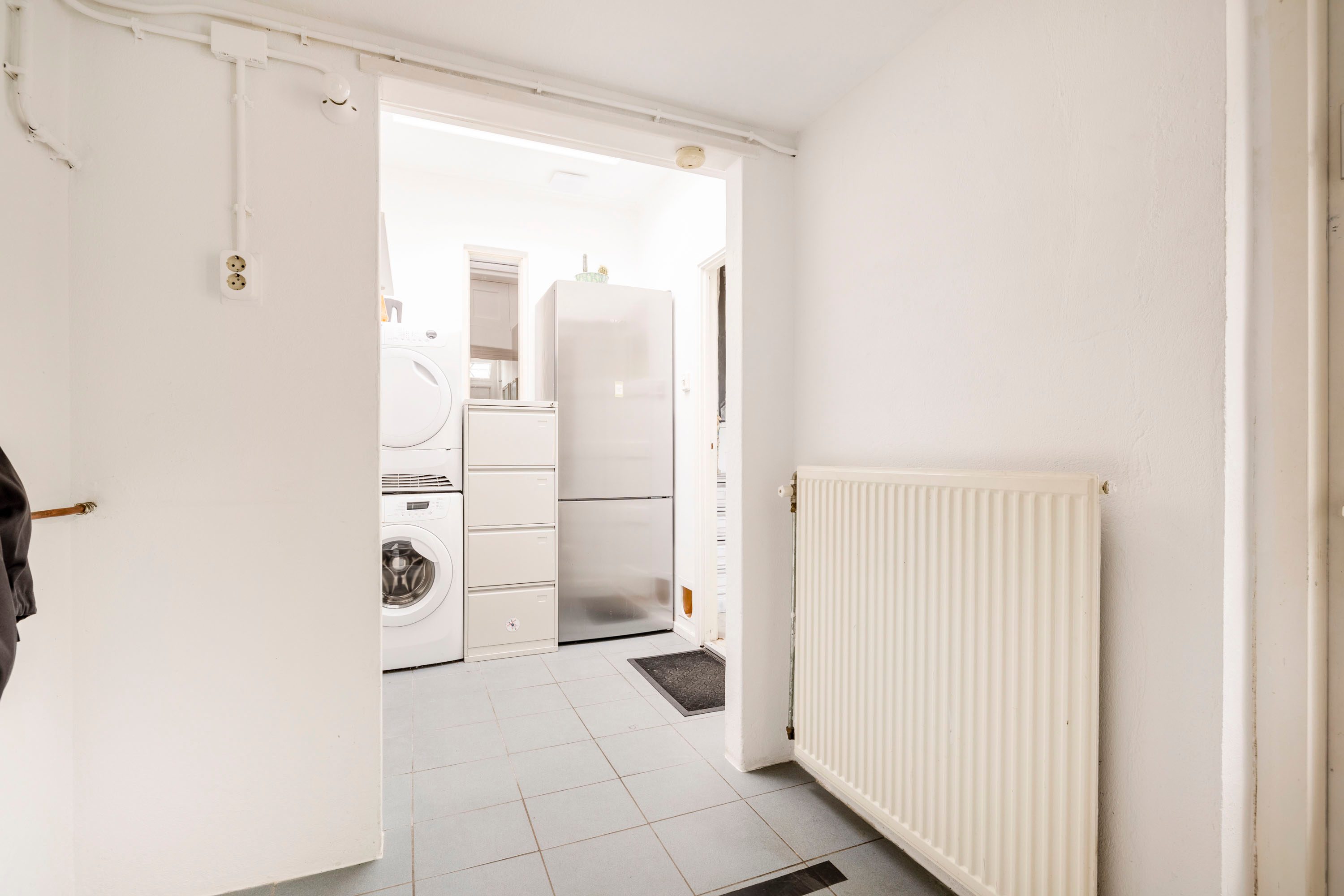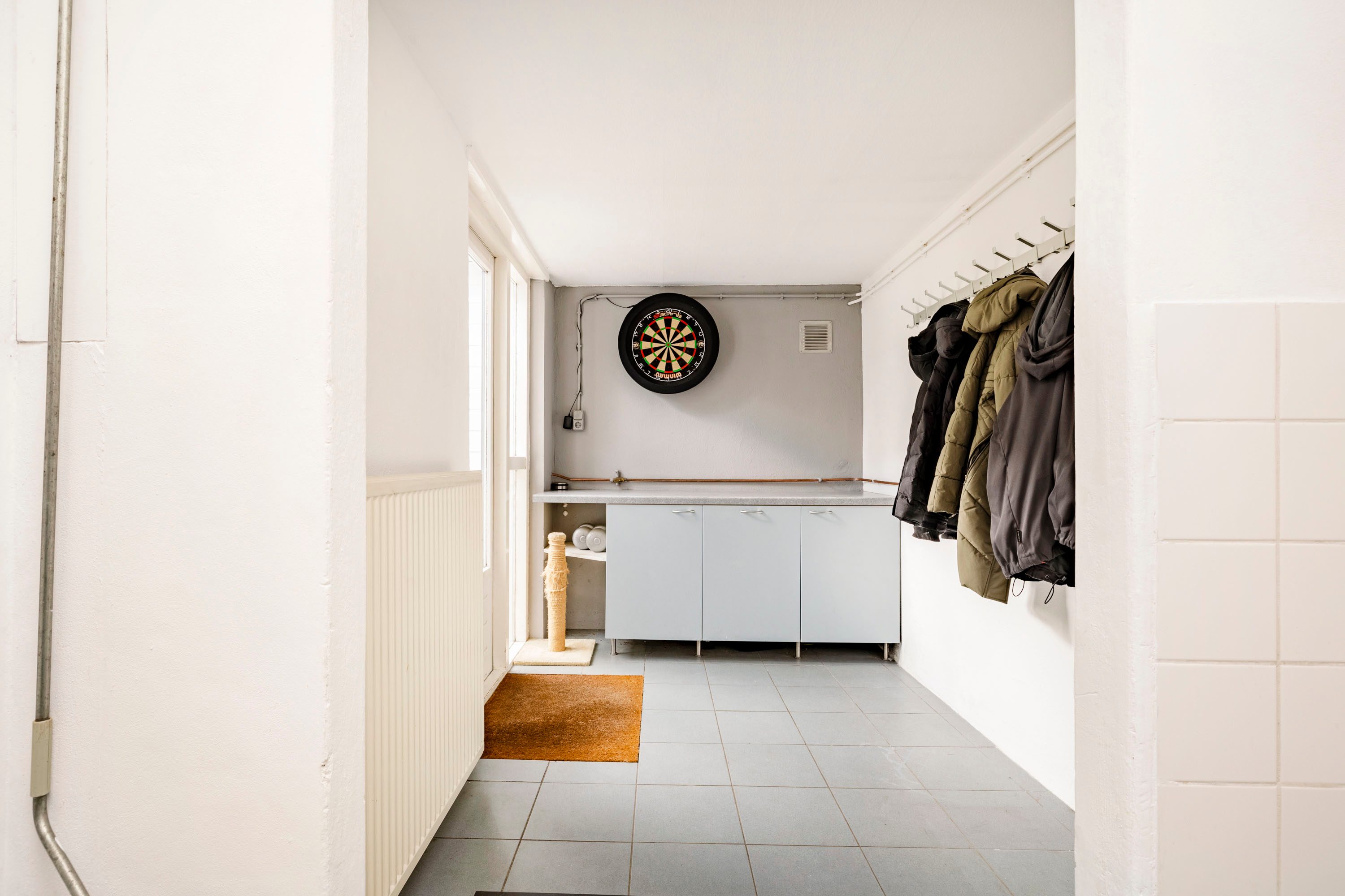 Via de eetkamer aan de achterzijde van de woning is nog een bijkeuken toegankelijk, hier is voldoende ruimte en aansluiting voor zowel een wasmachine als een droger. Tevens is hier ruimte voor een vriezer. Naast de bijkeuken is nog hal te vinden waar gemakkelijk jassen en schoenen kunnen worden opgeborgen.