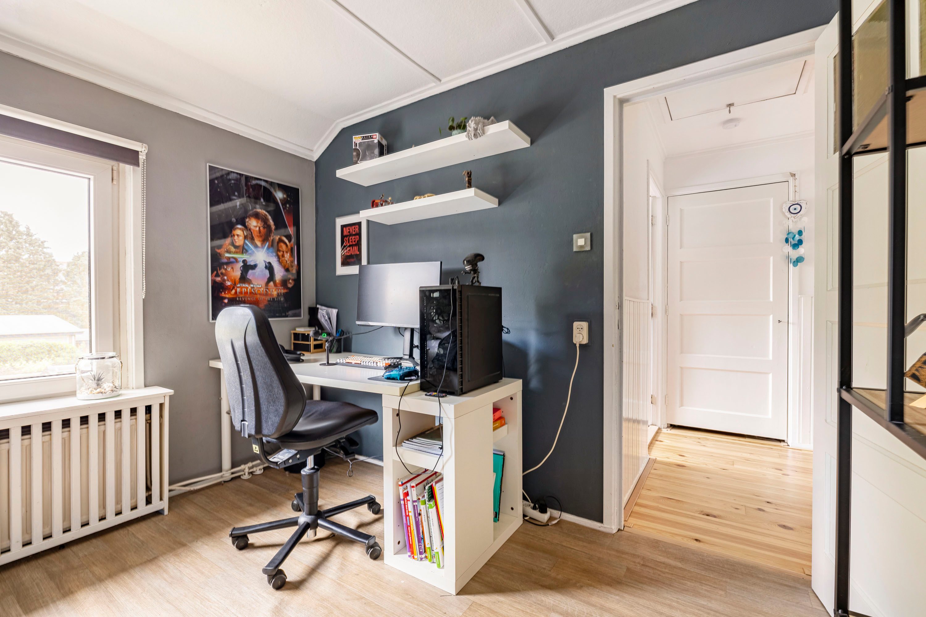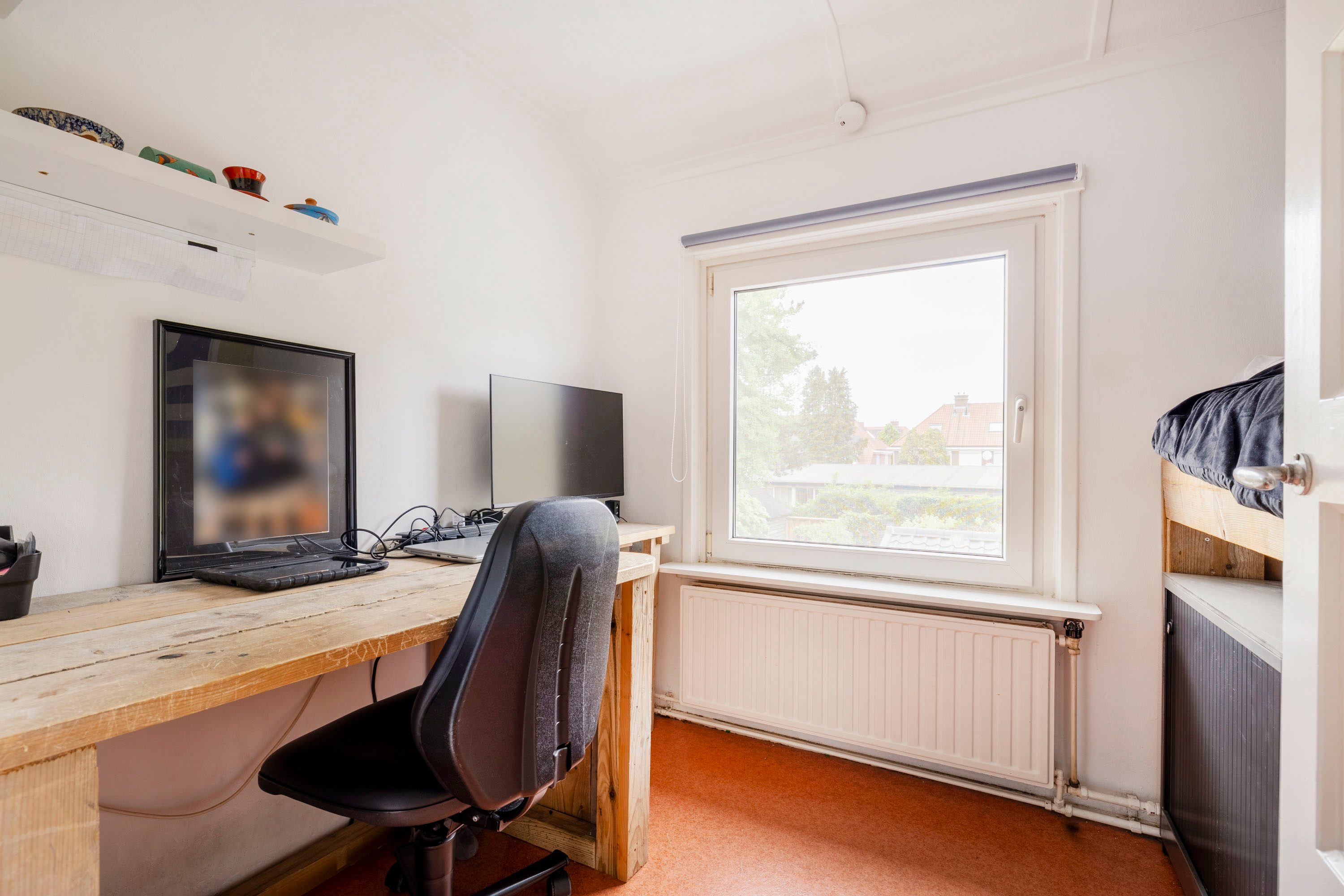 Op de eerste verdieping kom je op een overloop die toegang biedt tot verschillende vertrekken. Hier bevinden zich drie slaapkamers, de badkamer en de C.V.-ruimte.