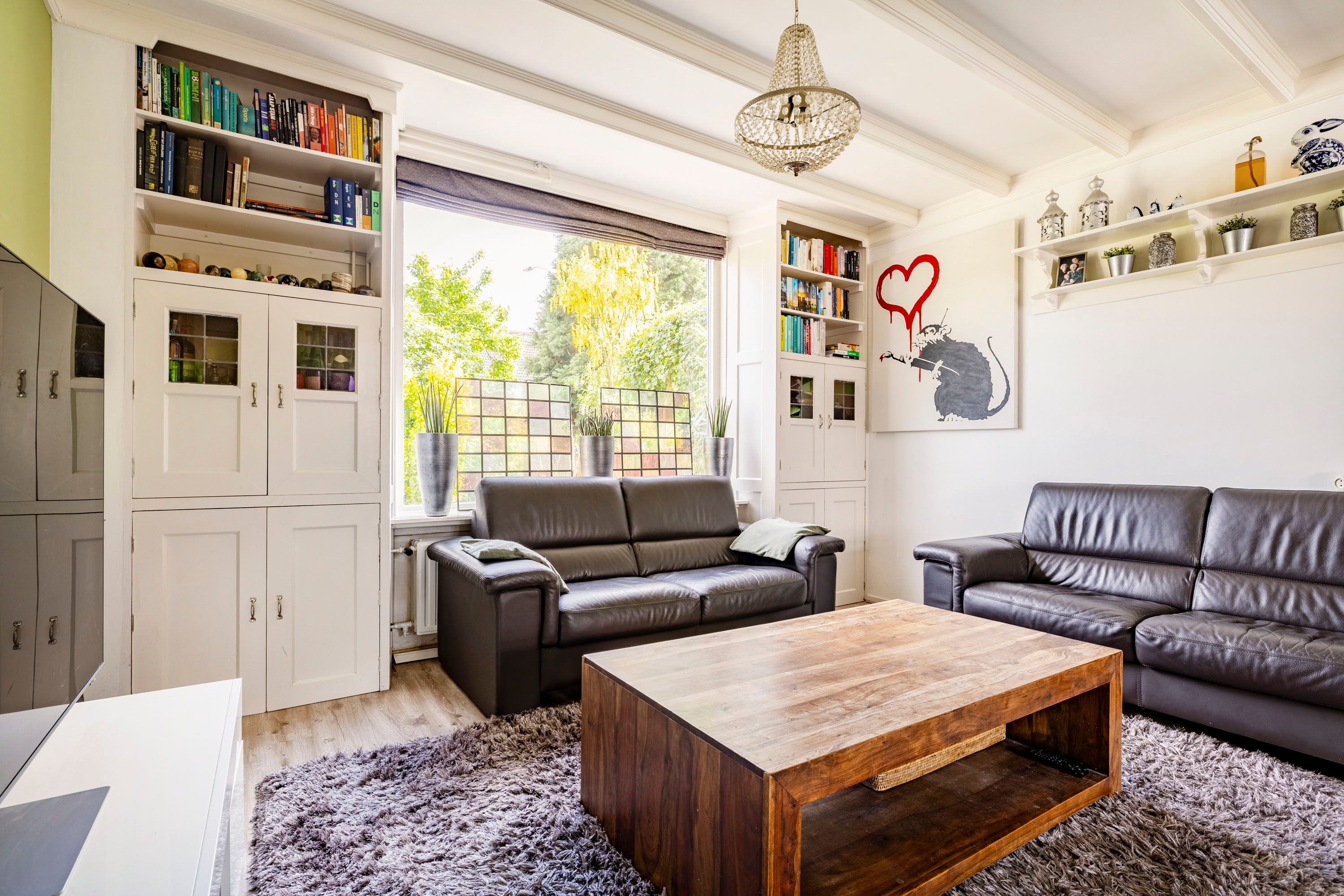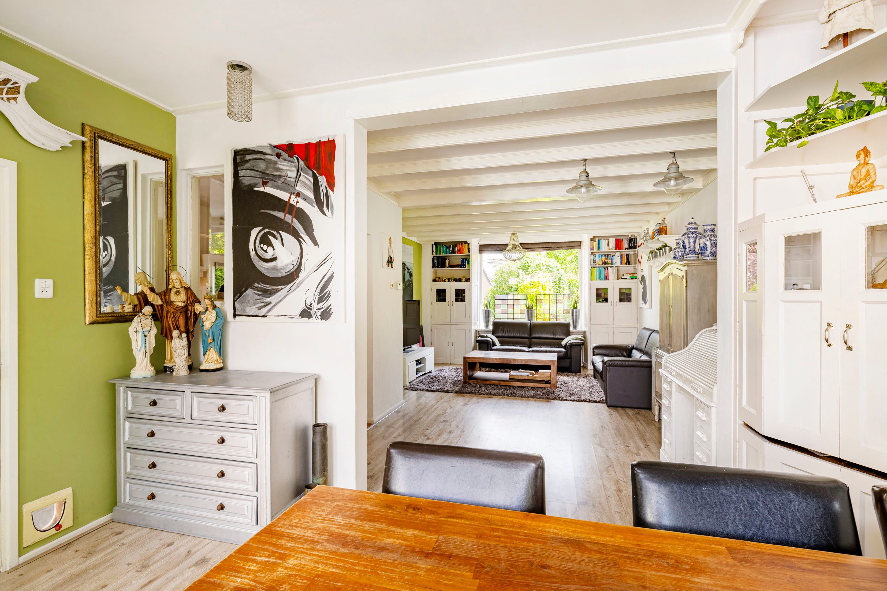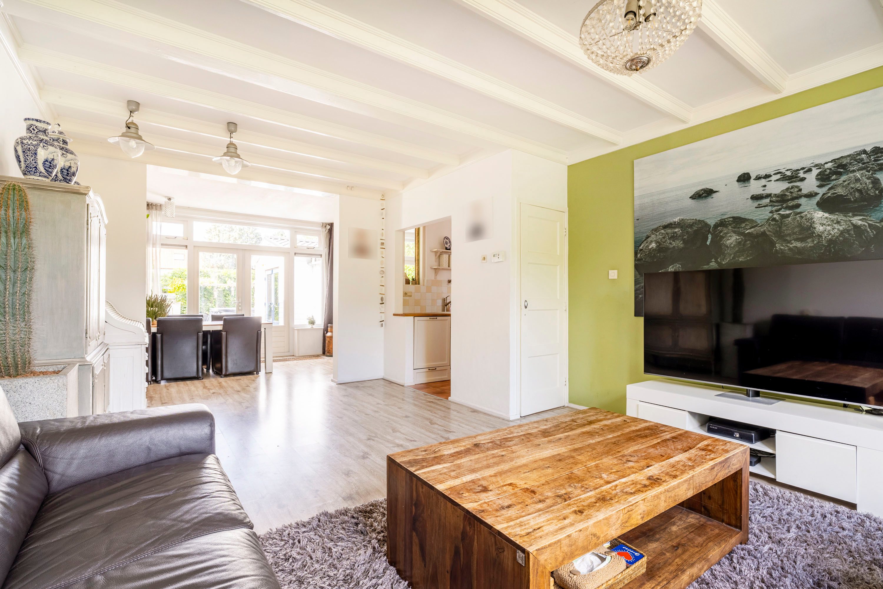 De woning beschikt over een royale woonkamer van totaal 36 m². Deze ruime en lichte leefruimte is voorzien van een mooi plafond met karakteristieke plafondbalken. De open doorgang naar de eetkamer geeft de woning een ruimgevoel. Door het vele glas in de achtergevel en de open doorgang naar woonkamer is de hele benedenverdieping uitstekend verlicht met zonlicht. Met de openslaande tuindeuren in de achtergevel van de woning kun je tevens heerlijk de tuin naar binnen halen.