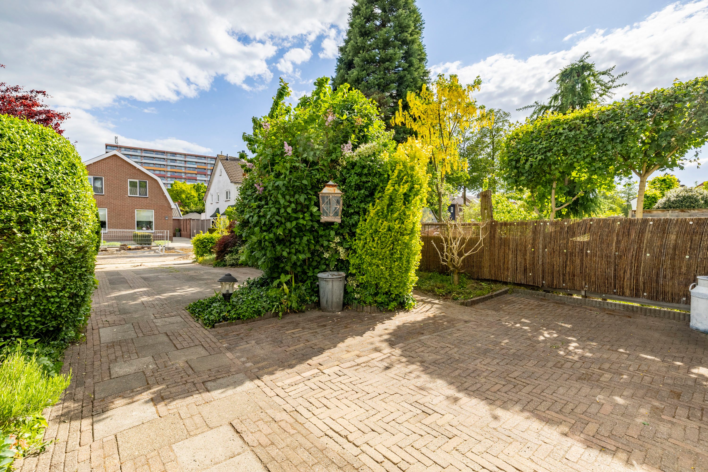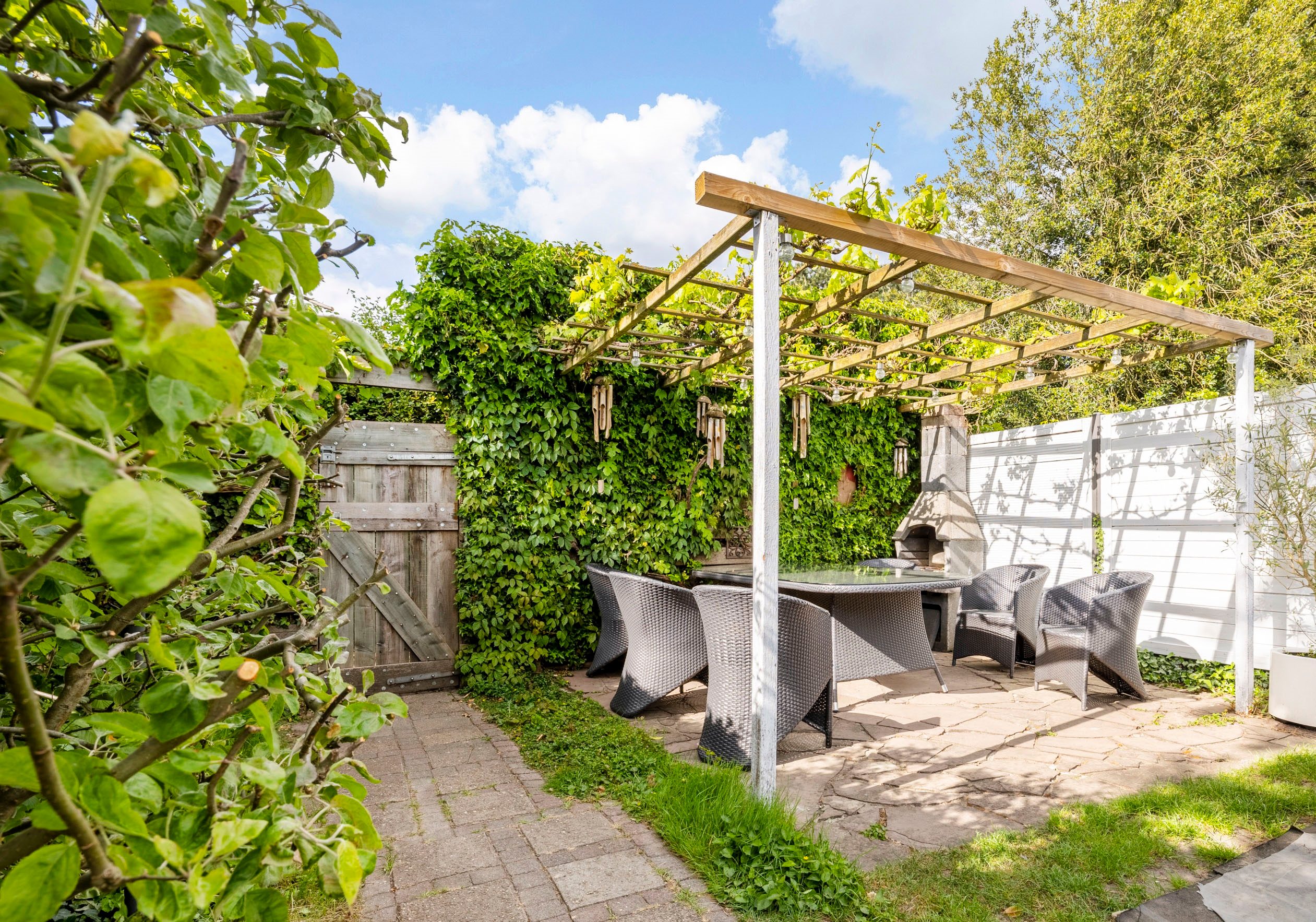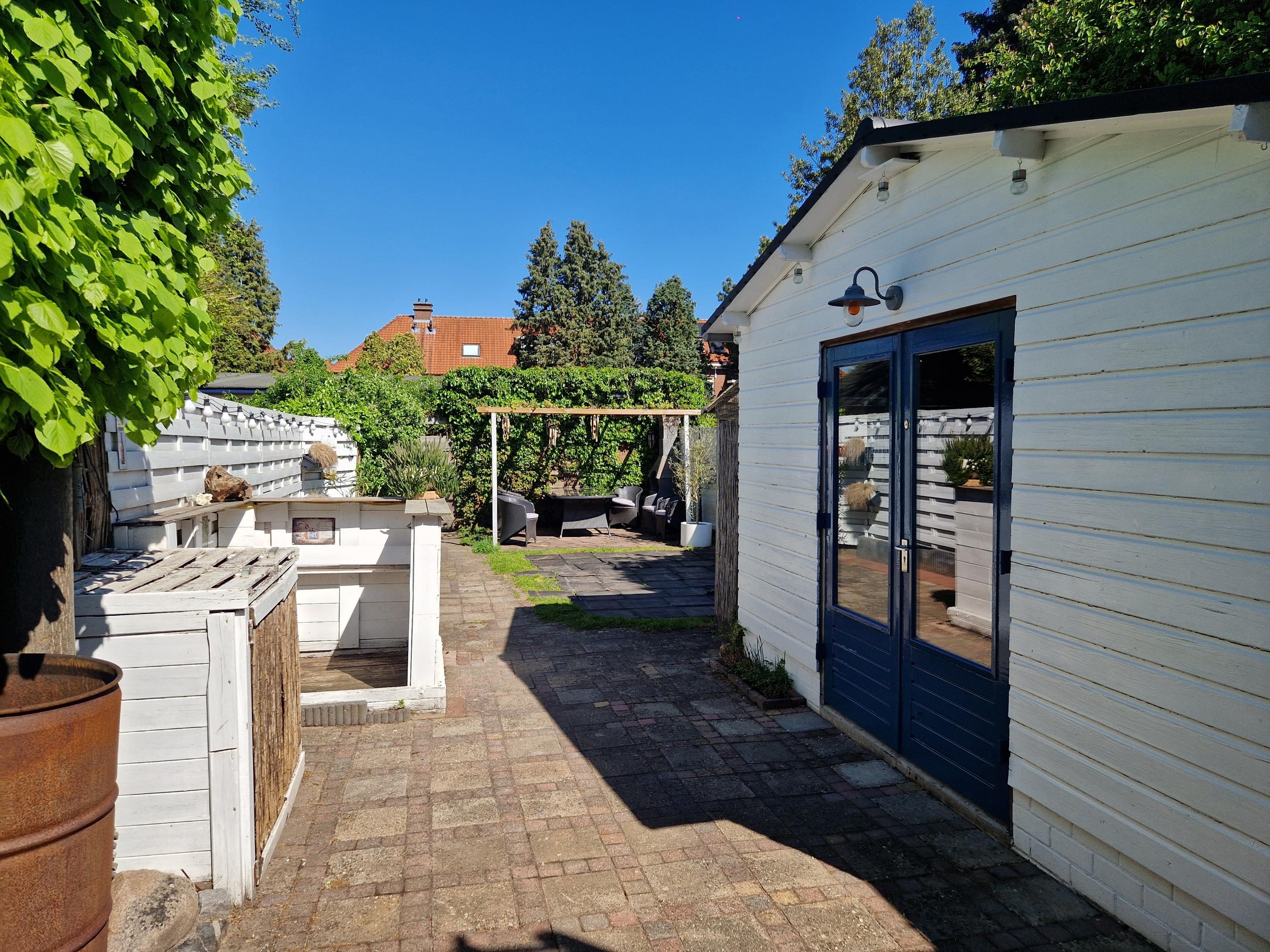 Vanuit de eetkamer of de hal aan de achterzijde van de woning betreed je de mooie diepe, grote achtertuin. Ondanks de ligging op het noorden is er, door de diepe, altijd wel een lekker plekje om te genieten in de zon. Deze sfeervolle tuin is uitgerust met een gezellige zithoek en een ruime berging ideaal voor het opbergen van tuingereedschap, fietsen of andere benodigdheden. Bovendien is er een handige achterom, die zorgt voor gemakkelijke toegang tot en van de tuin zonder door het huis te hoeven gaan. Naast een fijne privacy aan de voorzijde biedt de diepe voortuin parkeerplaats voor twee auto's op eigen terrein.