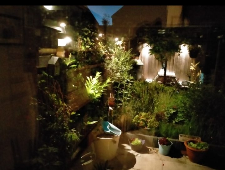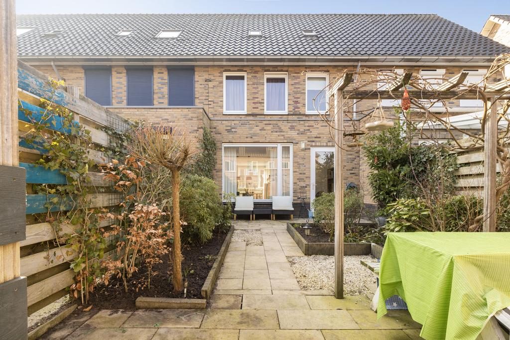 De achtertuin ligt op het noorden en is voorzien van sierstraatwerk, goede erfafscheidingen, diverse planten borders en een pergola.