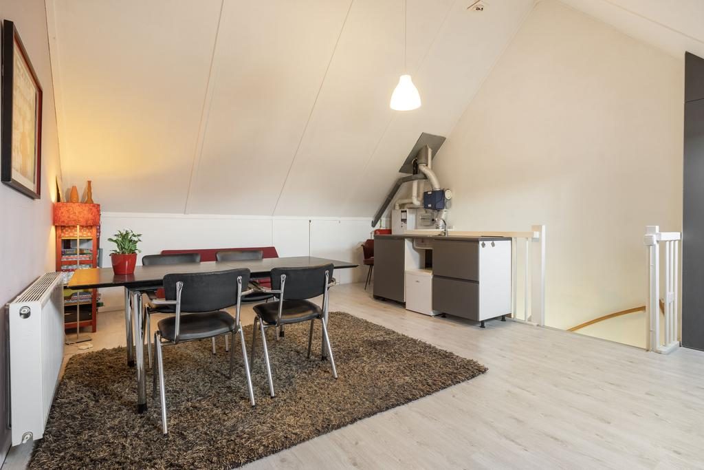 Via een vaste trap is de ruime zolder bereikbaar. Deze zolder is helemaal open waardoor er gemakkelijk twee slaapkamers gerealiseerd kunnen worden. Momenteel is deze ruimte ingerichte als woon- werkruimte met een aanrechtblok met spoelbak en stromende water.
