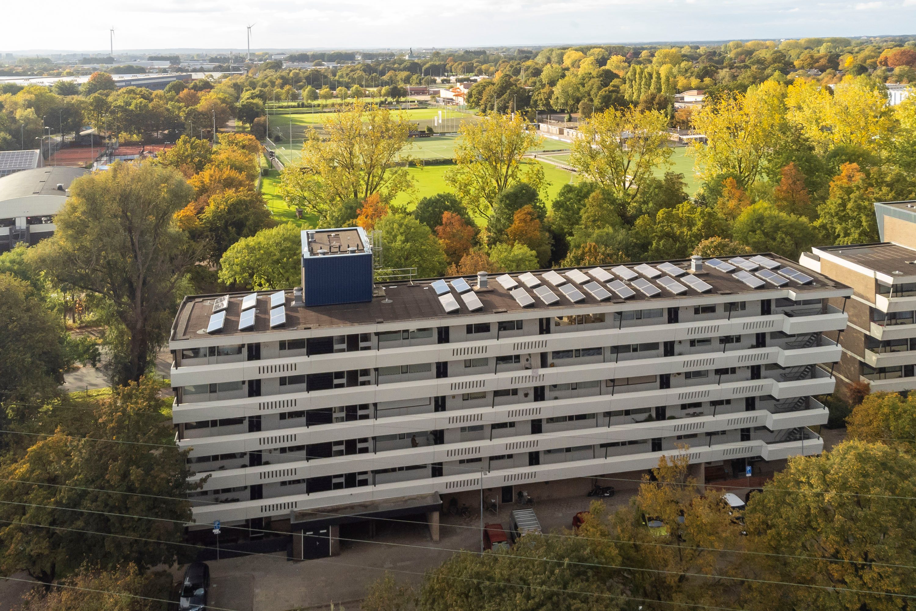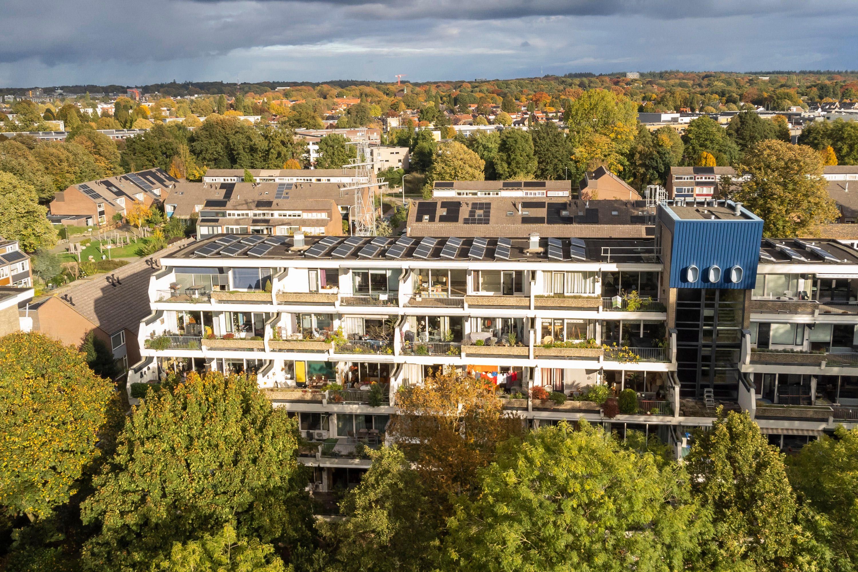 Het ruime balkon van 31 m² ligt op het westen en is toegankelijk via de woonkamer én de tweede slaapkamer. Dankzij de ligging geniet je van de middag- en avondzon, terwijl het aanwezige elektrische zonnescherm zorgt voor schaduw wanneer gewenst. Dankzij de ruime opzet is er plek genoeg om meerdere gezellige zithoeken te creëren. Voor het stallen van fietsen of grotere voertuigen, is er op de begane grond een praktische berging met een dubbele deur van circa 9 m² beschikbaar. De gezonde VvE heeft zonnepanelen op het dak van het appartementsgebouw laten plaatsen, wat zorgt voor een duurzamer gebouw.