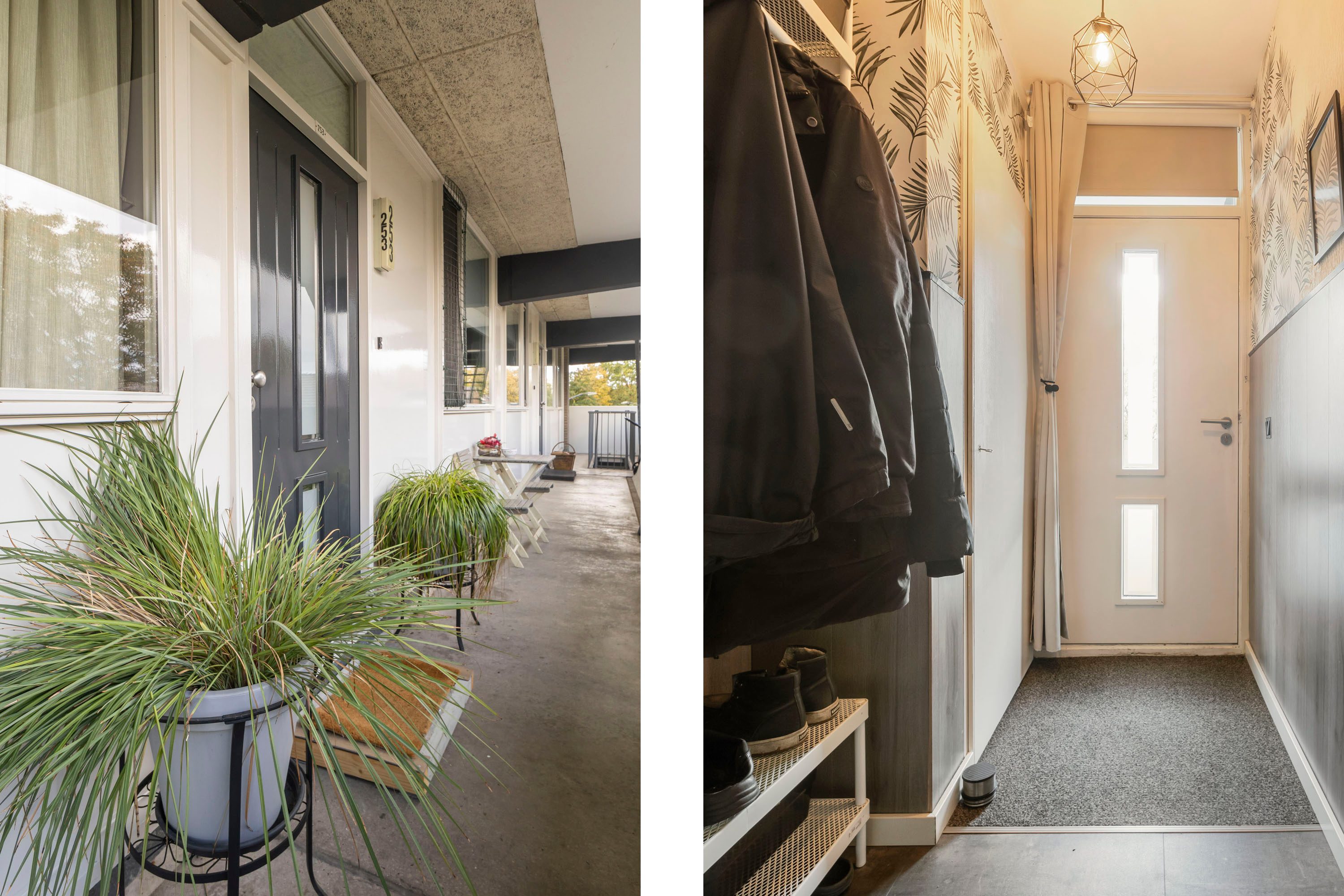 Het complex heeft een centrale entree met brievenbussen en intercom. Via de trap of lift bereik je de open galerij naar de woning.