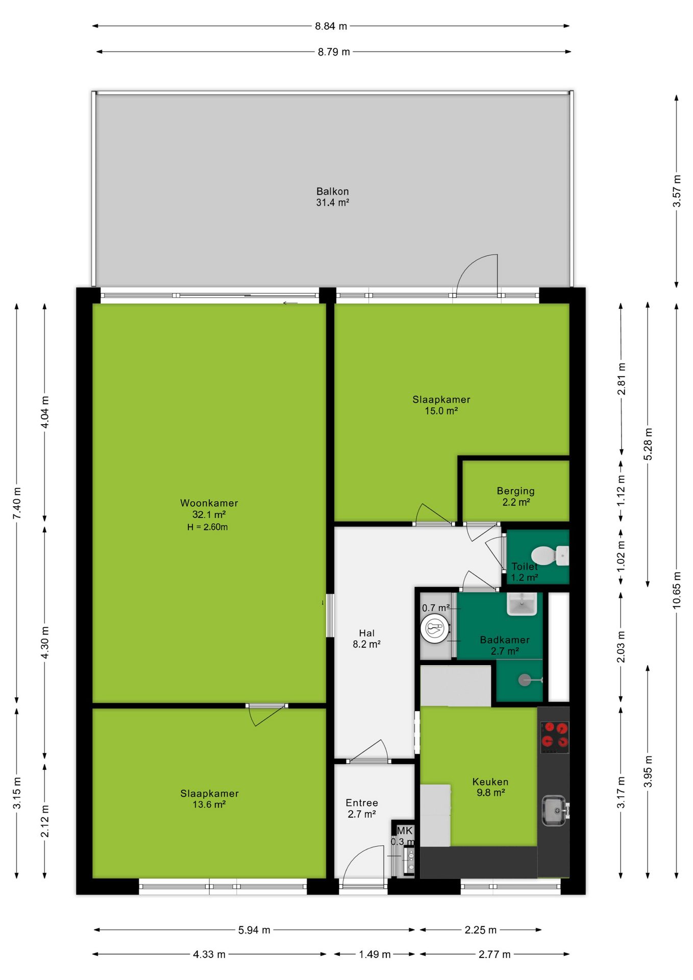 + Ruim balkon van 31 m² op het westen