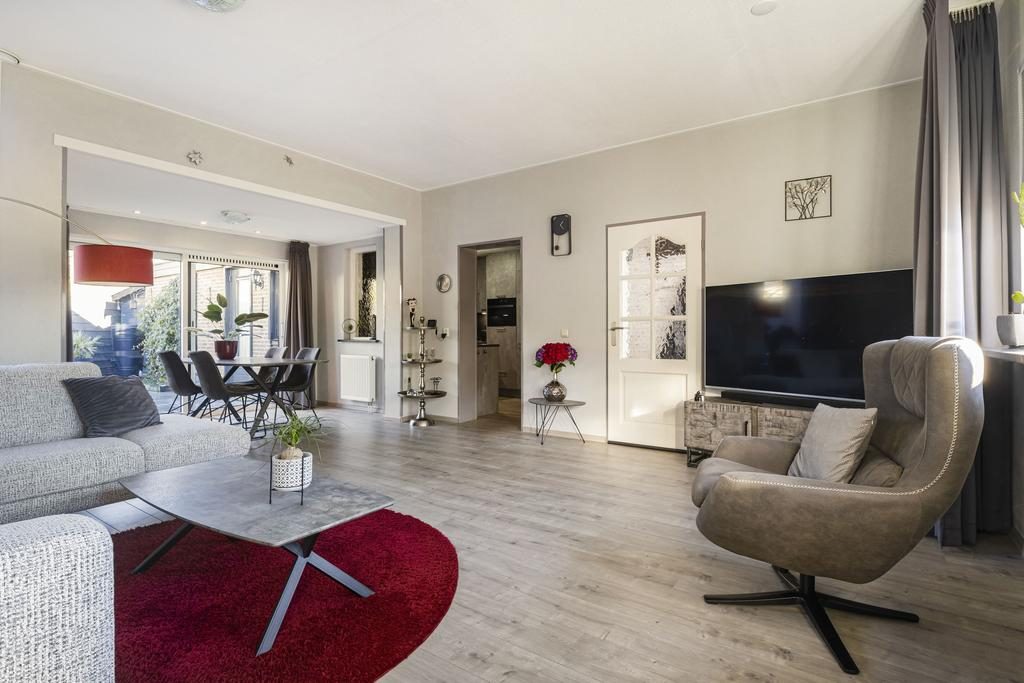 Via de entree is er toegang tot de ruime woonkamer en fijne keuken. De ruime woonkamer van ca. 32 m² heeft een prachtige lichtinval door de speelse raampartij in de voorgevel, een extra raam in de achtergevel en een schuifpui naar de achtertuin. Hier kun je heerlijk ontspannen én geniet je van een mooi uitzicht op je eigen beschutte tuin met veel privacy. Zowel de voor- als achterzijde van de woonkamer is voorzien van elektrische zonneschermen.
