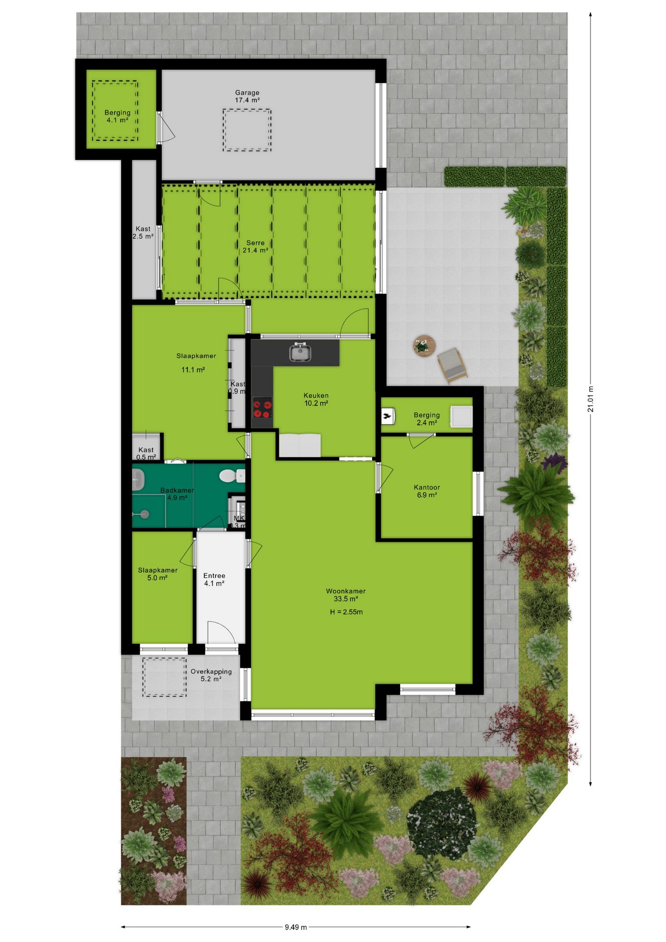 + Zonnige tuin op het westen en eigen garage;