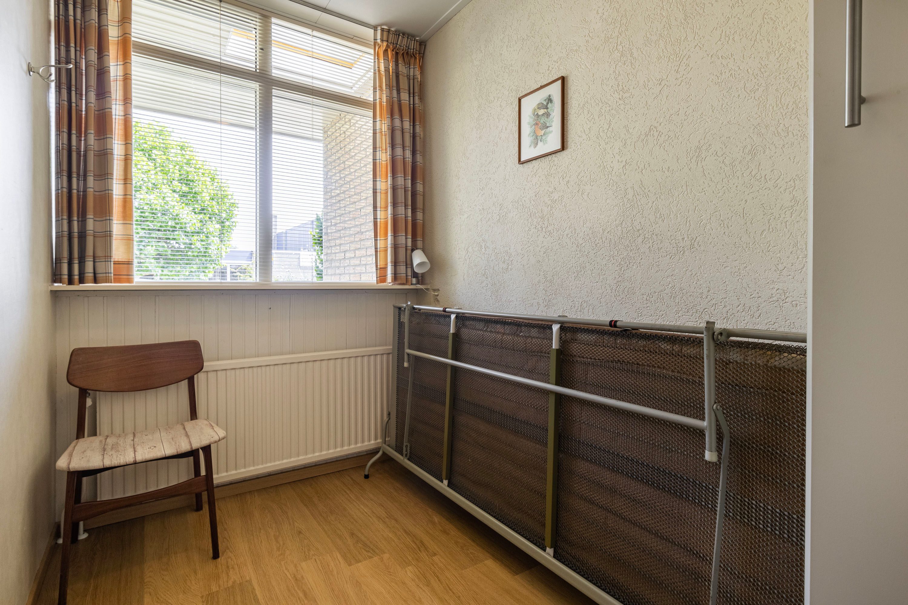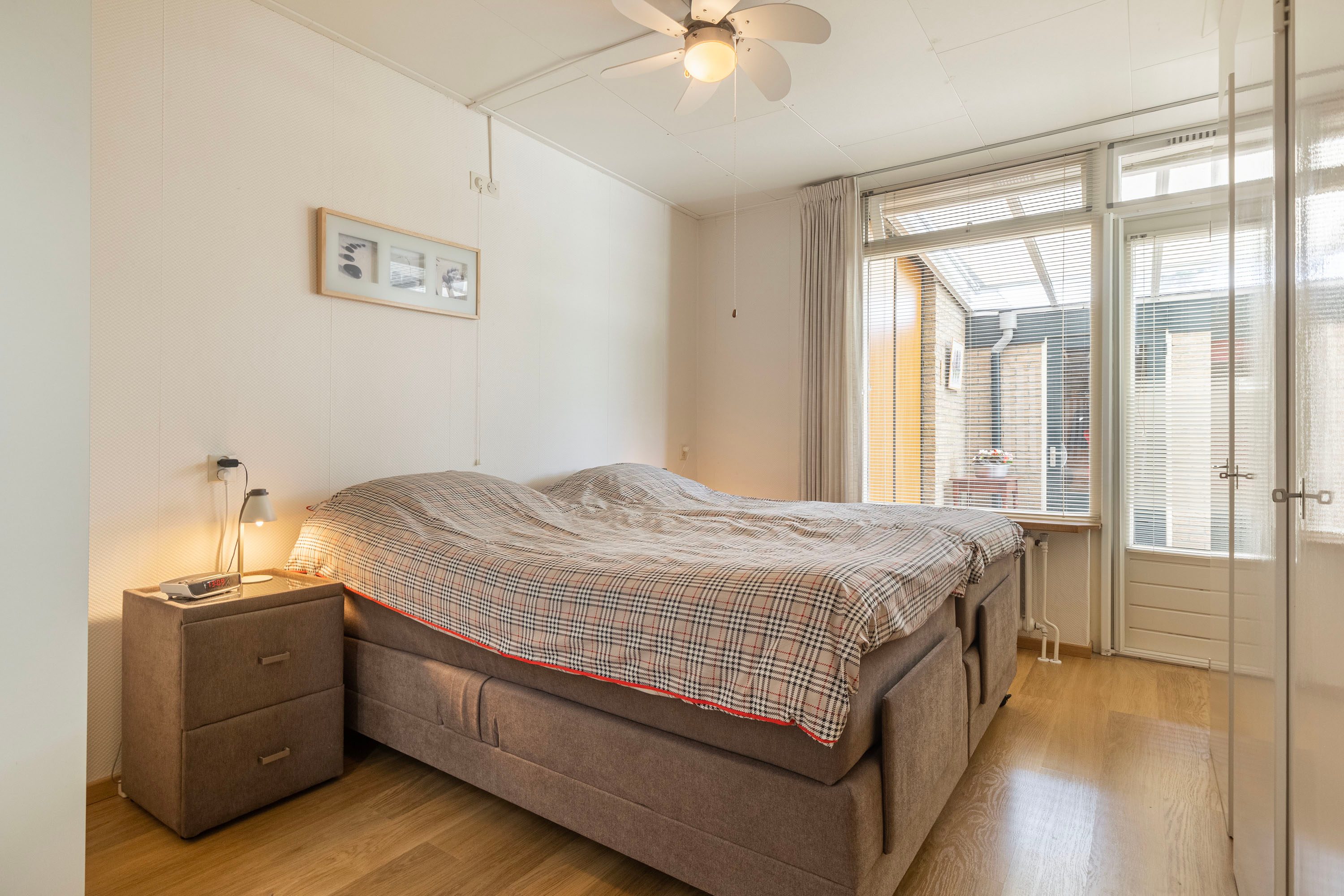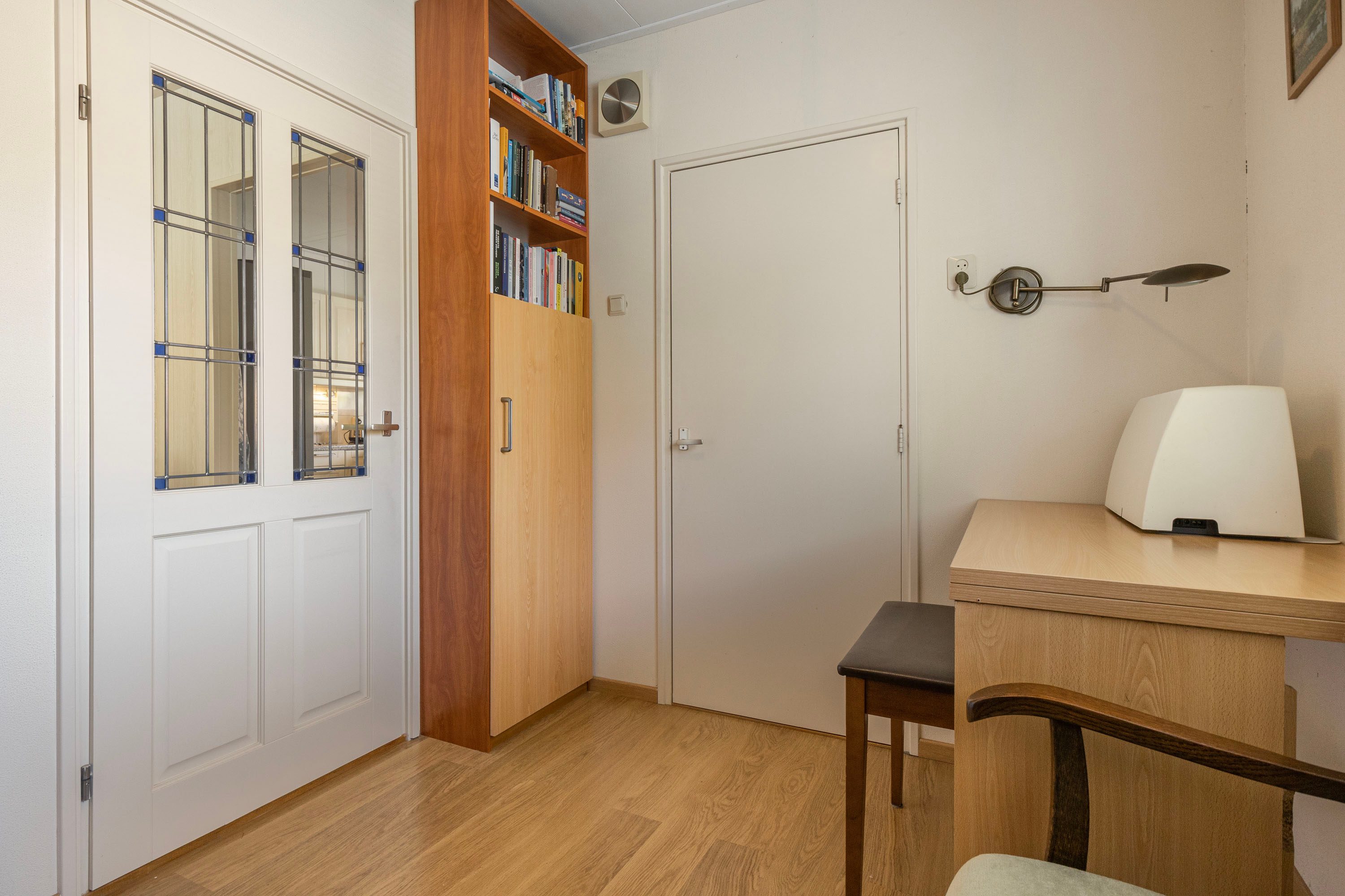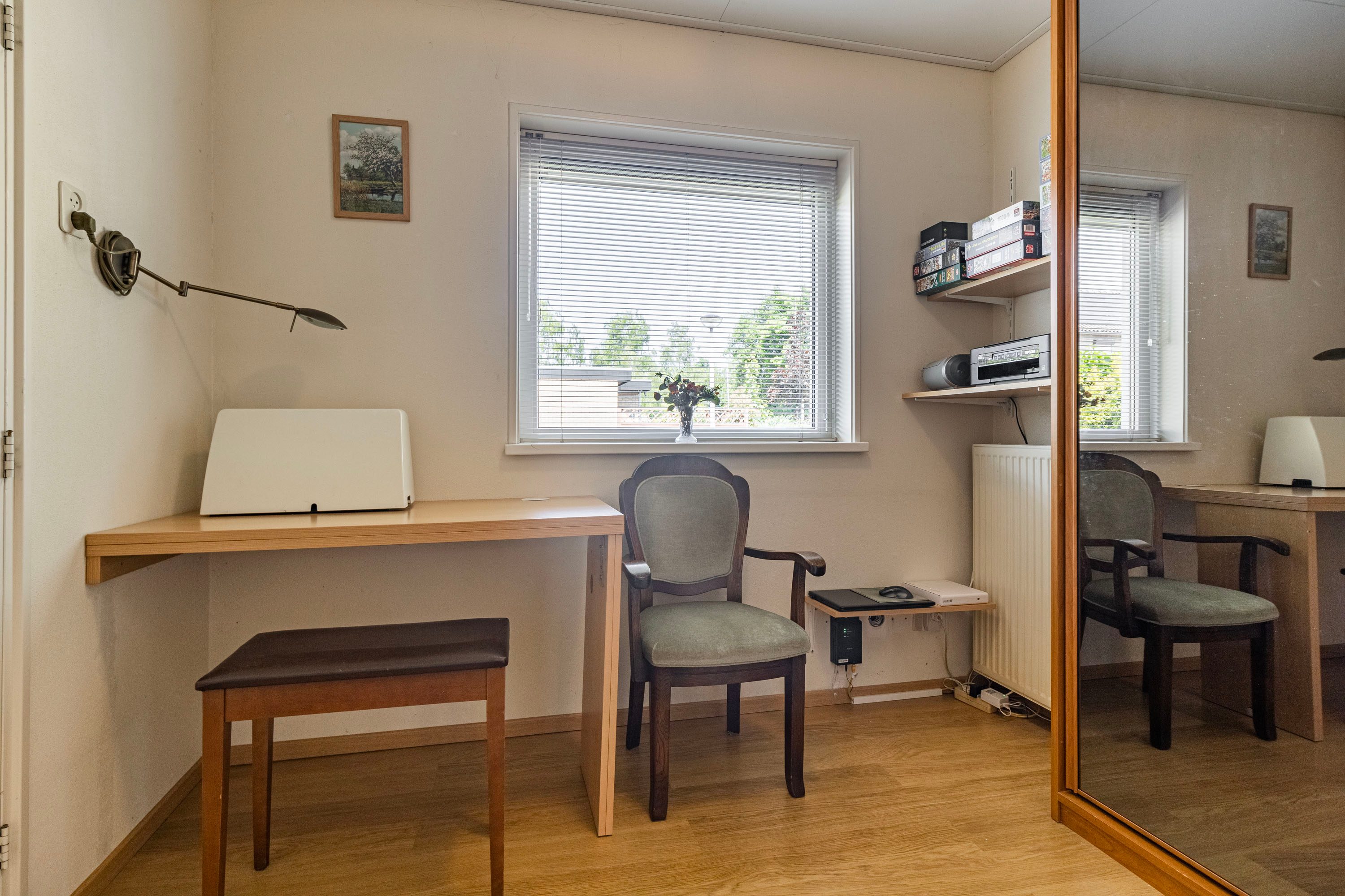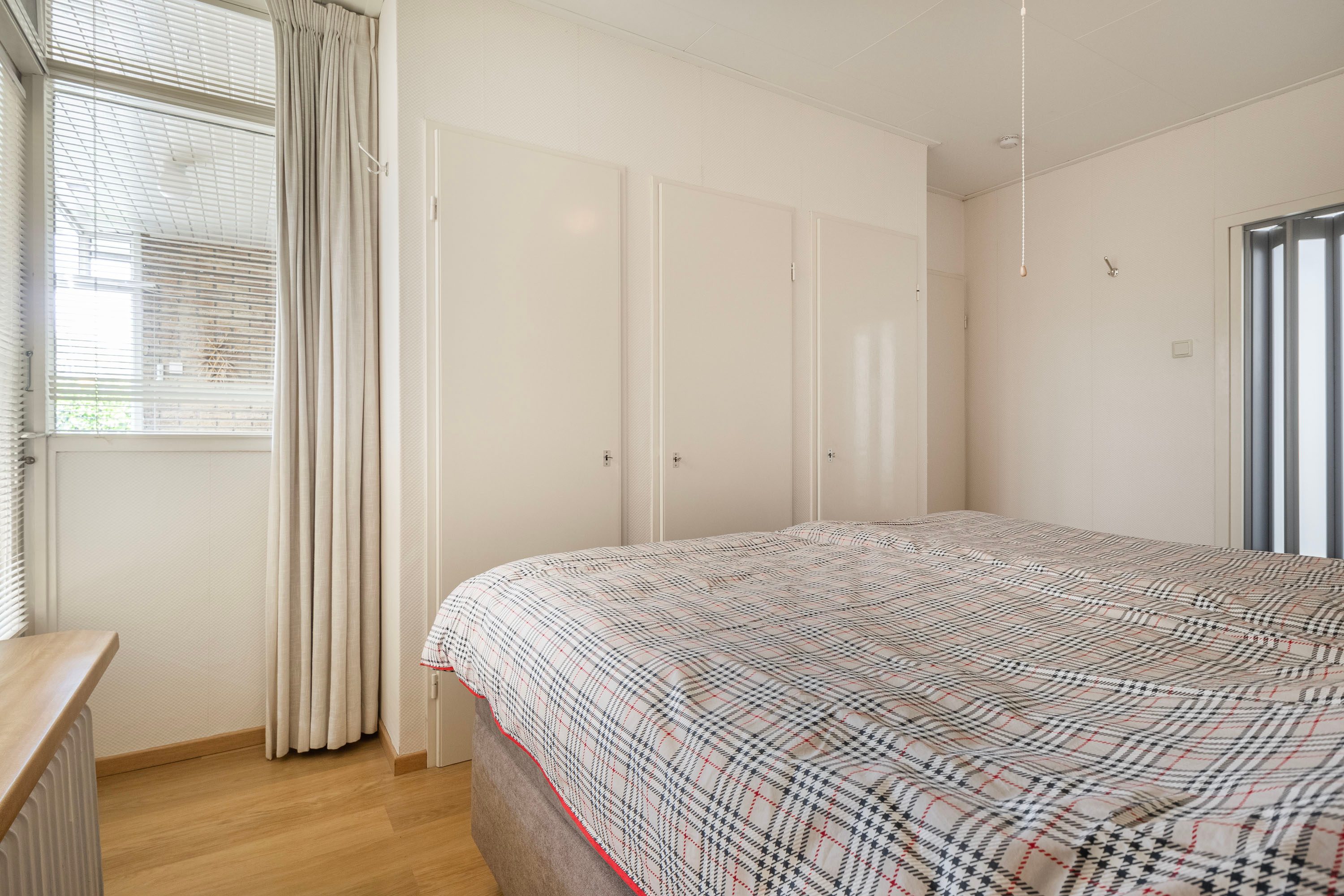 Daarnaast is er vanuit de woonkamer toegang tot een extra kamer. Deze praktische ruimte is ideaal te gebruiken als kantoor, extra slaapkamer of hobbyruimte. De woning beschikt verder over twee slaapkamers, met een oppervlak van respectievelijk 5 m² en 11,1 m². Beide kamers profiteren van voldoende daglicht, waarbij de grootste slaapkamer extra opbergruimte heeft dankzij inbouwkasten en directe toegang biedt tot de badkamer.