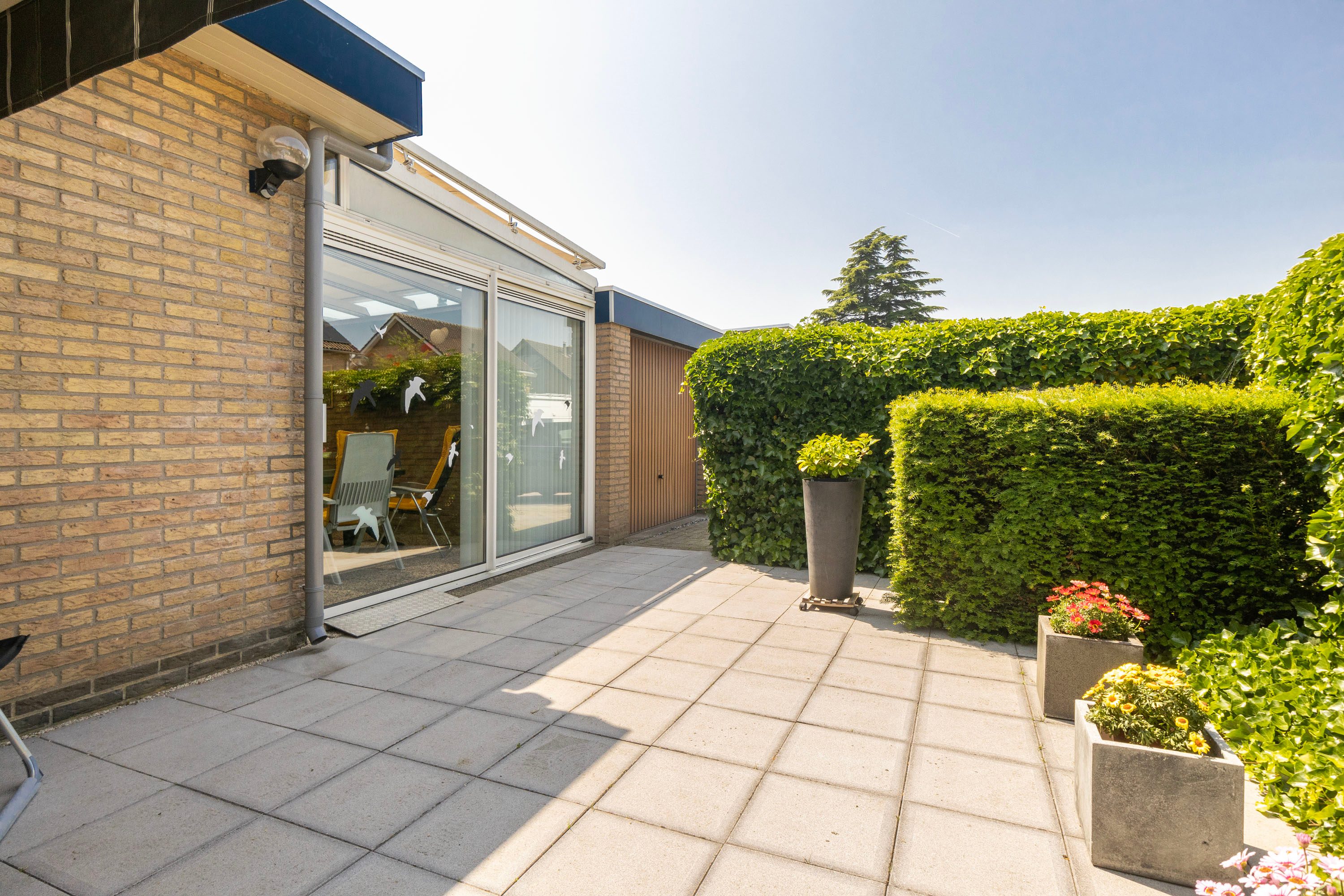 De tuin welke te bereiken is via de schuifpui in de serre is onderhoudsvriendelijk aangelegd en gelegen op het westen, waardoor je hier heerlijk kunt genieten van de middag- en avondzon. Of je nu kiest voor een loungeset of een gezellige eettafel in het zonnetje — deze tuin biedt volop mogelijkheden. De woning is daarnaast voorzien van een serre, een eigen garage én parkeergelegenheid op eigen terrein.