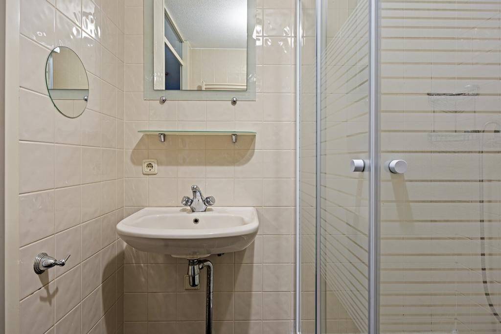 De twee slaapkamers zijn circa 11m² en 7m² groot. De slaapkamers zijn beiden voorzien van een laminaatvloer. De badkamer is volledig betegeld en voorzien van een douchecabine, wastafelmeubel en een handdoekradiator. De badkamer is afgewerkt met neutrale tegels die een rustige uitstraling geven. Daarnaast is er vanuit de hal toegang naar een separate toiletruimte en een aparte berg-/wasruimte. De toiletruimte is voorzien van een modern toilet en een fonteintje. In de berg-/wasruimte vind je de aansluiting voor de wasmachine en beschik je over extra ruimte voor schoonmaakspullen en andere huishoudelijke items.