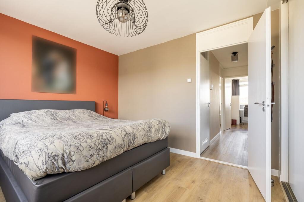 Via de vaste trap kom je bij de overloop met trapopgang naar de tweede verdieping, drie slaapkamers en de badkamer. Gelegen aan de voorzijde van de woning bevindt zich de ouderslaapkamer. Bijna 14 m² groot en voorzien van een grote schuifkastenwand. De twee andere slaapkamers zijn gelegen aan de achterzijde van de woning en zijn ruim 9 m² en ruim 6 m². Van de slaapkamer van ruim 9 m² kun je via een loopdeur naar het balkon.