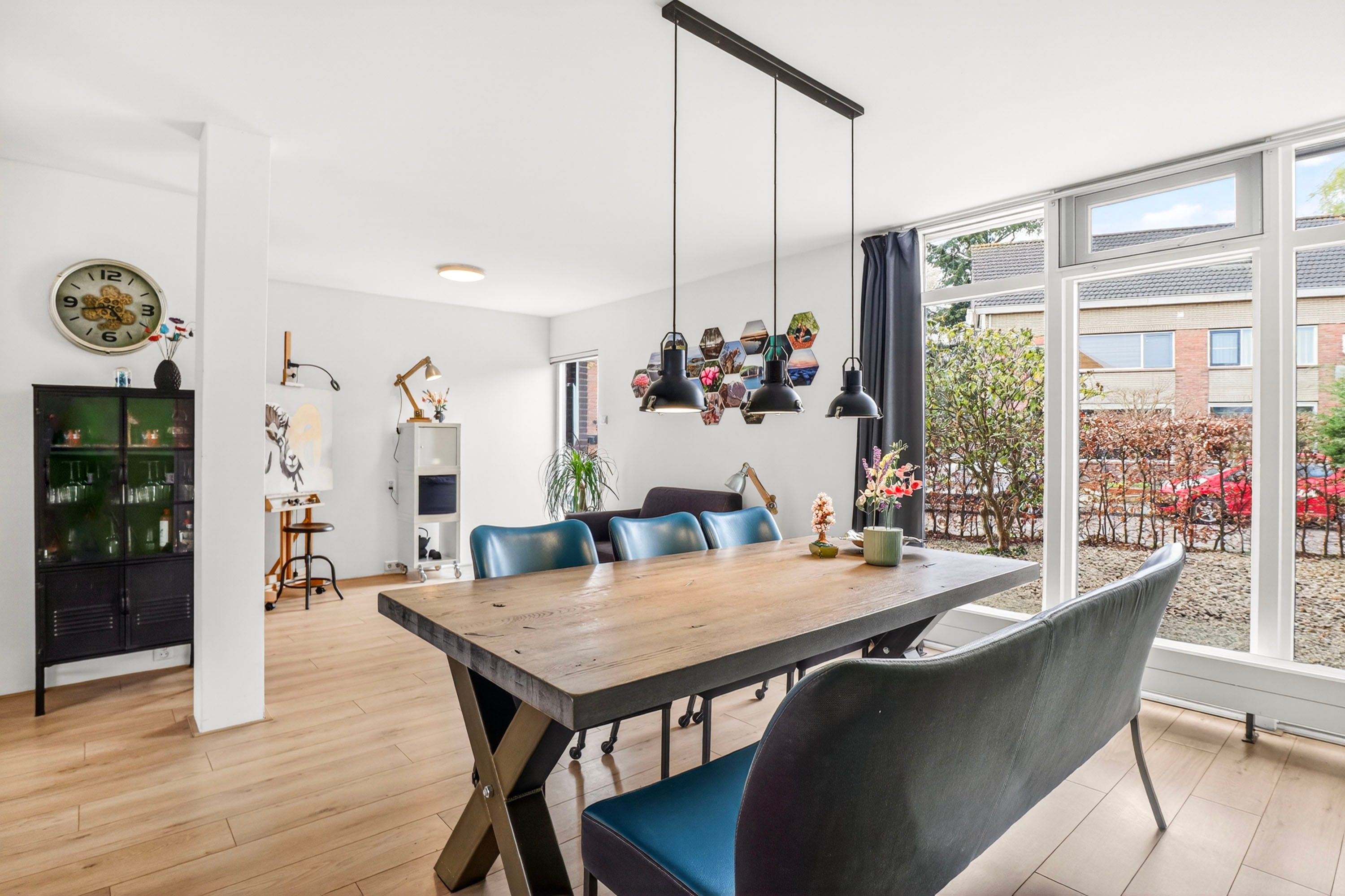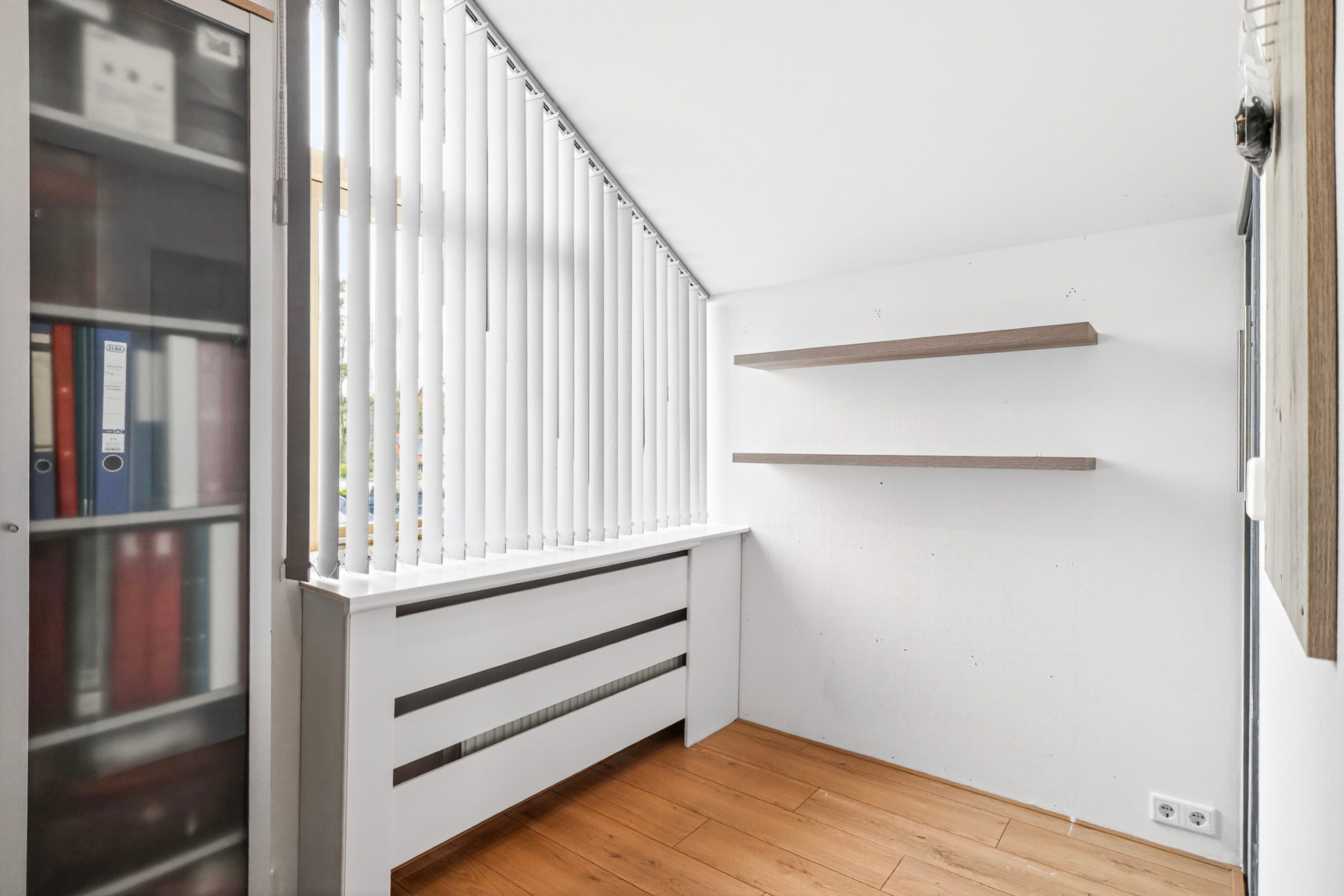 - Elektrische zonnescherm bij het raam van de woonkamer