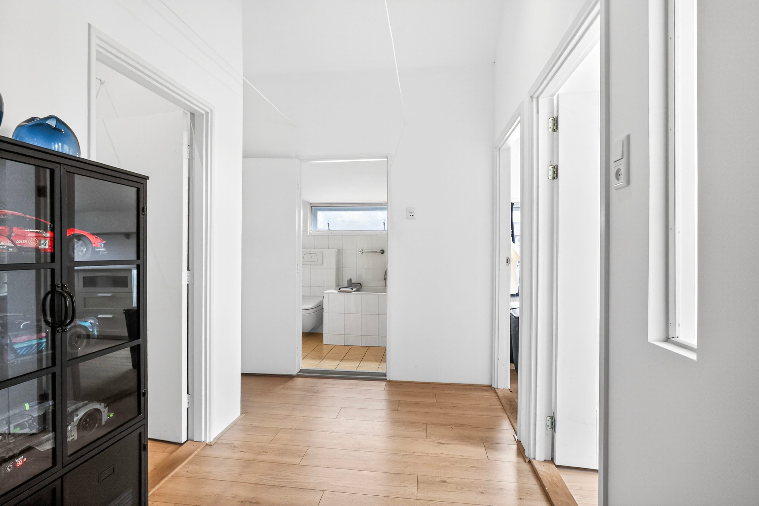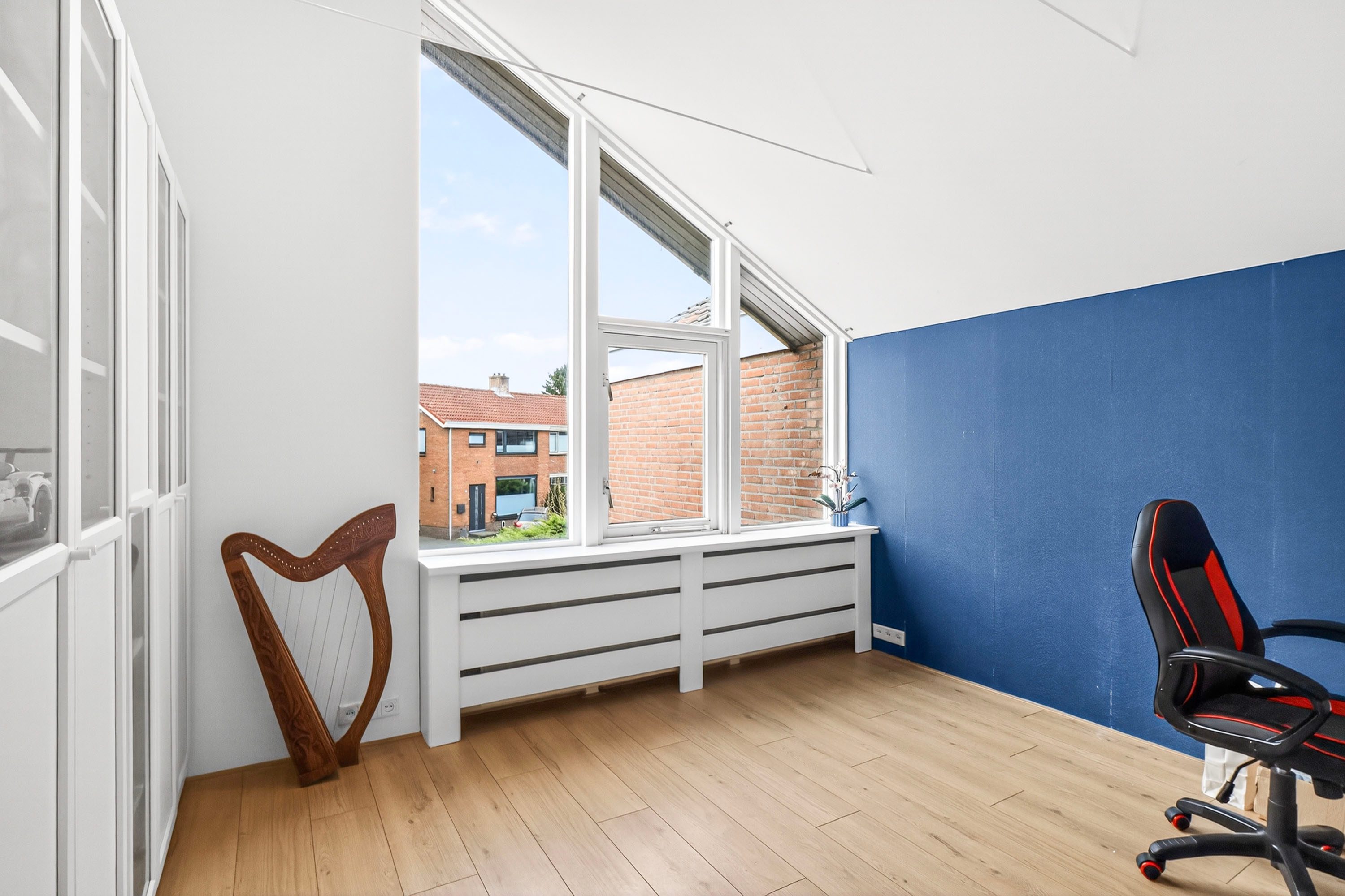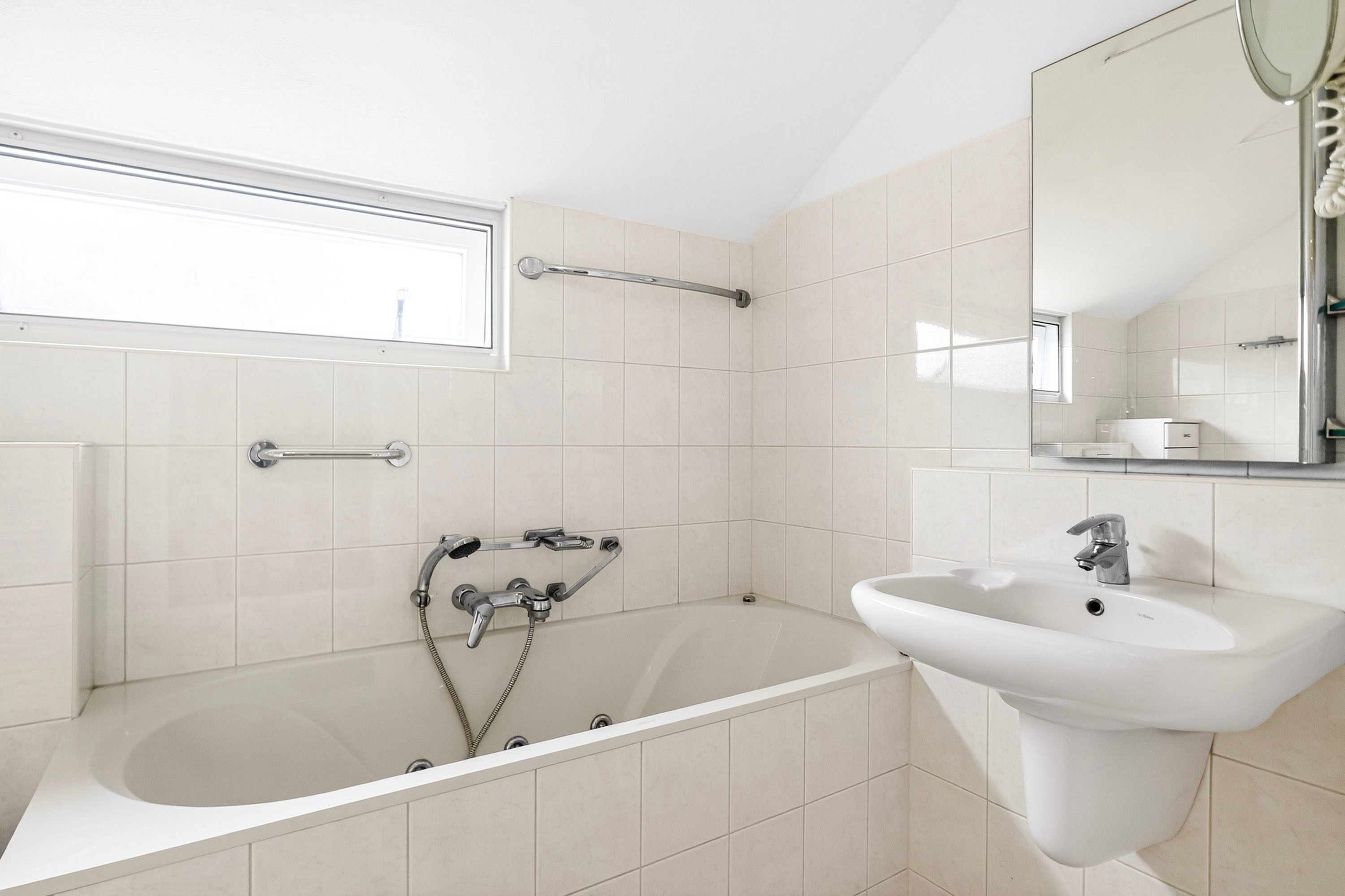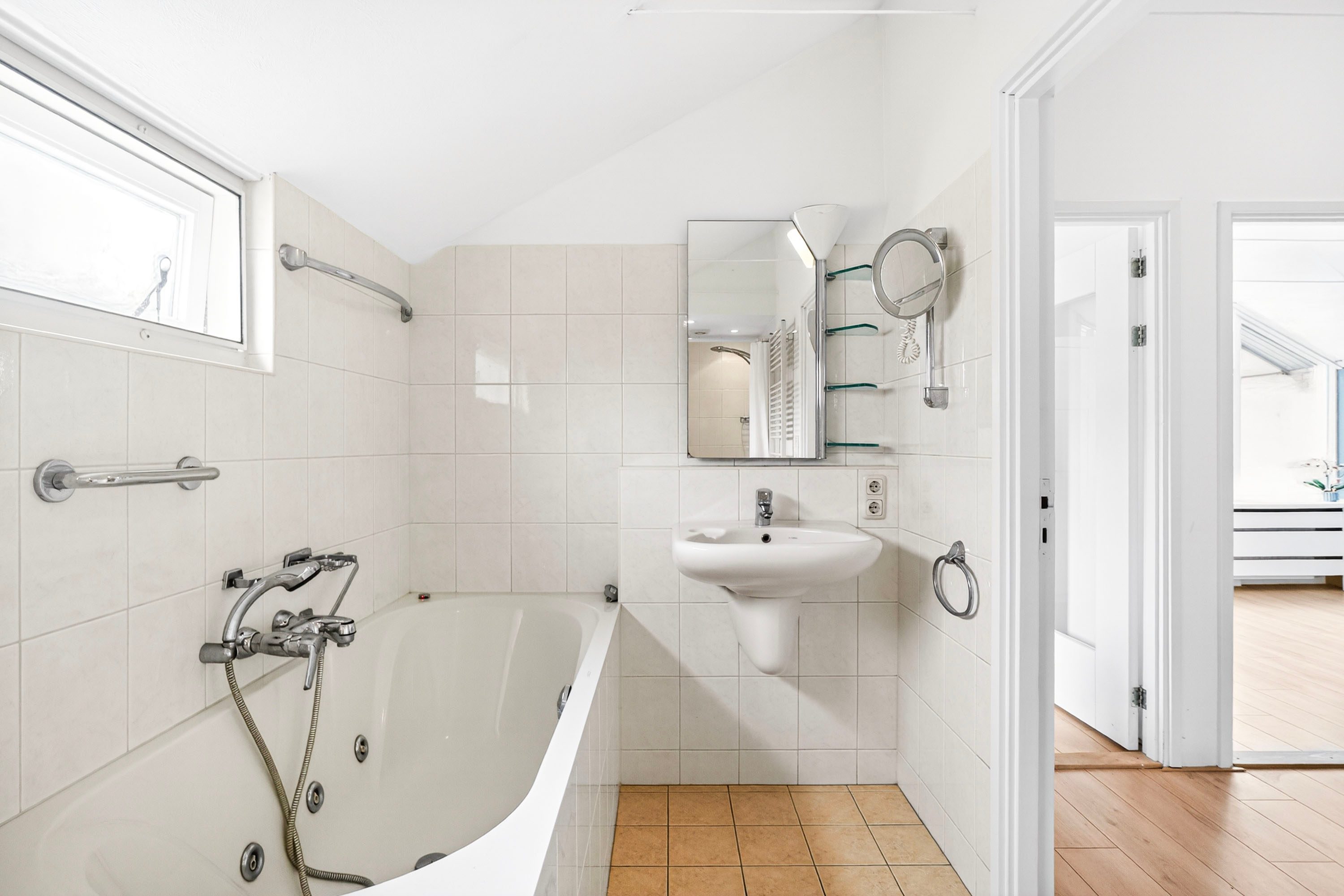 Door middel van de open trap in de woonkamer kom je bij de eerste verdieping van deze sfeervolle woning. De ruimte op de eerste verdieping zal je verrassen. Waar je bij veel woningen in deze categorie slaapkamers moet inleveren, vind je hier maar liefst vier volwaardige slaapkamers van uitstekend formaat. Dit maakt het huis een ideaal familiehuis, maar biedt ook alle flexibiliteit voor een walk-in closet of een rustige thuiswerkplek. De badkamer is comfortabel ingericht en van alle gemakken voorzien met zowel een whirlpool voor ontspanning als een aparte douche in de ochtend.