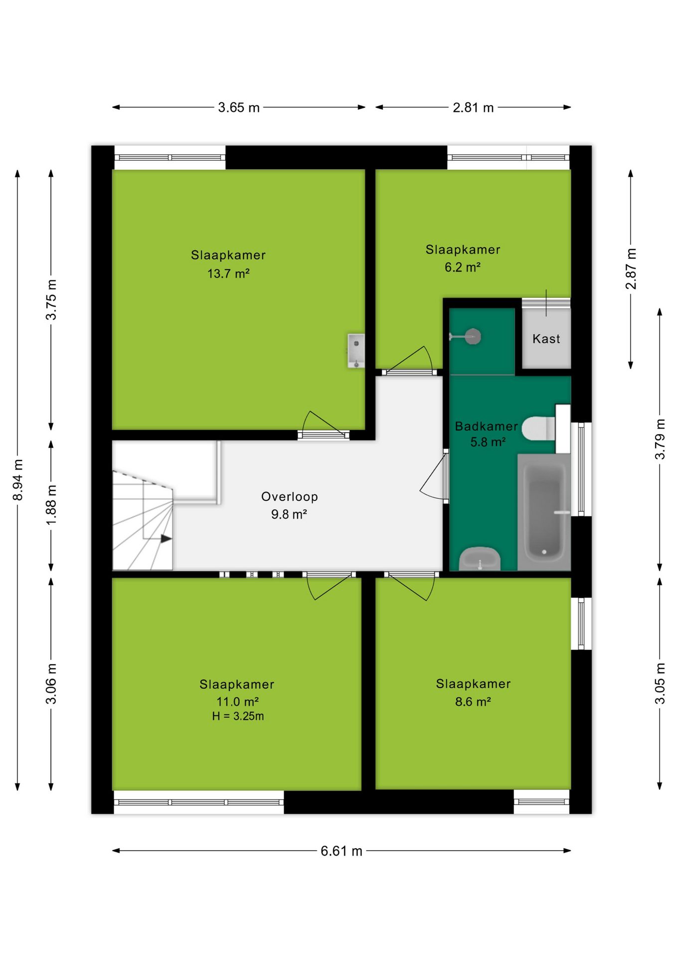- 4 volwaardige slaapkamers op de eerste verdieping