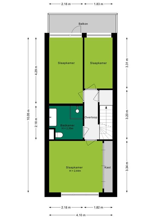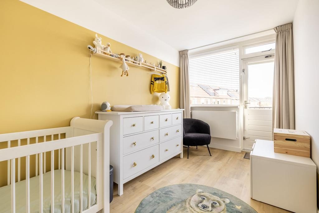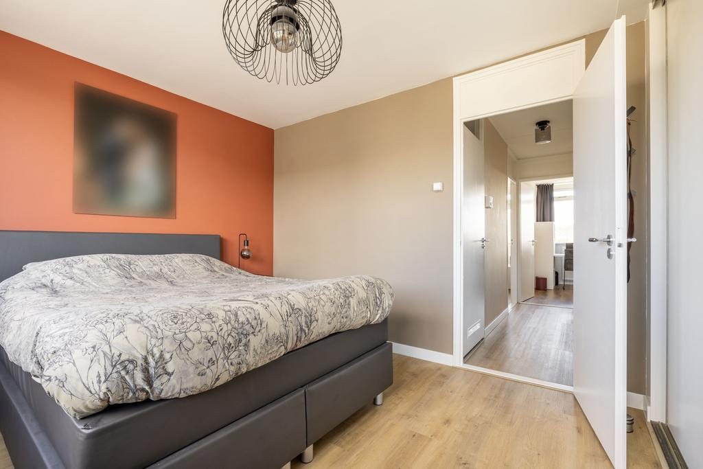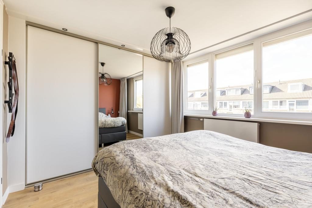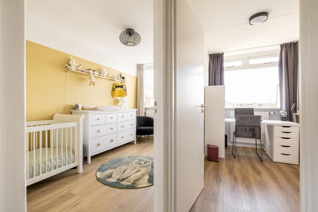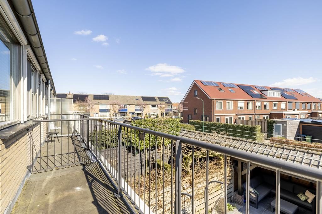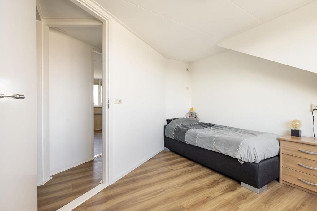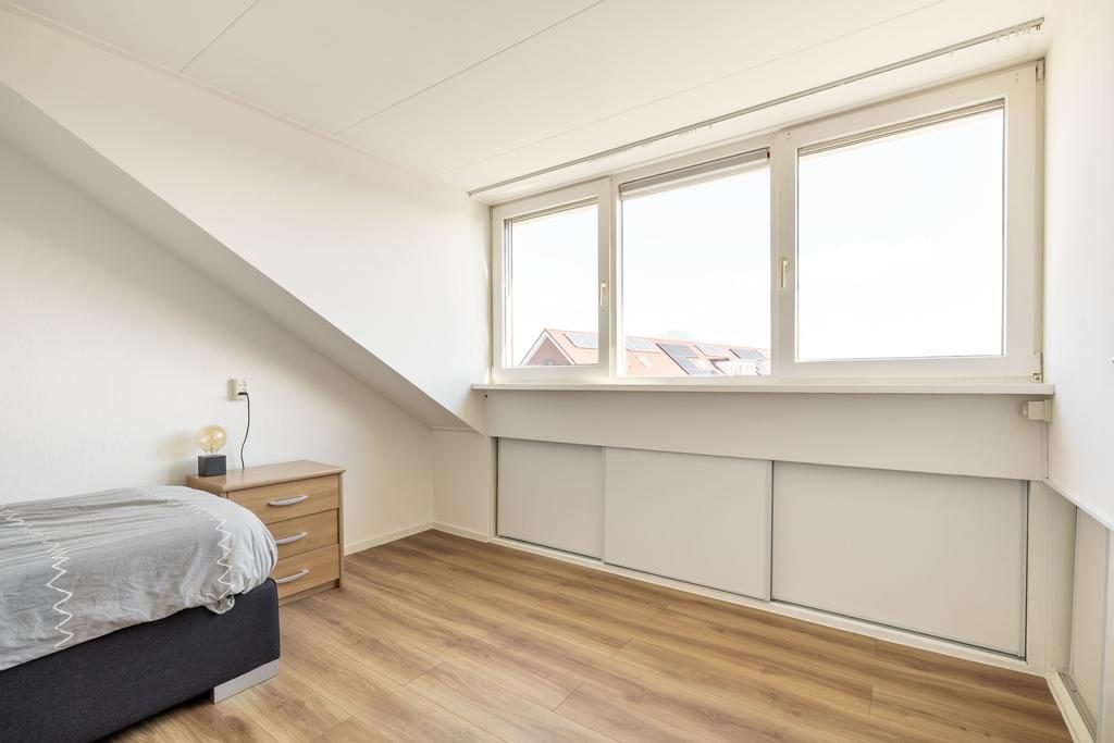Via de vaste trap kom je bij de overloop met trapopgang naar de tweede verdieping, drie slaapkamers en de badkamer. Gelegen aan de voorzijde van de woning bevindt zich de ouderslaapkamer. Bijna 14 m² groot en voorzien van een grote schuifkastenwand. De twee andere slaapkamers zijn gelegen aan de achterzijde van de woning en zijn ruim 9 m² en ruim 6 m². Van de slaapkamer van ruim 9 m² kun je via een loopdeur naar het balkon.