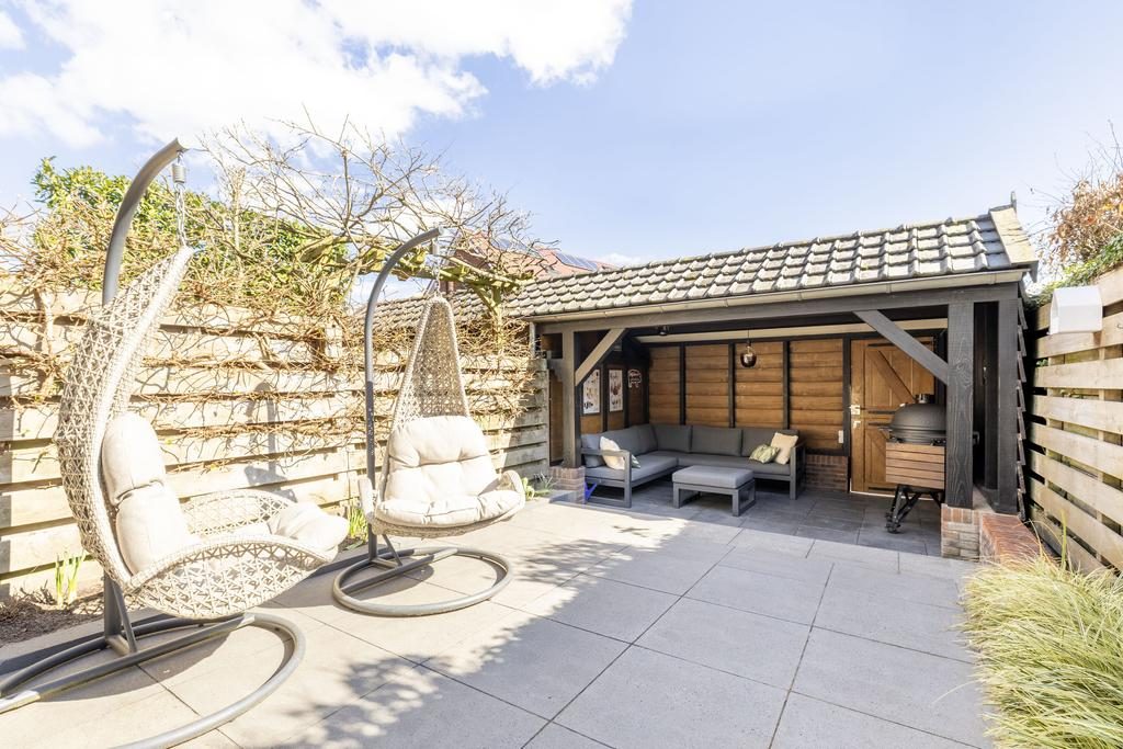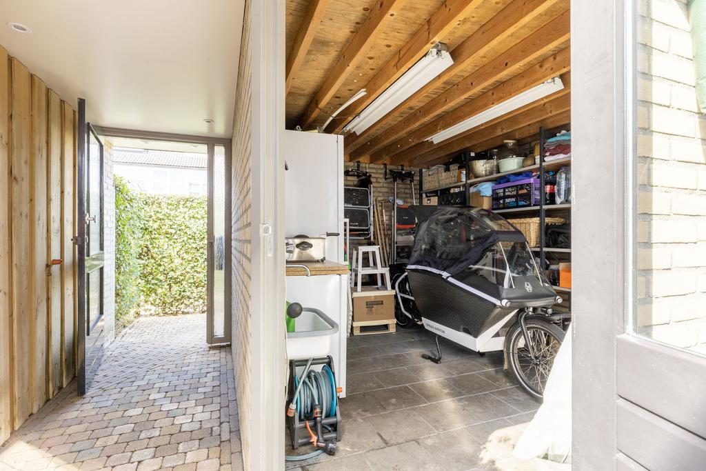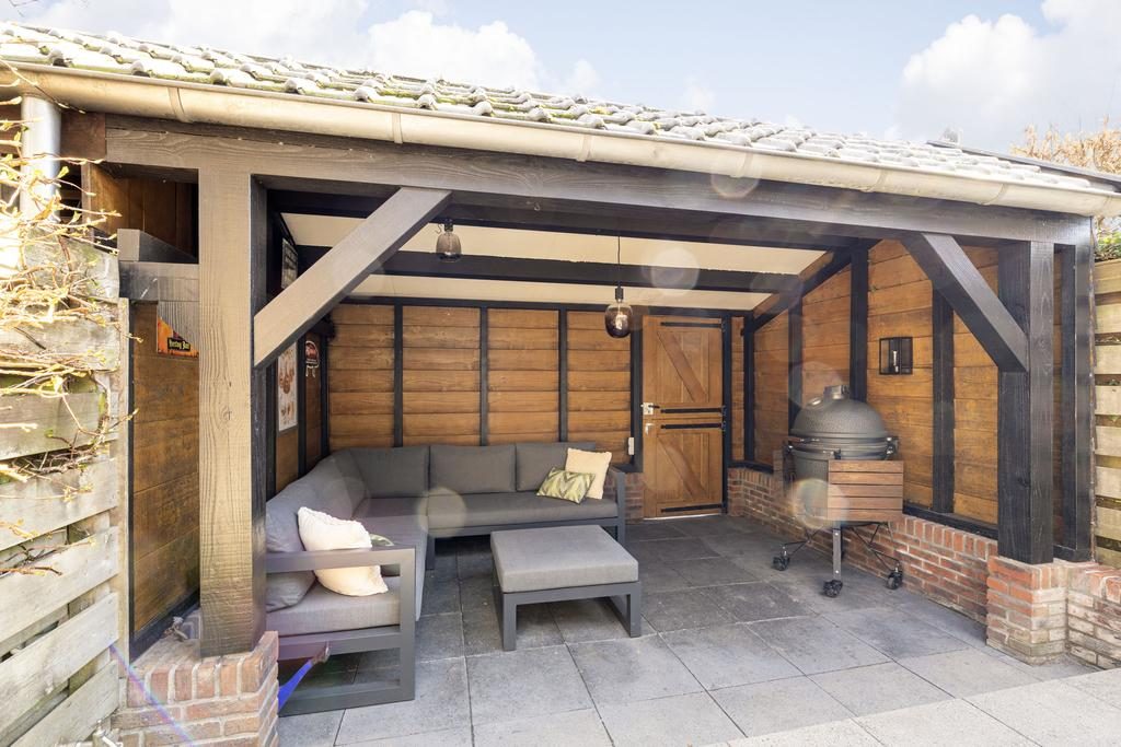 De woning heeft een afgesloten deur naar een patio. Deze is gedeeltelijk overkapt met inbouwspots en geeft toegang naar de stenen berging. De tuin aan de achterzijde is verzorgd aangelegd, heeft een heerlijk terras en een gezellige veranda! Laat de zomer maar beginnen en nodig je vrienden en/of familie snel uit voor een lekkere BBQ.