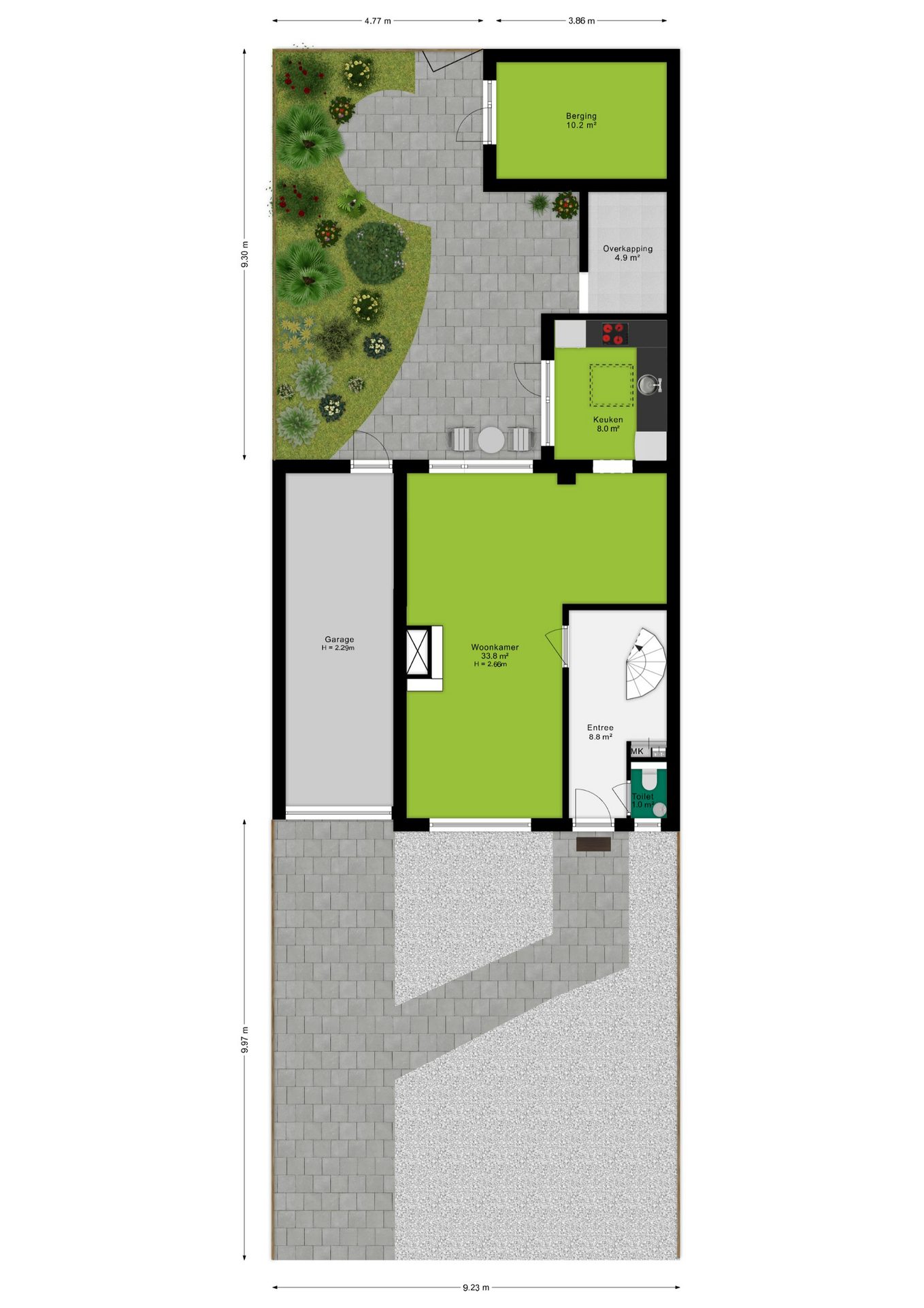 + Garage en parkeerplaats op eigen terrein