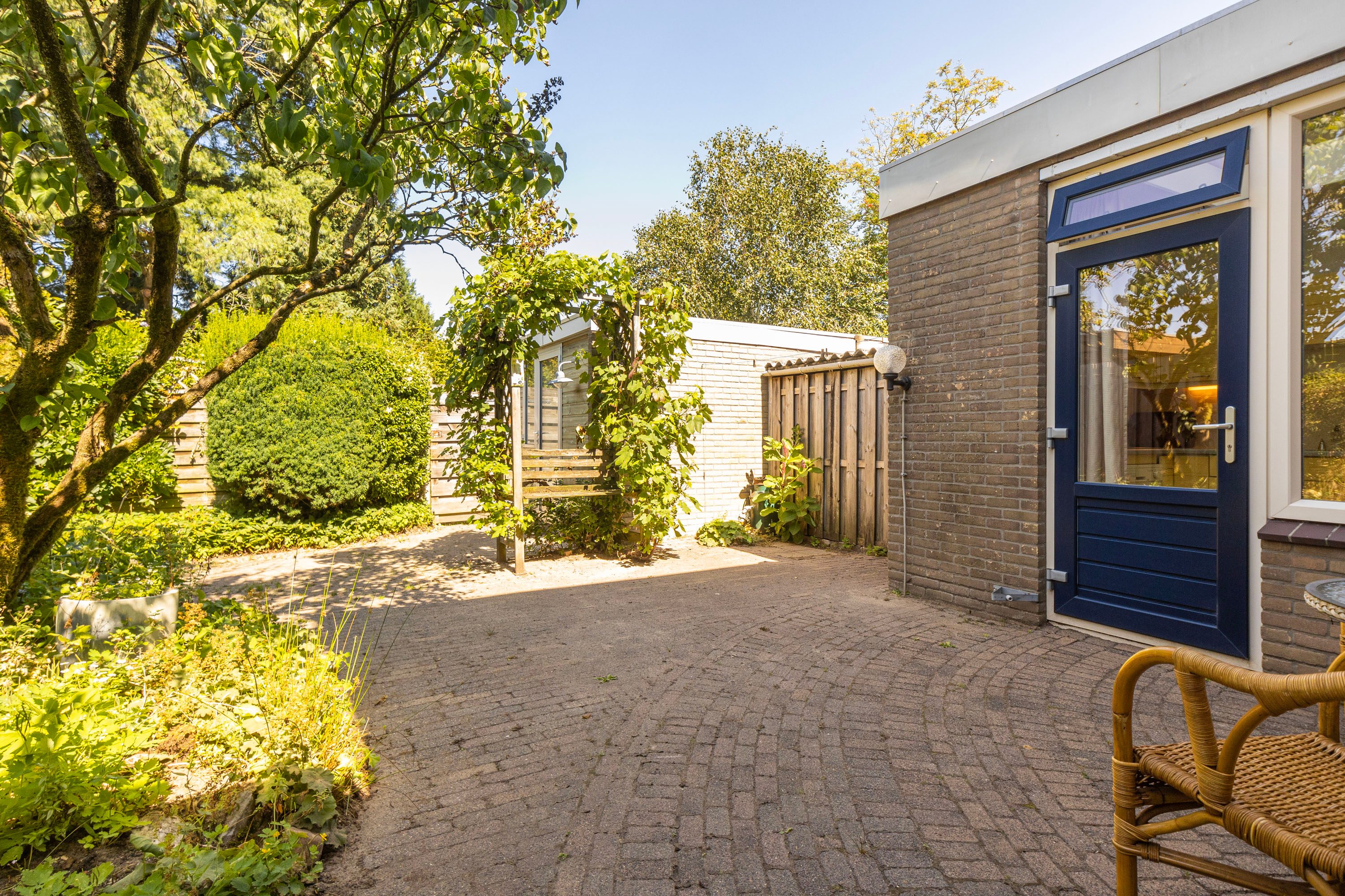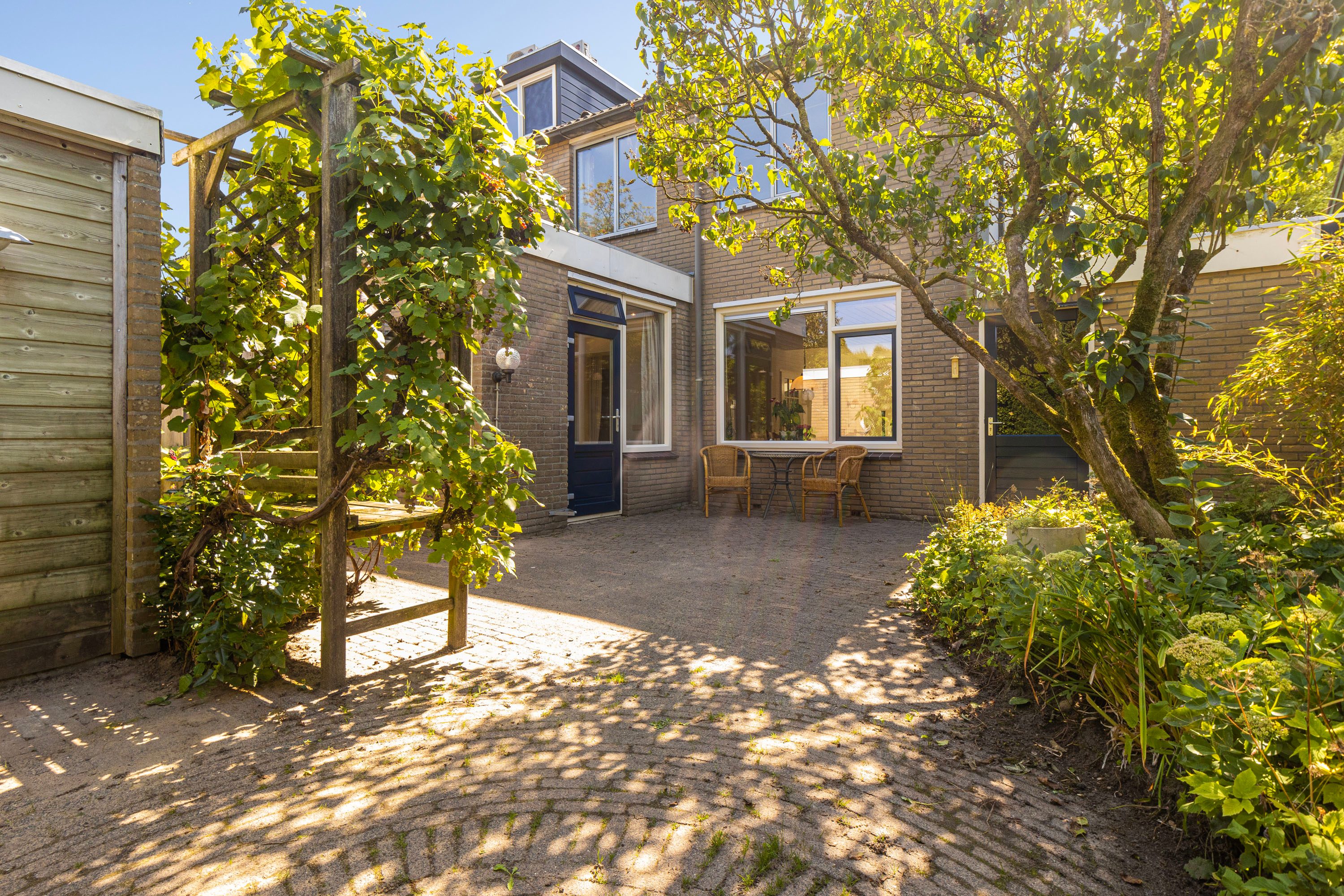De goed onderhouden tuin is gelegen op het noordwesten en beschikt over een handige overkapping en berging. Dankzij de gunstige ligging en de diepte van de tuin kun je hier zowel van zonnige als schaduwrijke plekjes genieten. Tevens is er een achterom aanwezig, wat zorgt voor extra gemak.
