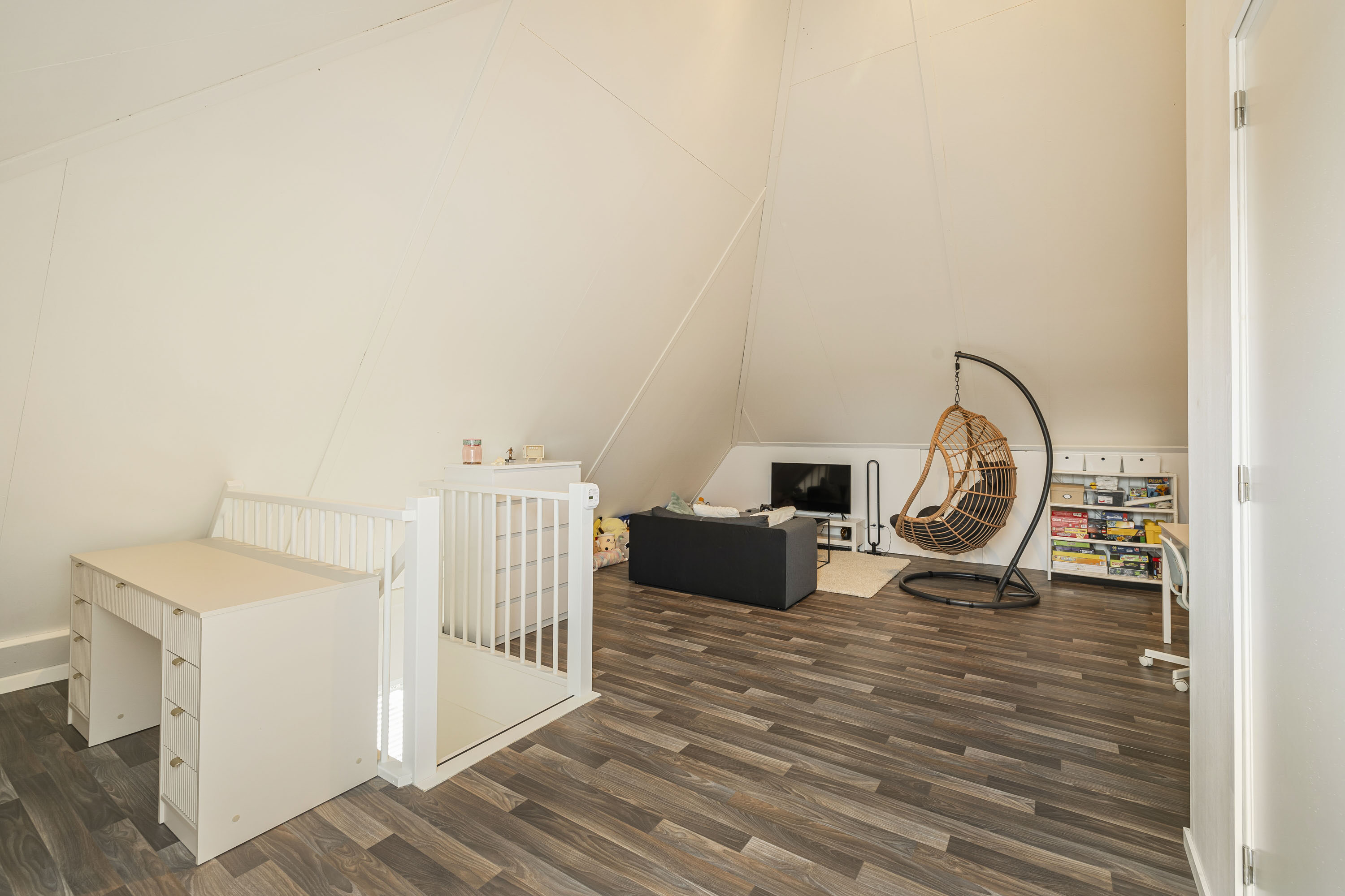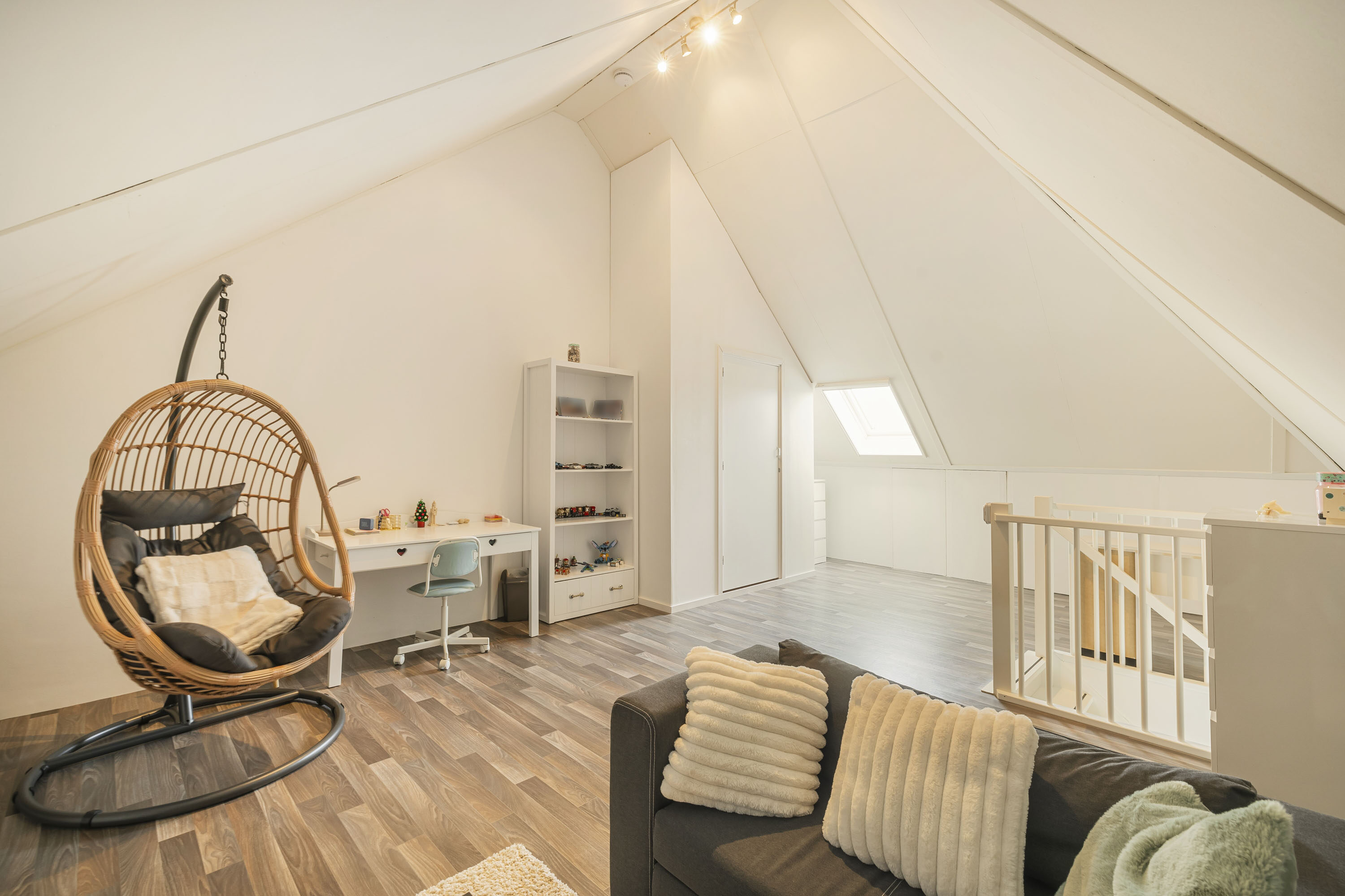 Via de vaste trap bereik je de open zolder van 26,9 m², een veelzijdige ruimte die je volop de gelegenheid biedt om deze naar eigen wens in te richten. Dankzij het hoge plafond en het dakraam voelt deze plek bijzonder licht en luchtig aan, zodat je er makkelijk een extra slaapkamer, sport- of hobbykamer of werkruimte van kunt maken. Kortom, deze zolder vormt een ideale uitbreiding van de bestaande woonruimte, waar alle mogelijkheden openliggen om aan jouw persoonlijke wensen en behoeften te voldoen.