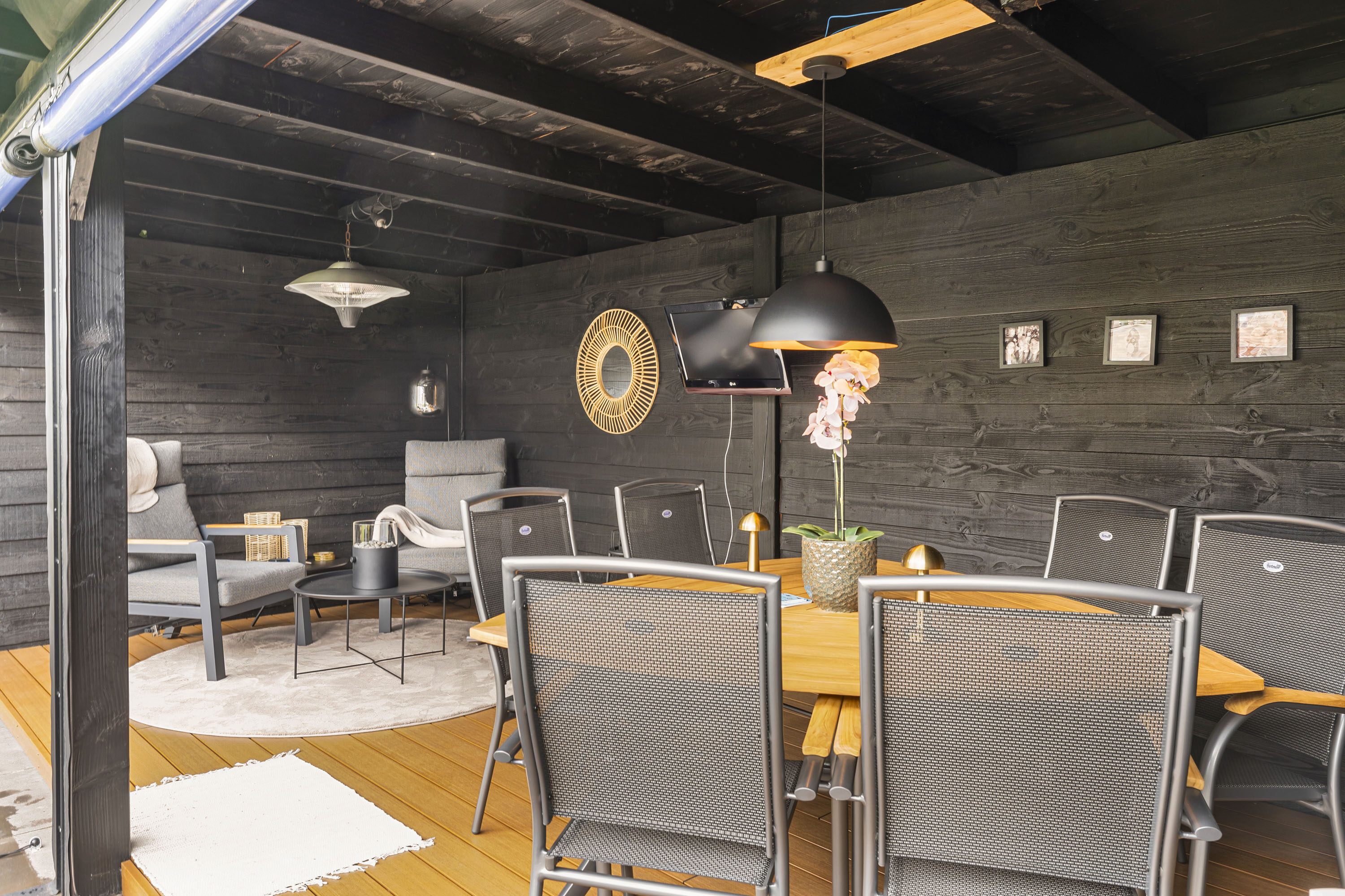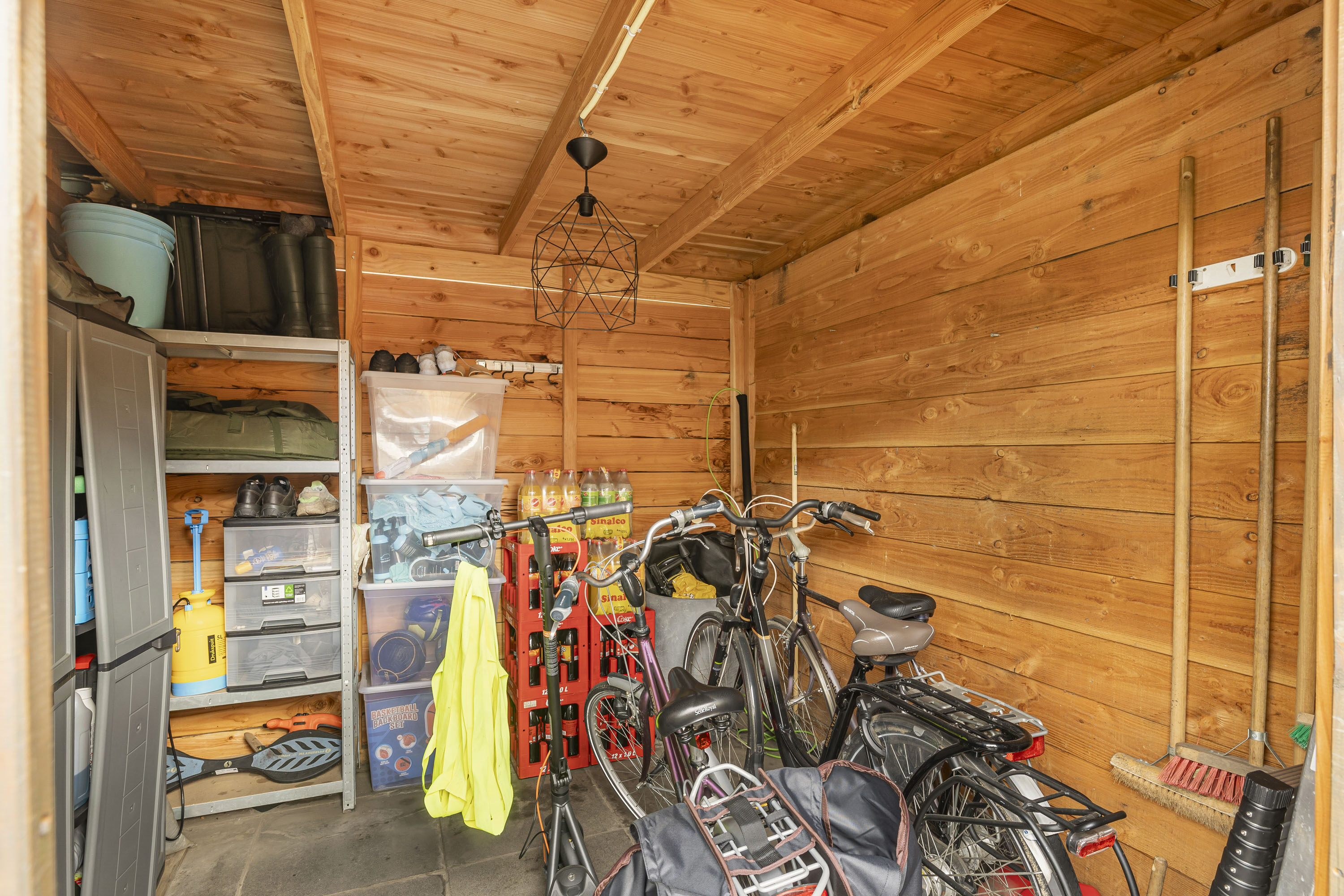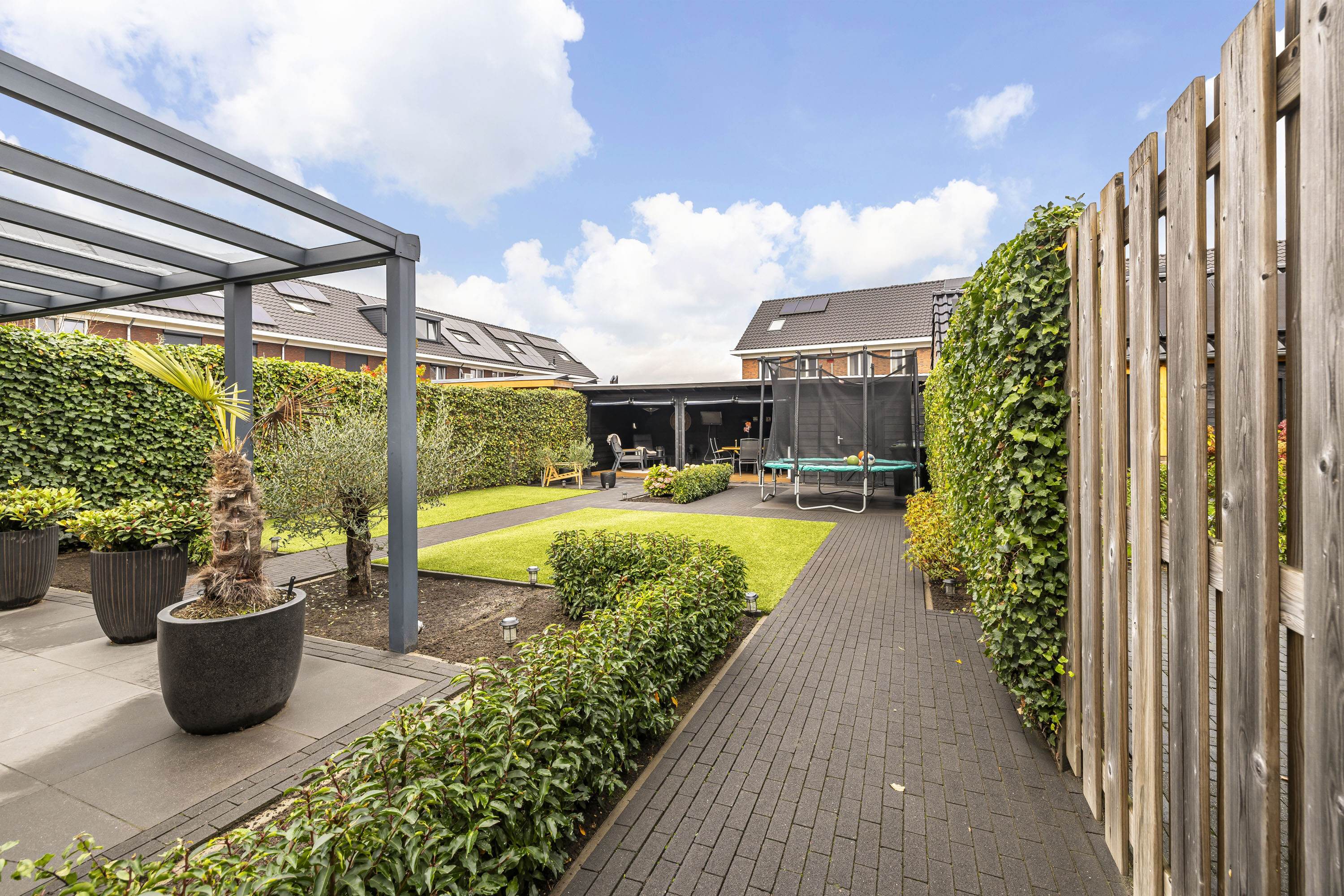 De ruime tuin, gelegen op het noordwesten, beschikt over twee royale overkappingen van 22,7 m² en 17,4 m², ideaal om gezellige zithoeken in te richten. Daarnaast is er voldoende ruimte voor een speelhoek voor de kinderen en vind je een berging van 8,5 m², perfect voor het opbergen van gereedschap en fietsen.
