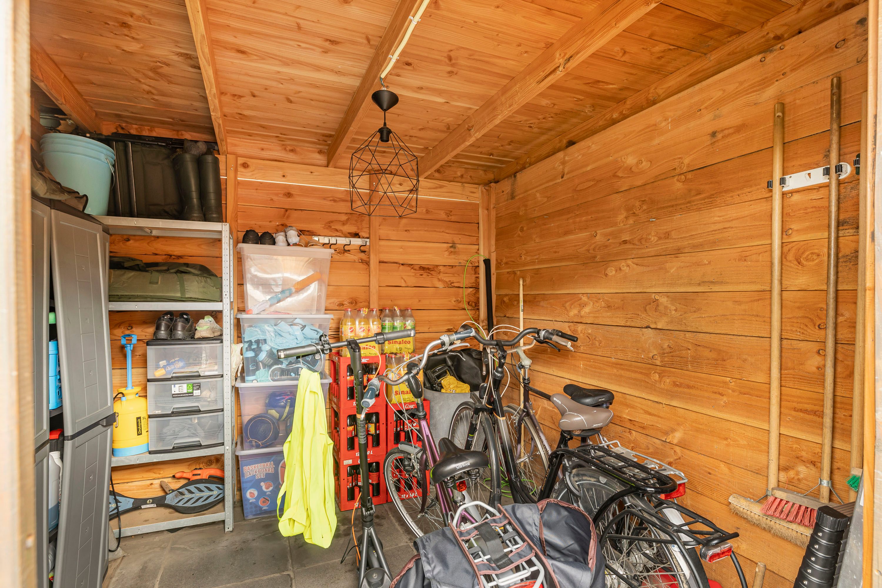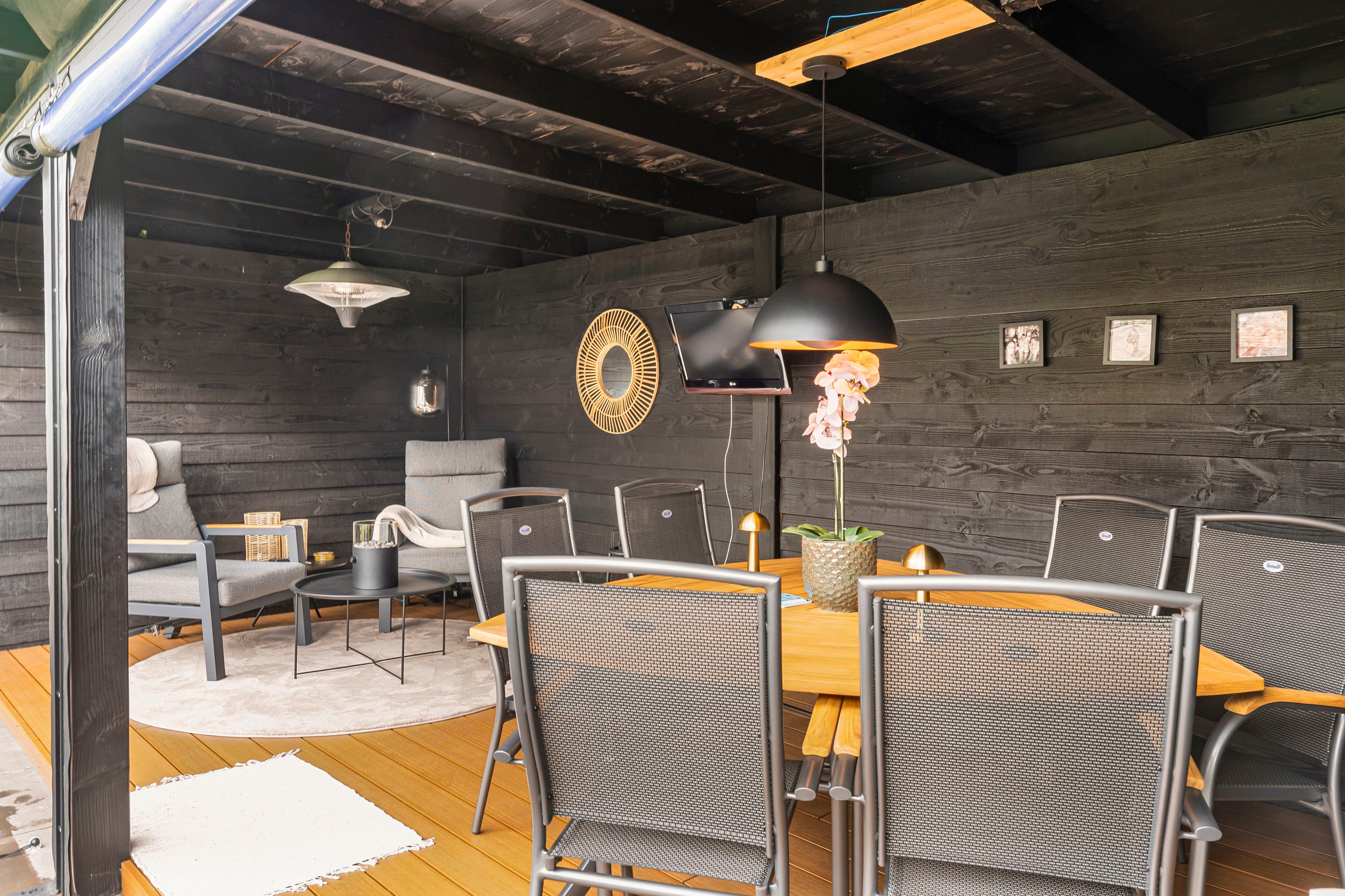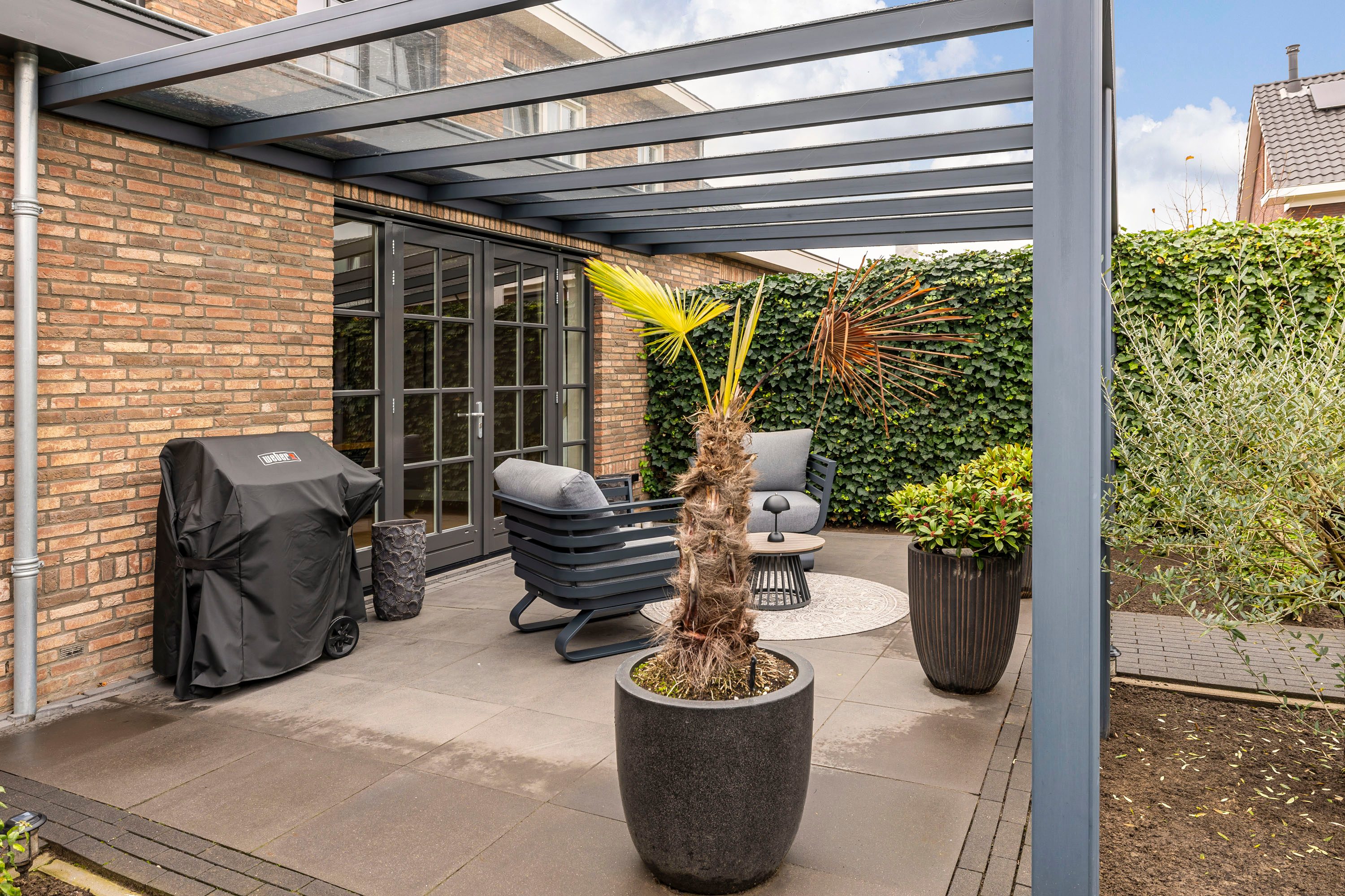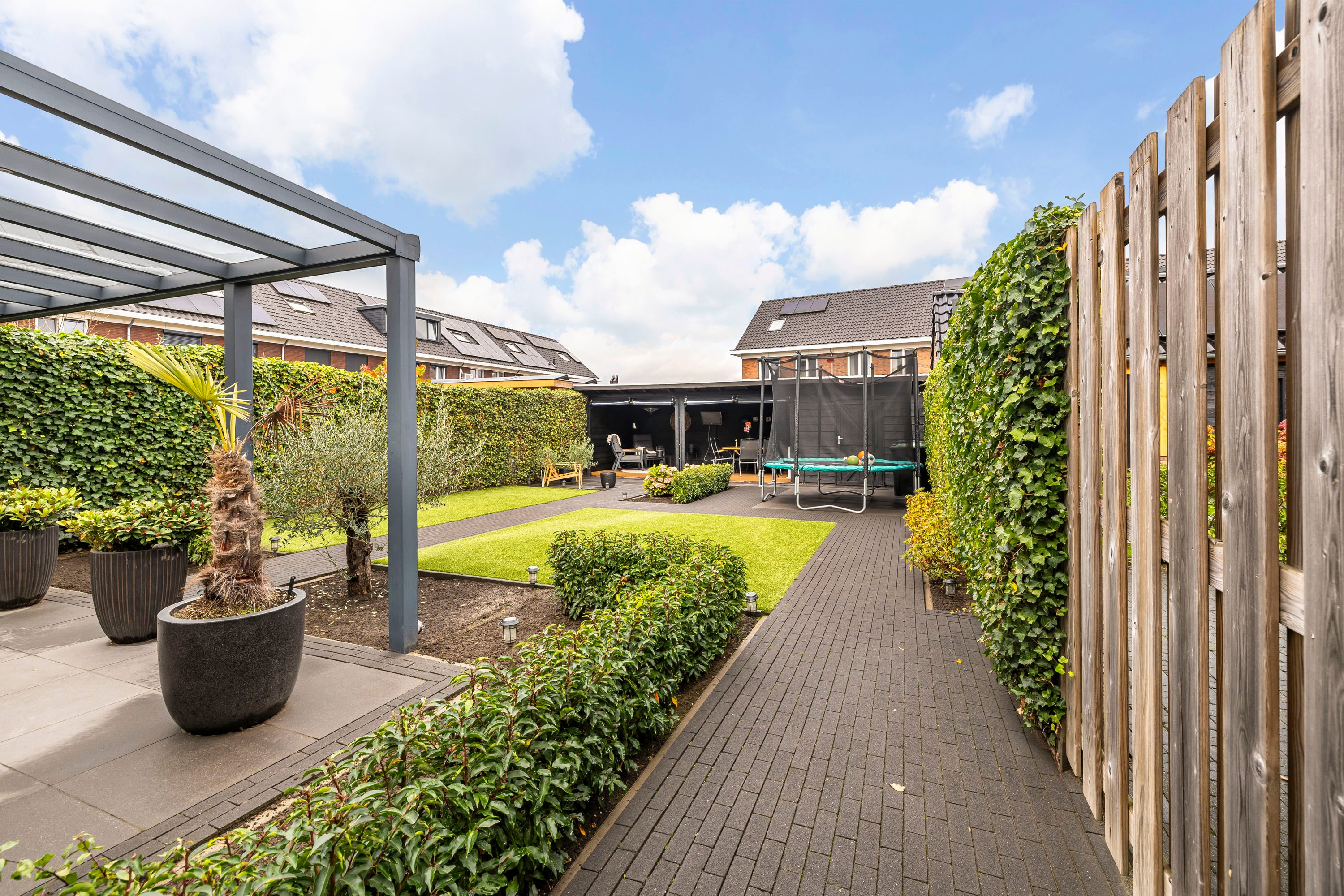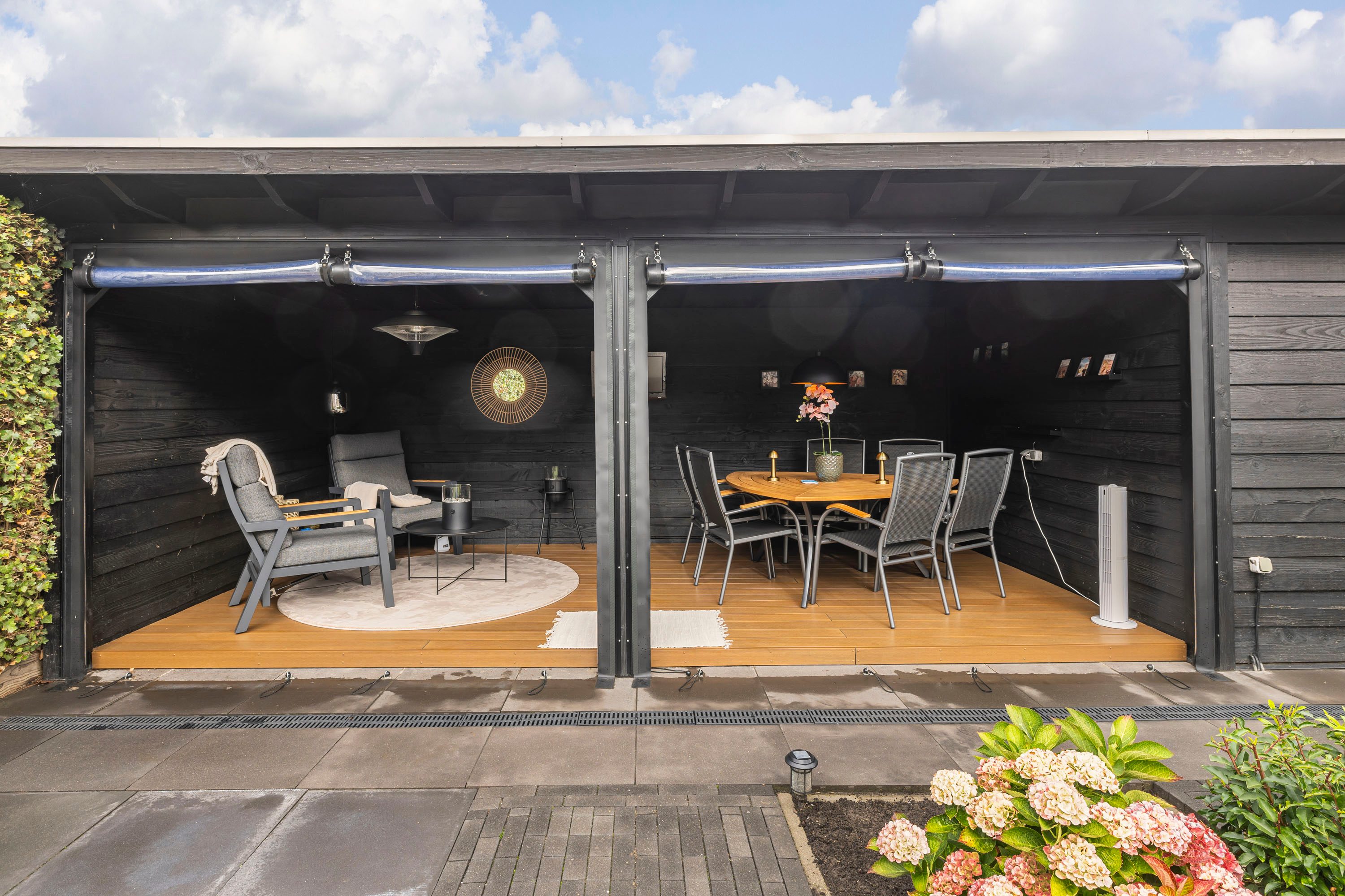 De ruime tuin, gelegen op het noordwesten, beschikt over twee royale overkappingen van 22,7 m² en 17,4 m², ideaal om gezellige zithoeken in te richten. Daarnaast is er voldoende ruimte voor een speelhoek voor de kinderen en vind je een berging van 8,5 m², perfect voor het opbergen van gereedschap en fietsen.