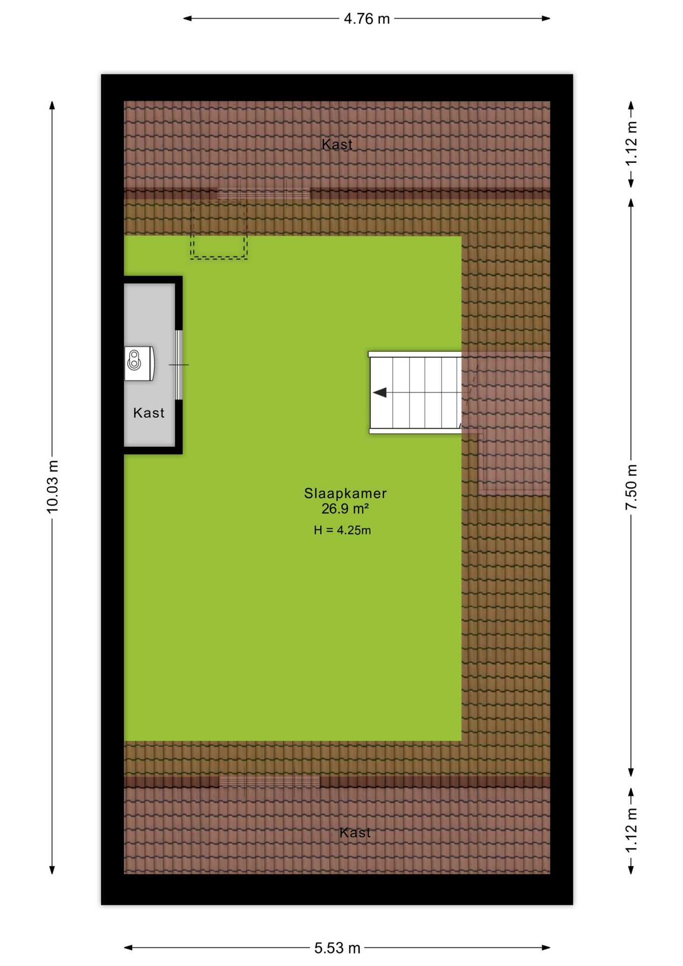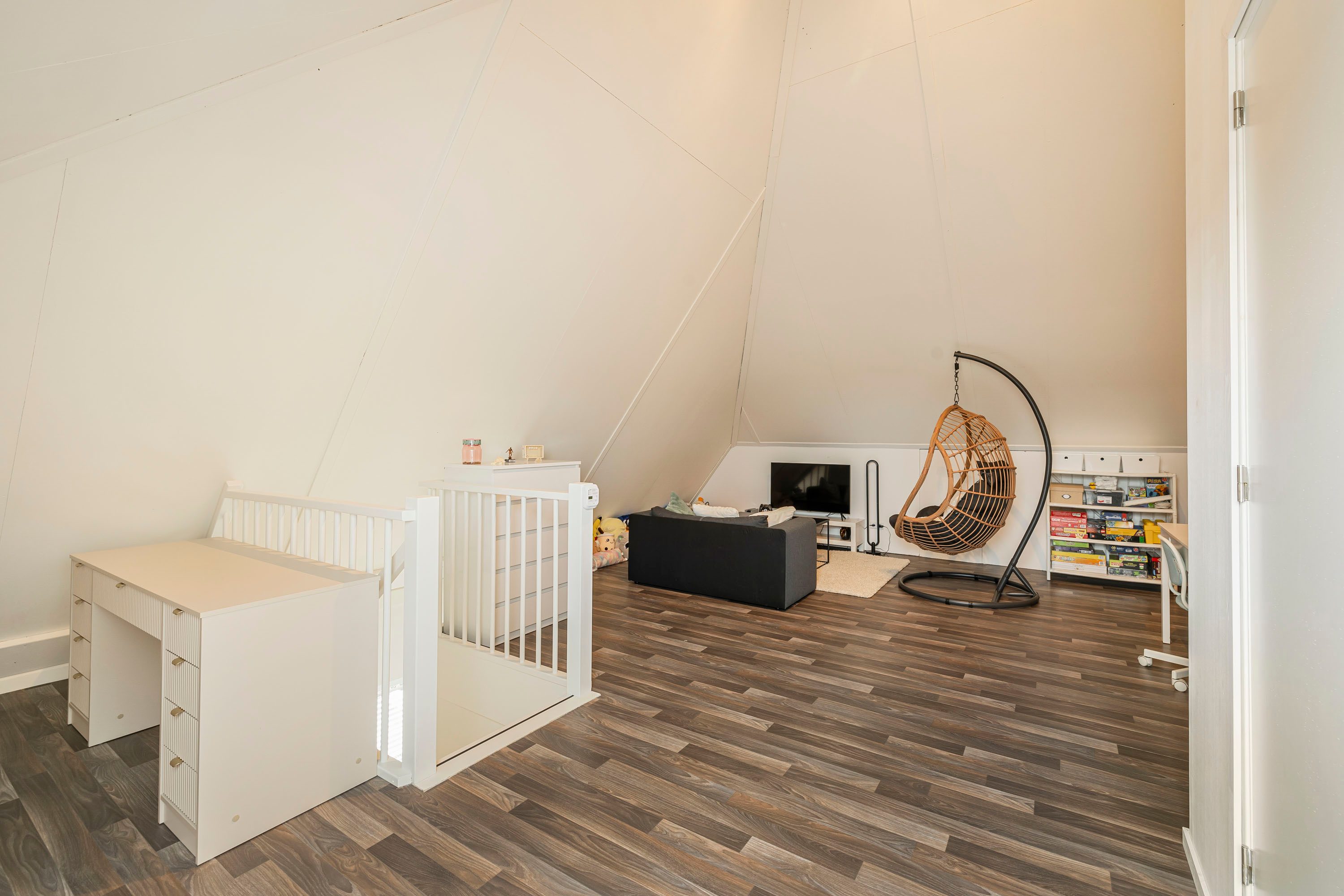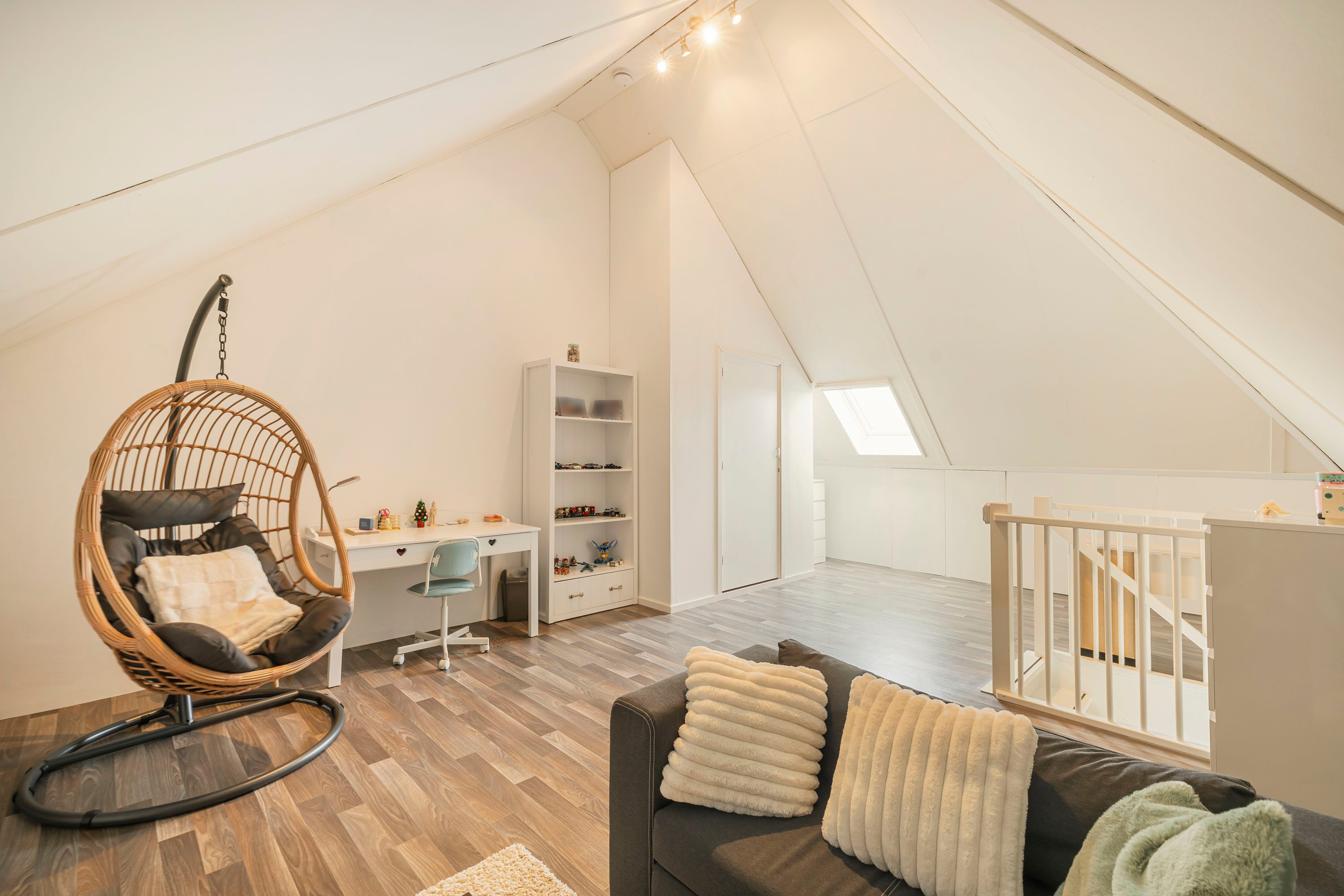 Via de vaste trap bereik je de open zolder van 26,9 m², een veelzijdige ruimte die je volop de gelegenheid biedt om deze naar eigen wens in te richten. Dankzij het hoge plafond en het dakraam voelt deze plek bijzonder licht en luchtig aan, zodat je er makkelijk een extra slaapkamer, sport- of hobbykamer of werkruimte van kunt maken. Kortom, deze zolder vormt een ideale uitbreiding van de bestaande woonruimte, waar alle mogelijkheden openliggen om aan jouw persoonlijke wensen en behoeften te voldoen.