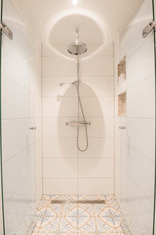 Op de overloop bevindt zich de cv-installatie met de zonneboiler en er zijn nog twee ruime slaapkamers die extra bergruimte bieden achter de schuine wanden.