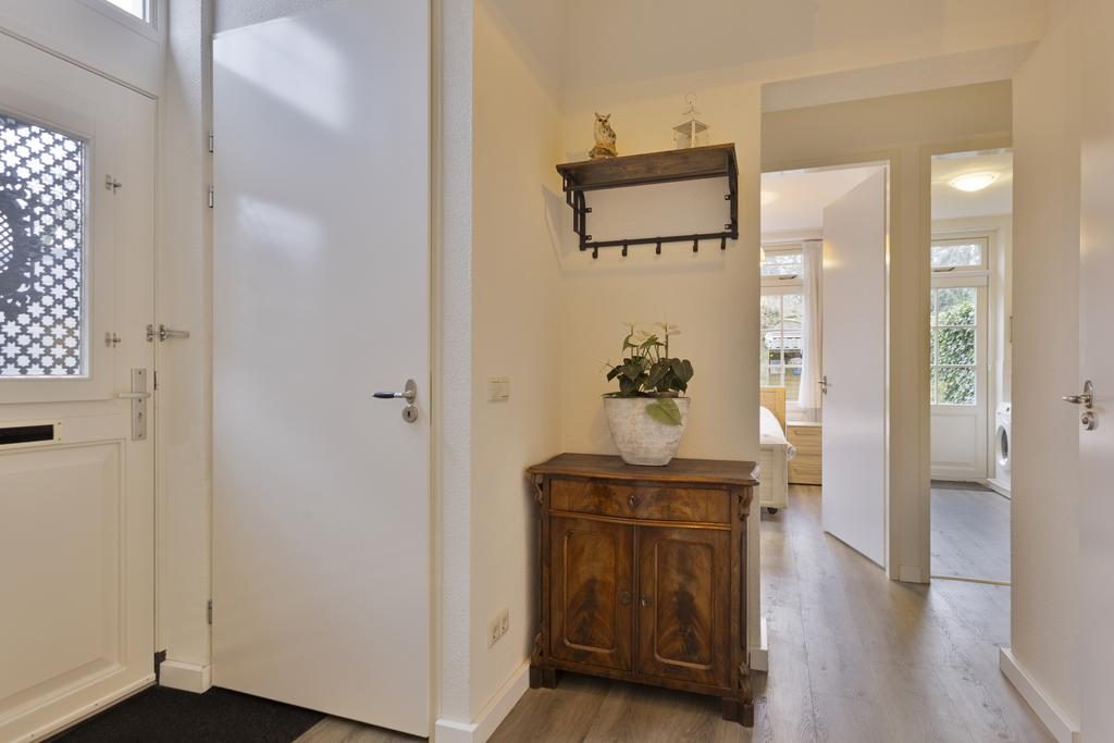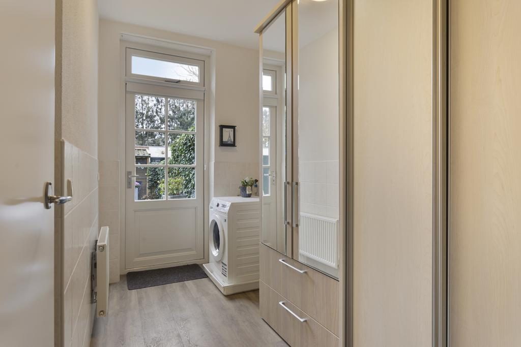 Deze praktische ruimte, eveneens voorzien van een kastenwand, biedt een opstelplaats voor de wasmachine en kan gemakkelijk worden omgevormd tot een extra (slaap)kamer. Vanuit de bijkeuken heb je directe toegang naar de tuin.