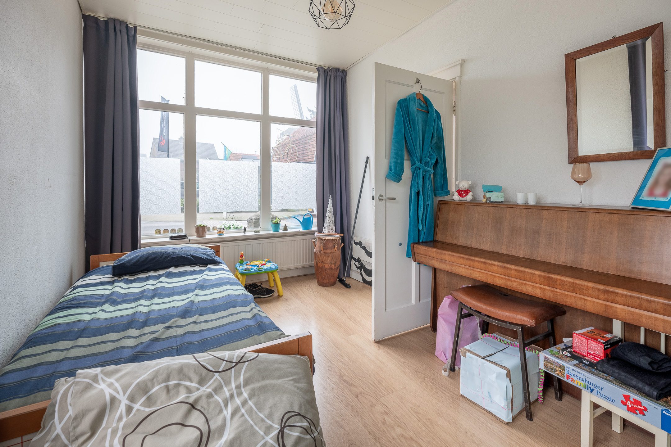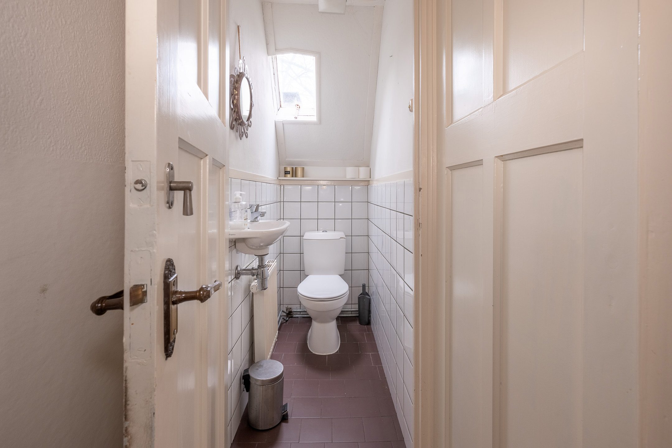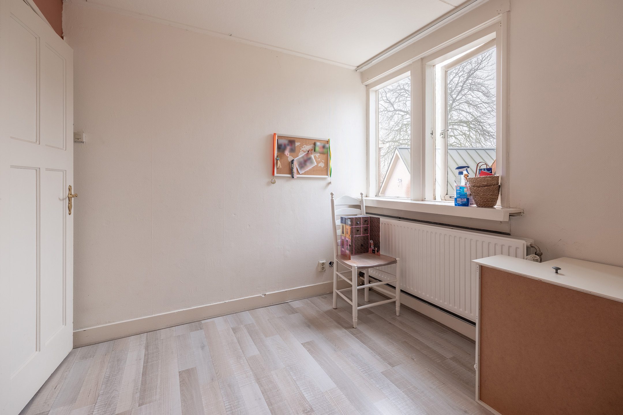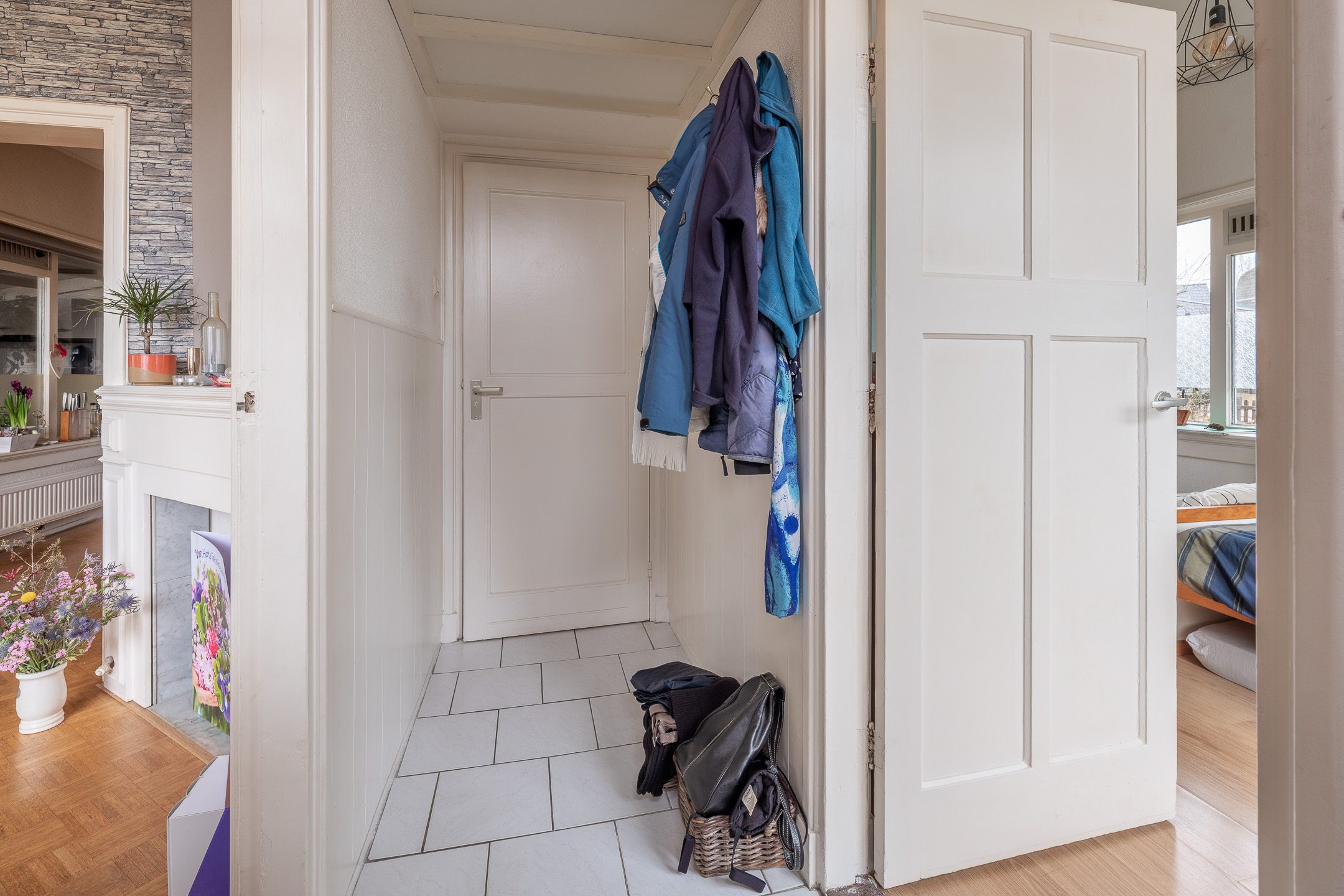 De verdieping is te bereiken via een eigen voordeur aan de linkerzijde van de woning.