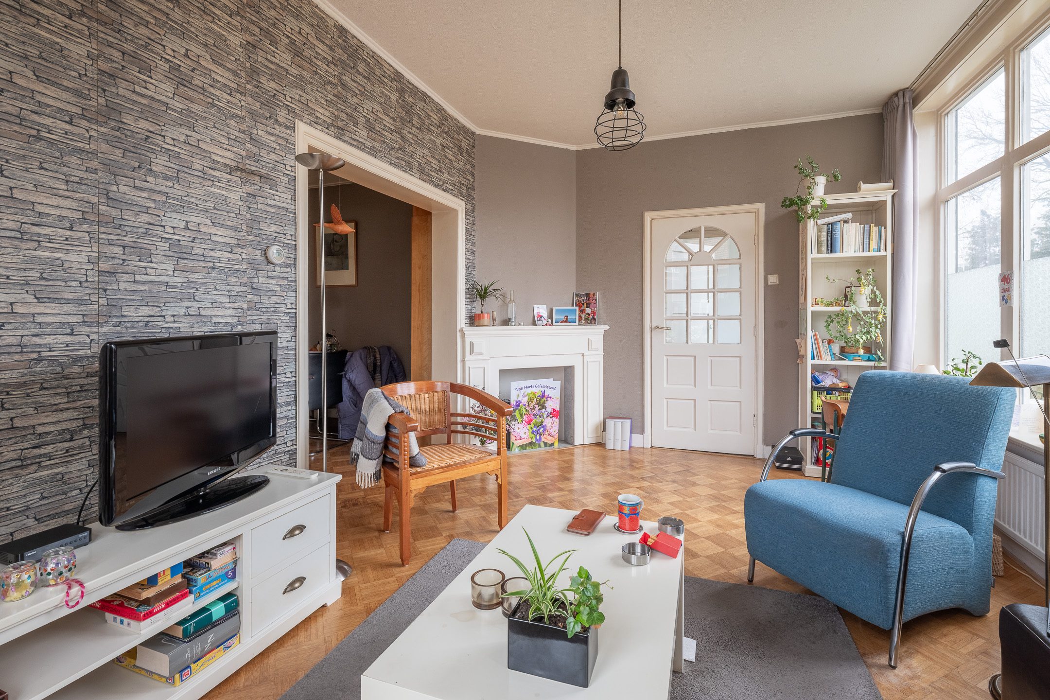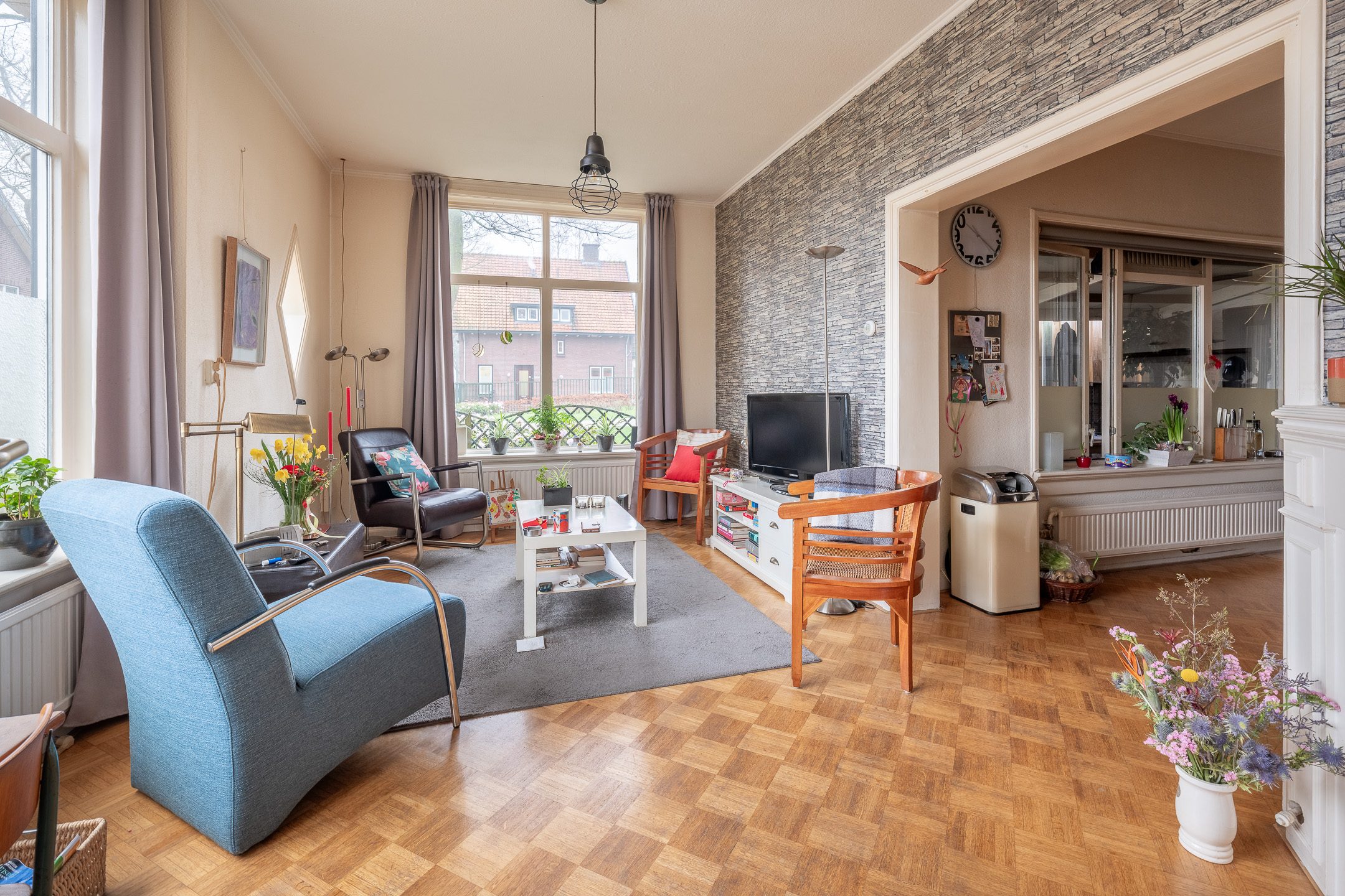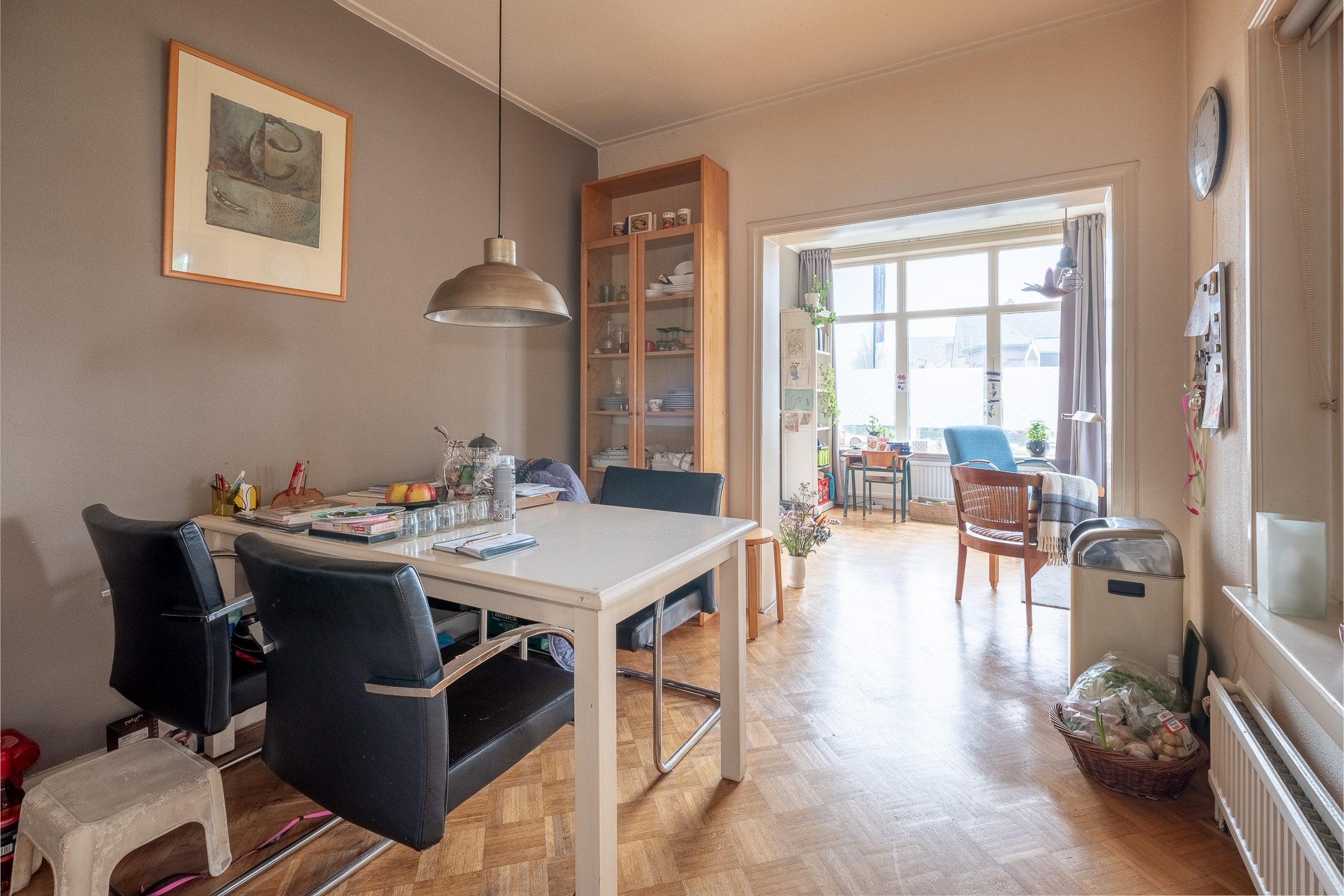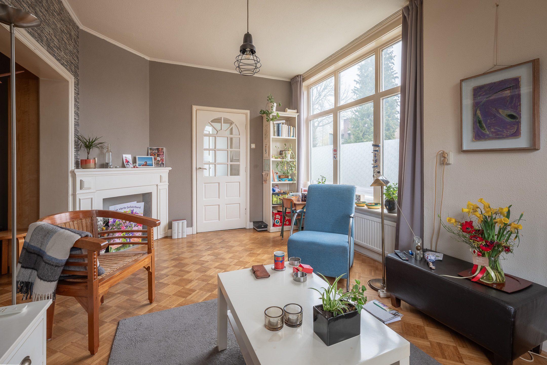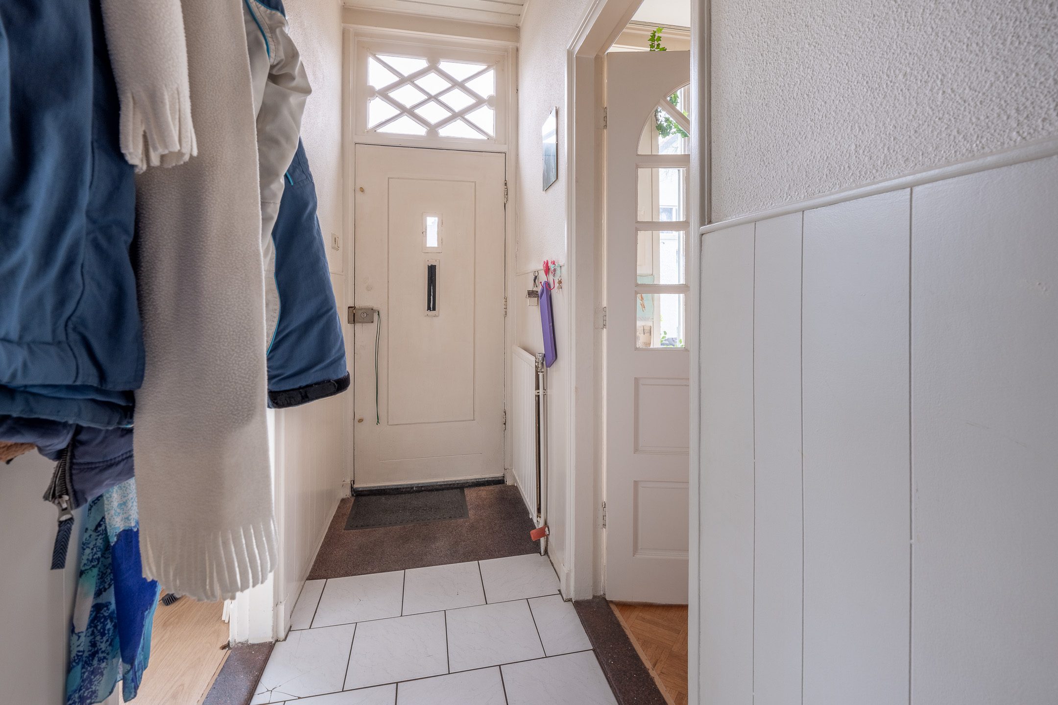 De verdieping is te bereiken via een eigen voordeur aan de linkerzijde van de woning.
