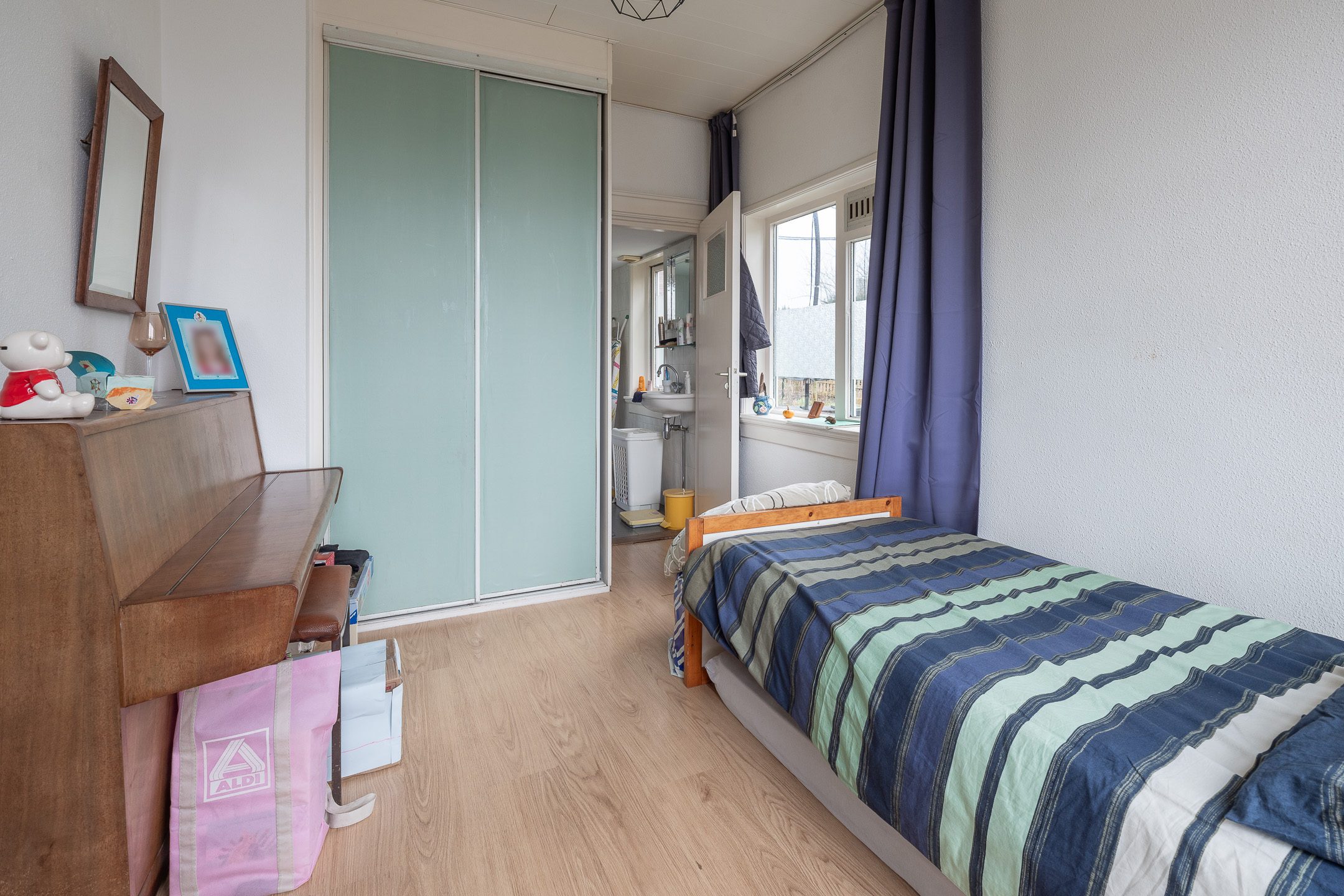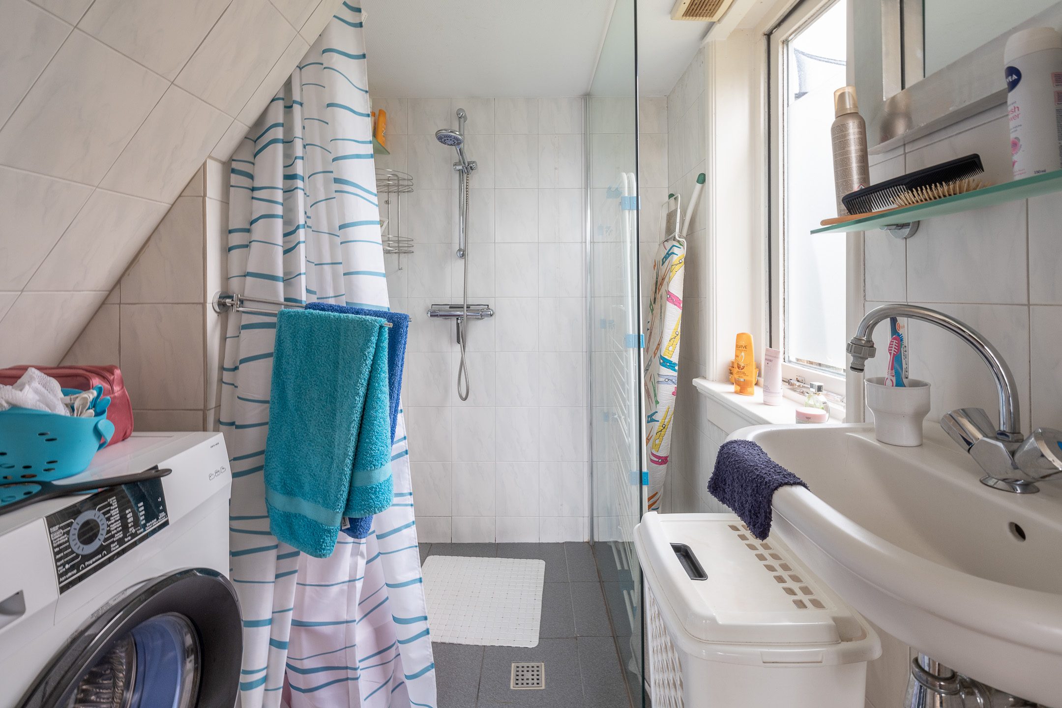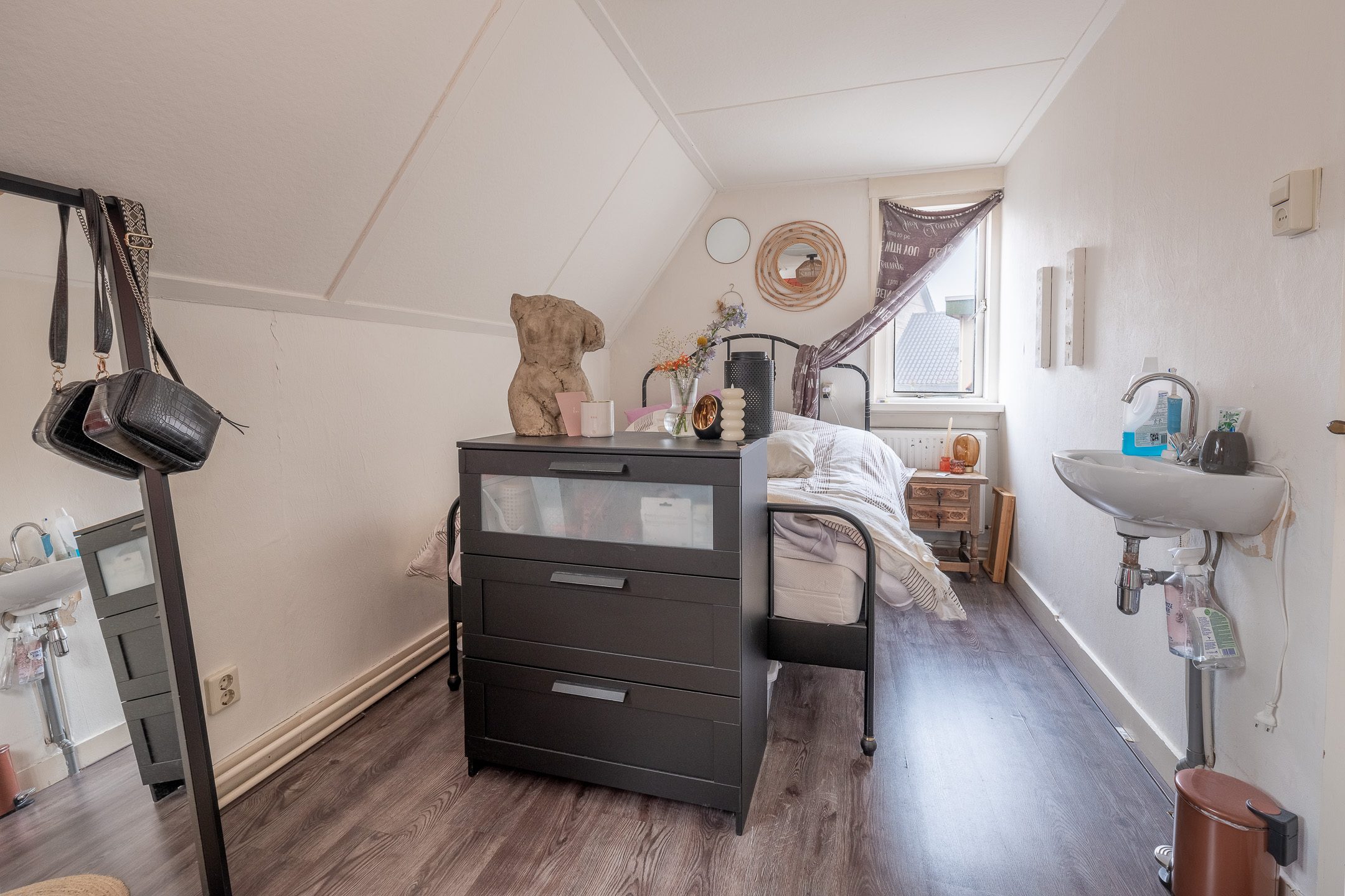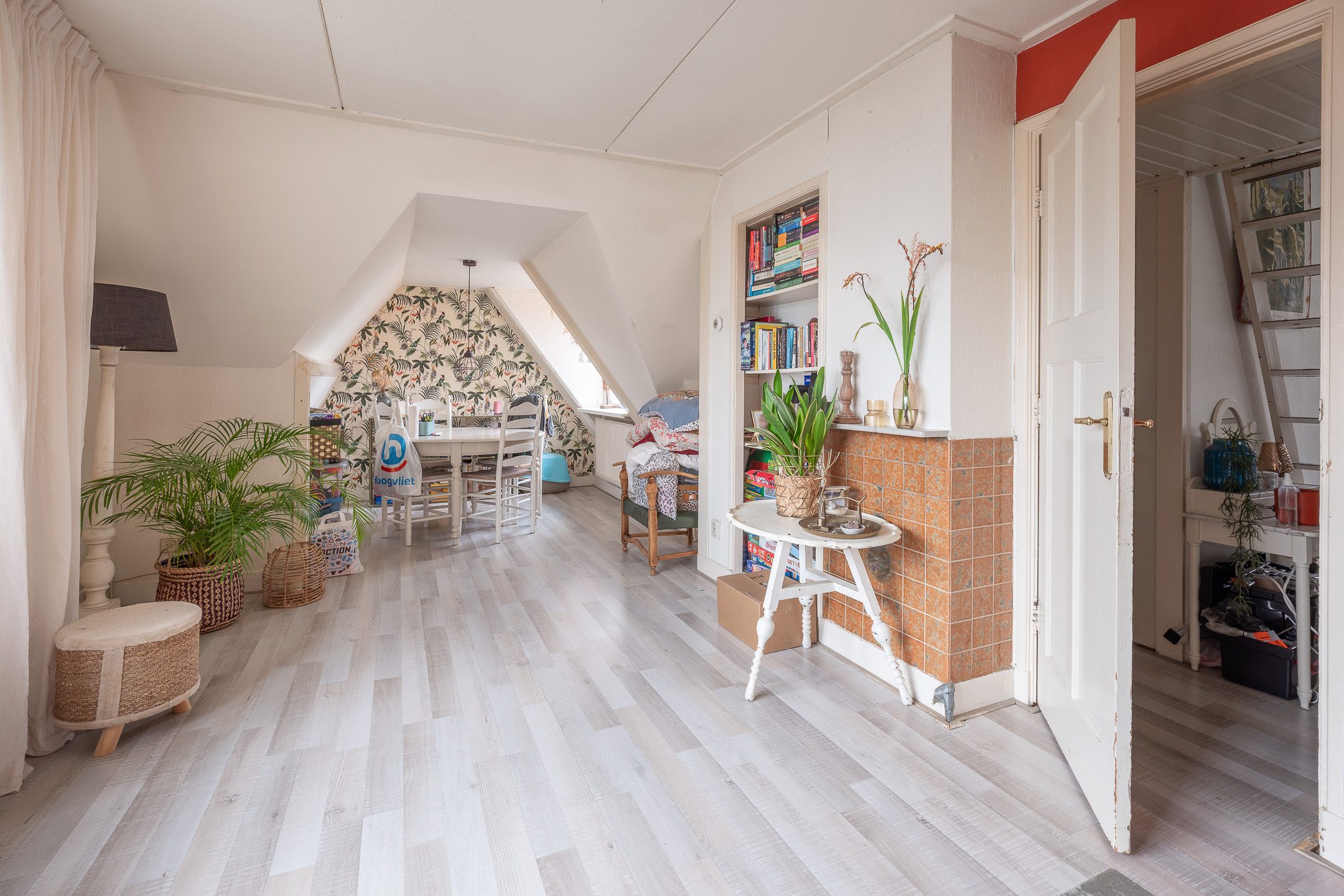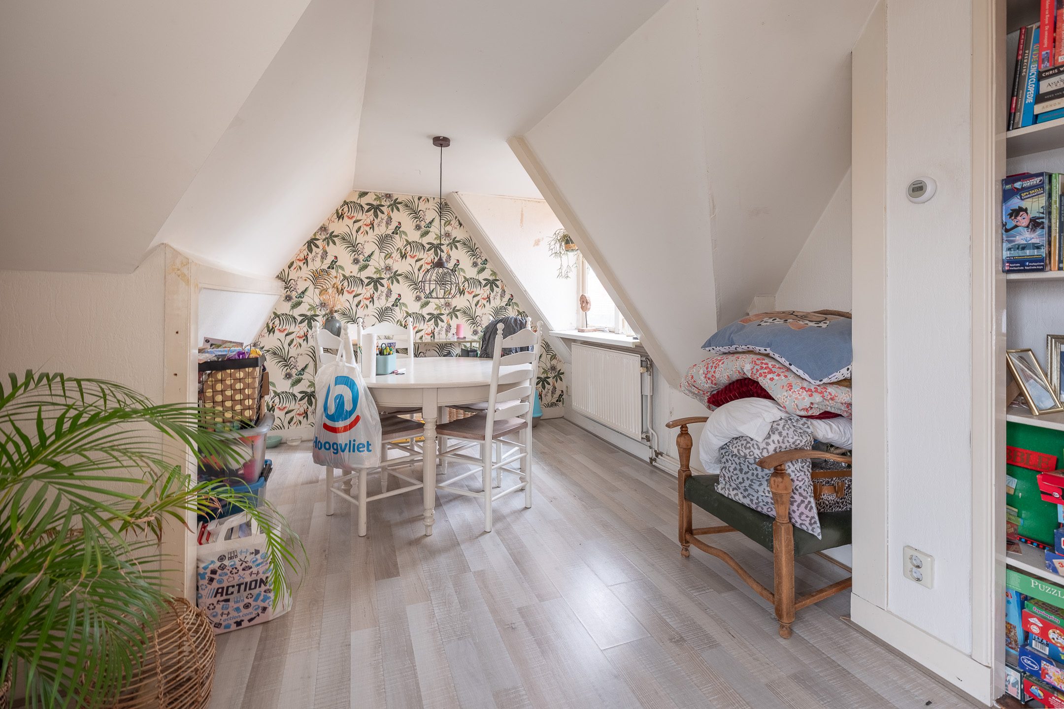 Op de zolder bevindt zich een slaapkamer met een dakraam en genoeg bergruimte.