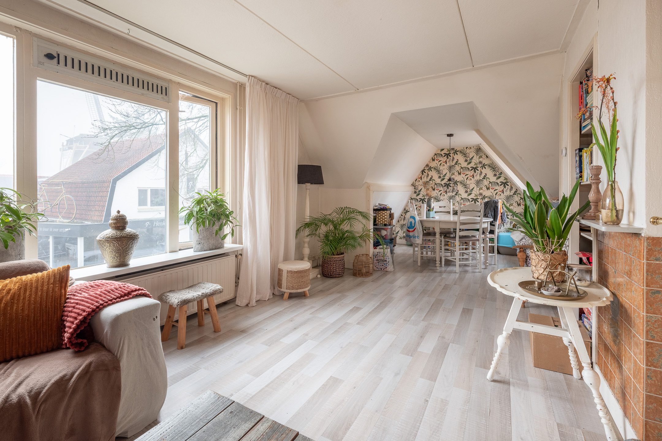 Op de eerste verdieping vind je twee slaapkamers en een woonkamer. Beide slaapkamers hebben een goede maatvoering. In één van de slaapkamers bevindt zich een wastafel en een dakkapel. De woonkamer, gelegen aan de voorzijde, is een royale ruimte met genoeg plek voor zowel een zit- als eethoek. De kamer is voorzien van een laminaatvloer en een dakkapel. Verder vind je op de overloop een toiletruimte, een vaste kast en een trap die je naar de zolder brengt.