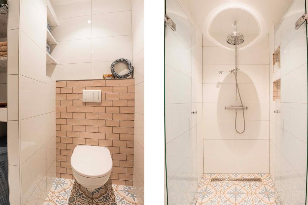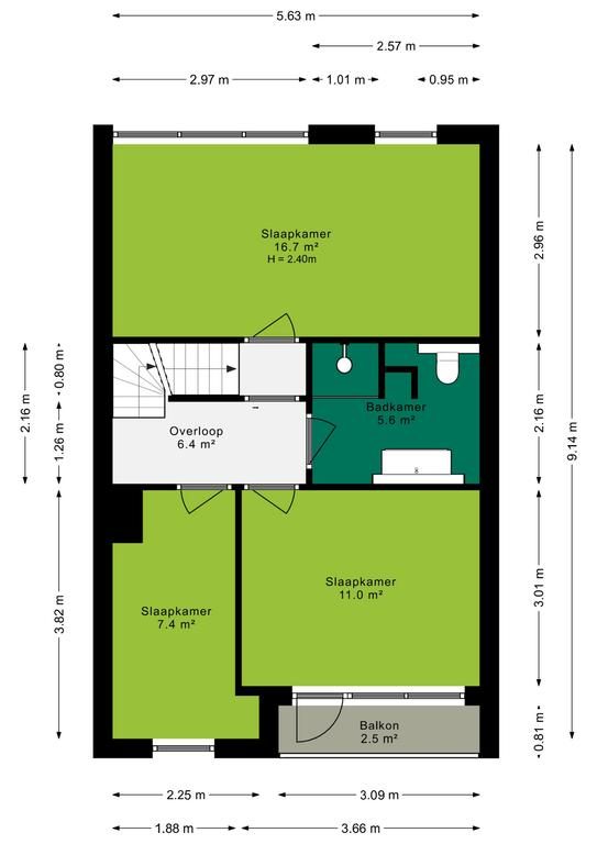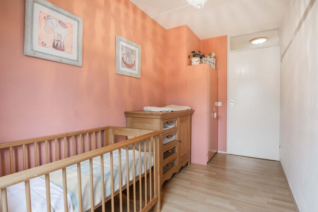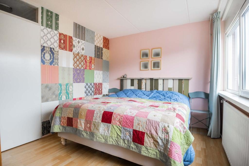 Op de overloop bevinden zich twee slaapkamers aan de voorzijde van de woning. De grootste slaapkamer heeft toegang tot een balkon. De badkamer is volledig betegeld en uitgerust met een douche, wastafel en toilet. Aan de achterzijde van de woning ligt de ouderslaapkamer, met een oppervlakte van ongeveer 17 m².