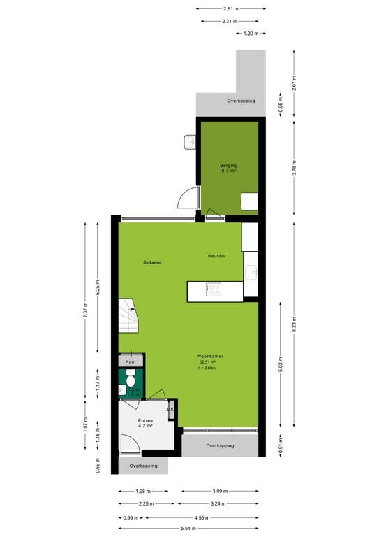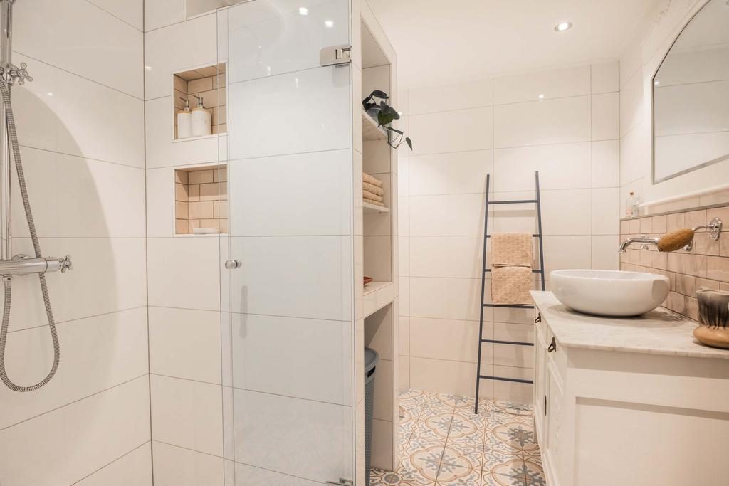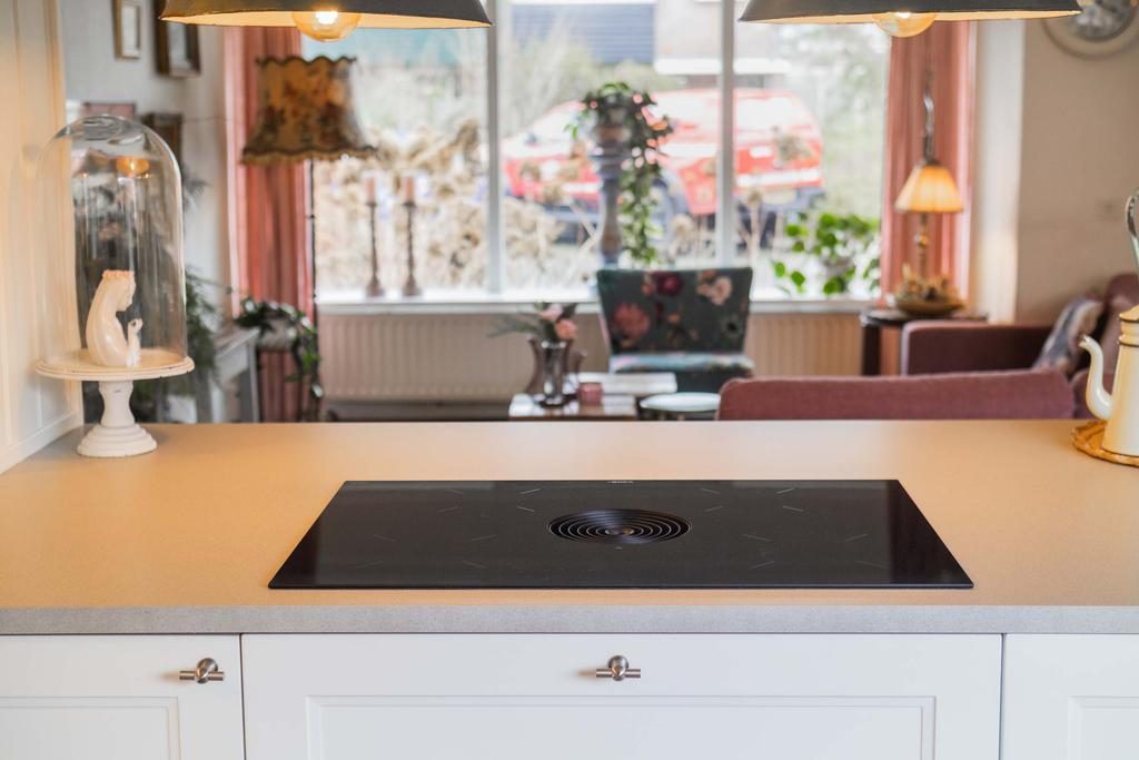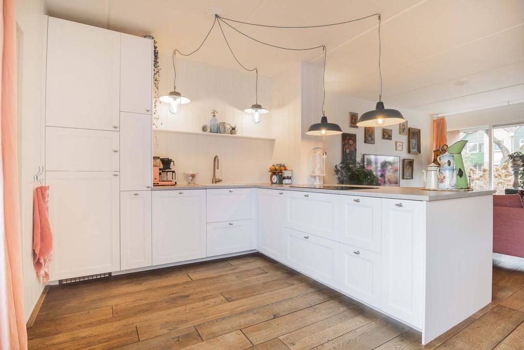 Binnenkomst via de entree, waar zich een toilet met fonteintje bevindt. De verzorgde woonkamer ontvangt veel natuurlijk licht dankzij de vele ramen. In de woonkamer bevindt zich ook de keuken, die modern is ingericht met een kookeiland voorzien van een inductiekookplaat en een geïntegreerd afzuigsysteem. Daarnaast is de keuken uitgerust met diverse inbouwapparatuur, zoals een koelkast en een vaatwasser. Vanuit de keuken is er tevens toegang tot de berging.