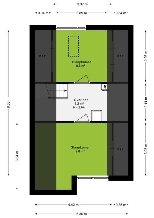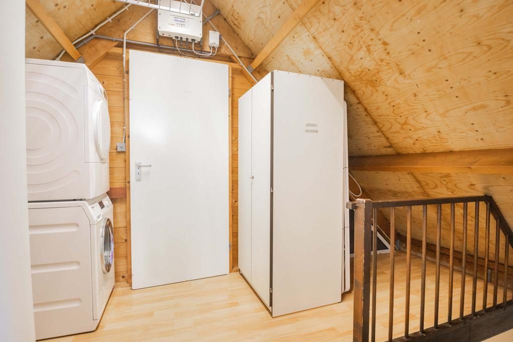 Op de overloop bevindt zich de cv-installatie met de zonneboiler en er zijn nog twee ruime slaapkamers die extra bergruimte bieden achter de schuine wanden.