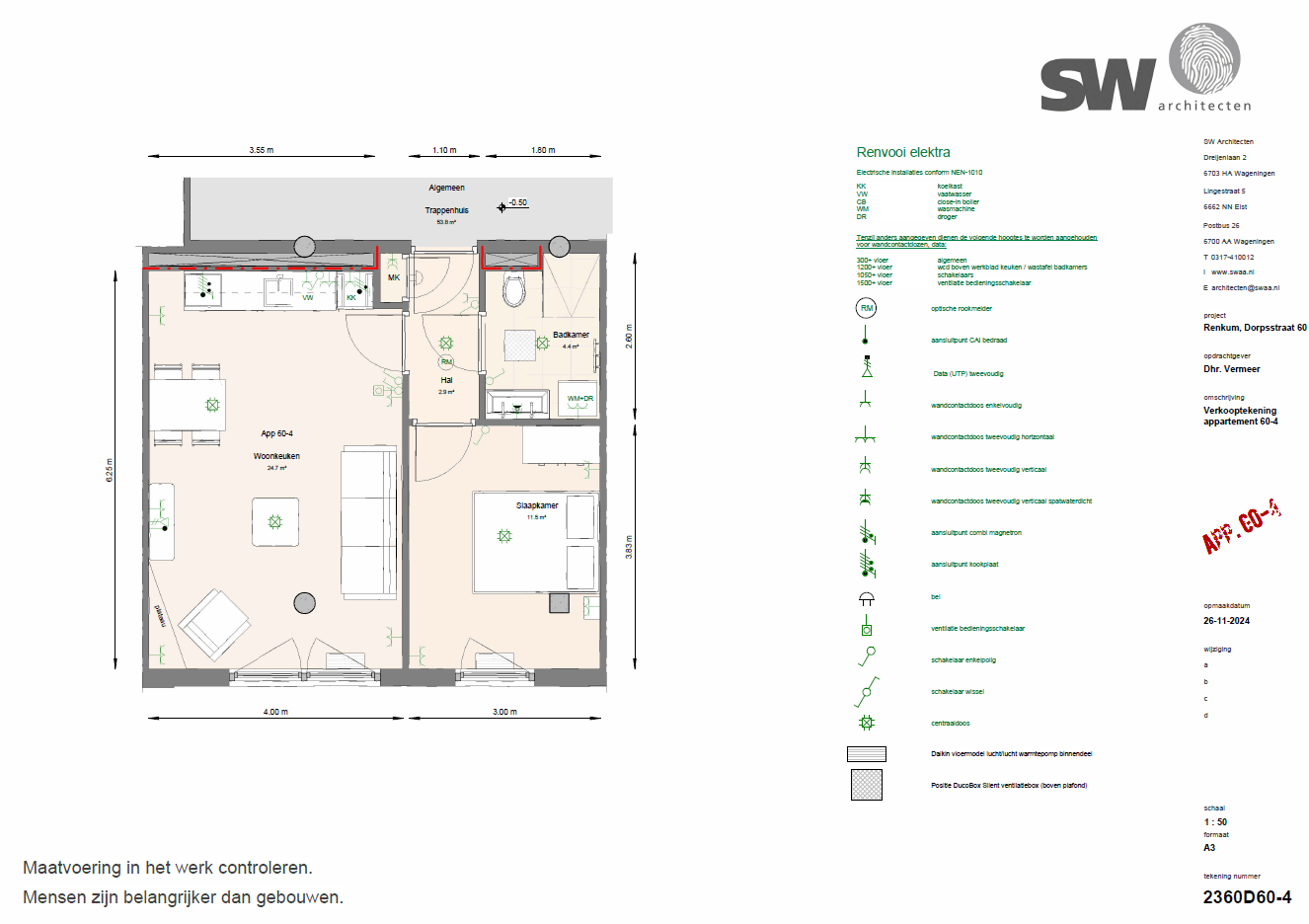 De informatie is nauwkeurig en met zorg samengesteld aan de hand van gegevens en tekeningen, welke onder andere zijn verstrek door de architect en de adviseurs van dit plan alsmede gemeentelijke instanties. Ondanks het bovenstaande moeten we een voorbehoud maken ten aanzien van wijzigingen voortvloeiende uit de eisen van de overheid en/of nutsbedrijven. De ontwikkelaar is gerechtigd tijdens de ontwikkeling en (af)bouw die wijzigingen in het plan aan te brengen, waarvan noodzakelijkheid bij de uitvoering blijkt mits deze wijzigingen geen afbreuk doen aan de kwaliteit van de woning. Deze wijzigingen geven geen recht tot het vragen van verrekening van mindere of meerdere kosten.
