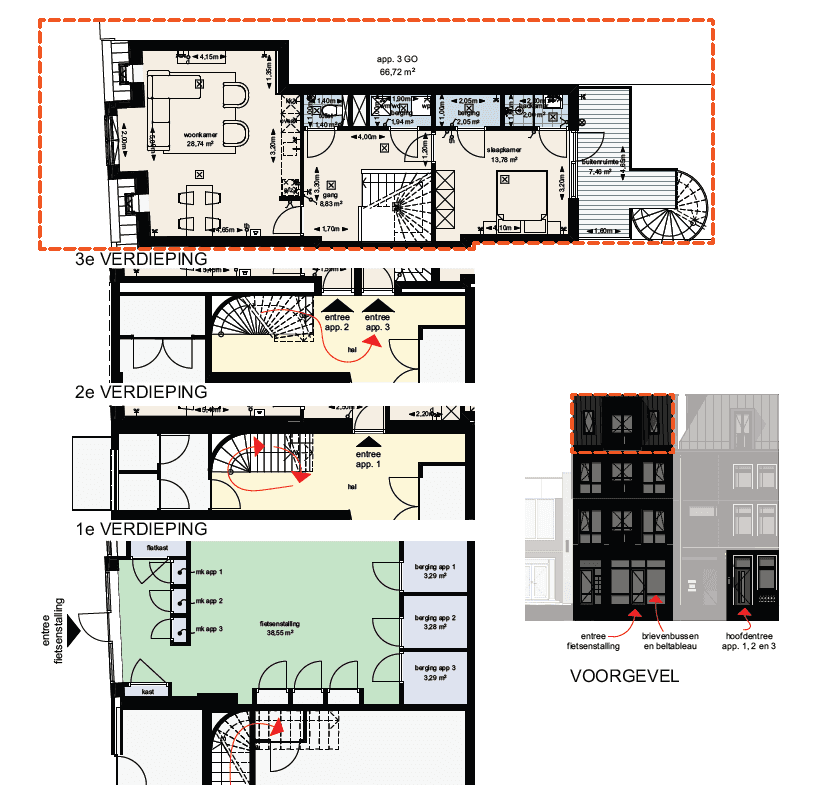 Via de hoofdentree met brievenbussen is er toegang tot het appartement.