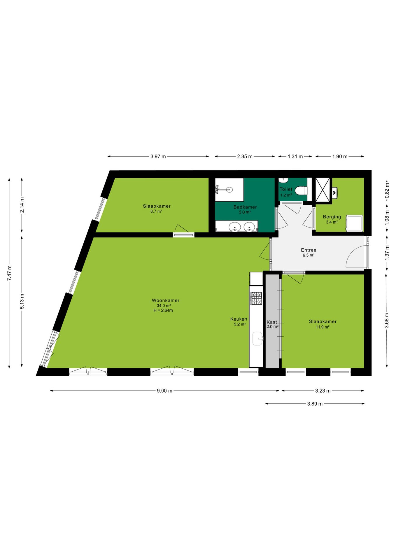- Twee slaapkamers, een moderne badkamer en separaat toilet