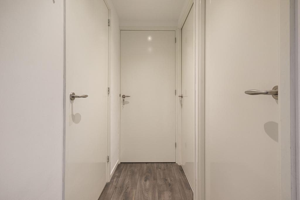 De centraal gelegen hal geeft je toegang tot de overige vertrekken: 2 slaapkamers, een kast voor opbergruimte en een multifunctionele ruimte die door de huidige eigenaren wordt gebruikt als inloopkast, wasruimte en cv-ruimte. De moderne badkamer is in lichte kleurstelling en voorzien van een inloopdouche en wastafelmeubel.