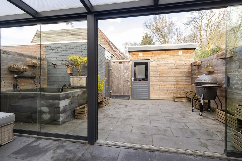 Het voordeel van een benedenwoning is het hebben van een achtertuin. Een heerlijke plek om te kunnen genieten van het buitenleven. De woning is aan de achterzijde voorzien van een gezellige serre waardoor je ook met slecht weer overdekt van je tuin kan genieten.
