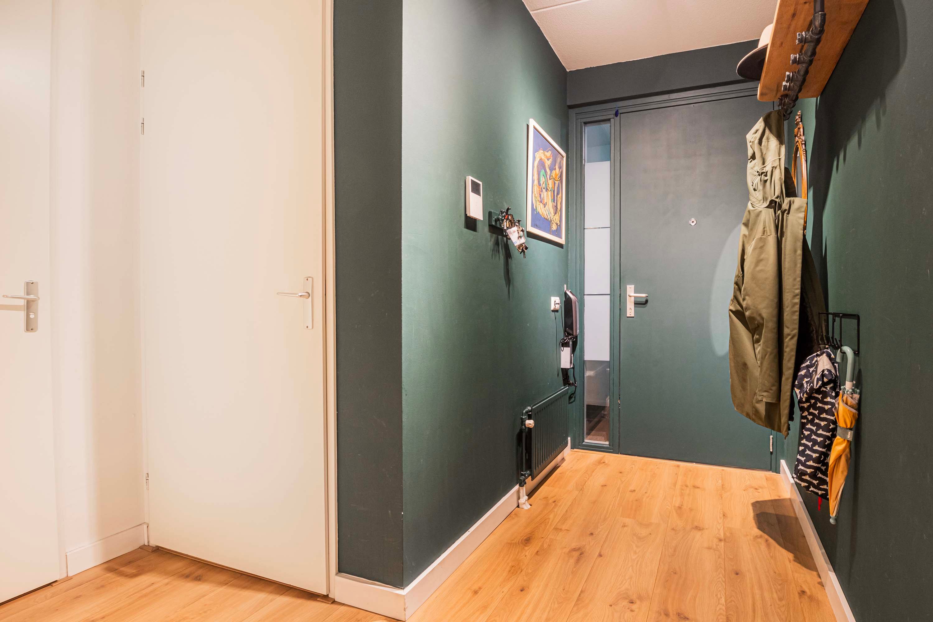 Middels een centrale entree, met de brievenbussen, bereik je via de lift of het trappenhuis het appartement. Via de entree met hal is er toegang naar de woonkamer, slaapkamer, badkamer, separaat toilet en de berg-/ wasruimte.