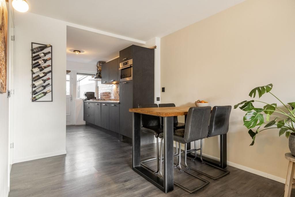 Centraal tussen de woonkamer en keuken bevindt zich het eetgedeelte. Hier is meer dan voldoende ruimte voor een eettafel met stoelen. Een fijne plek om met familie en/of vrienden te genieten van een hapje, drankje en spelletje!