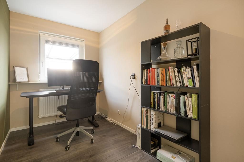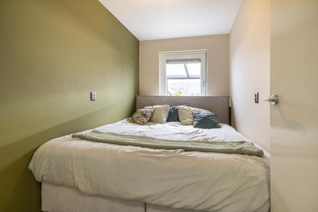 De centraal gelegen hal geeft je toegang tot de overige vertrekken: 2 slaapkamers, een kast voor opbergruimte en een multifunctionele ruimte die door de huidige eigenaren wordt gebruikt als inloopkast, wasruimte en cv-ruimte. De moderne badkamer is in lichte kleurstelling en voorzien van een inloopdouche en wastafelmeubel.
